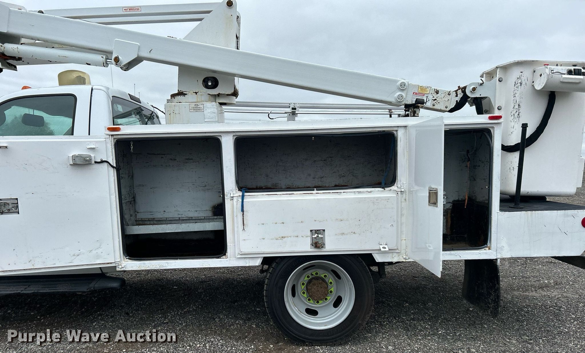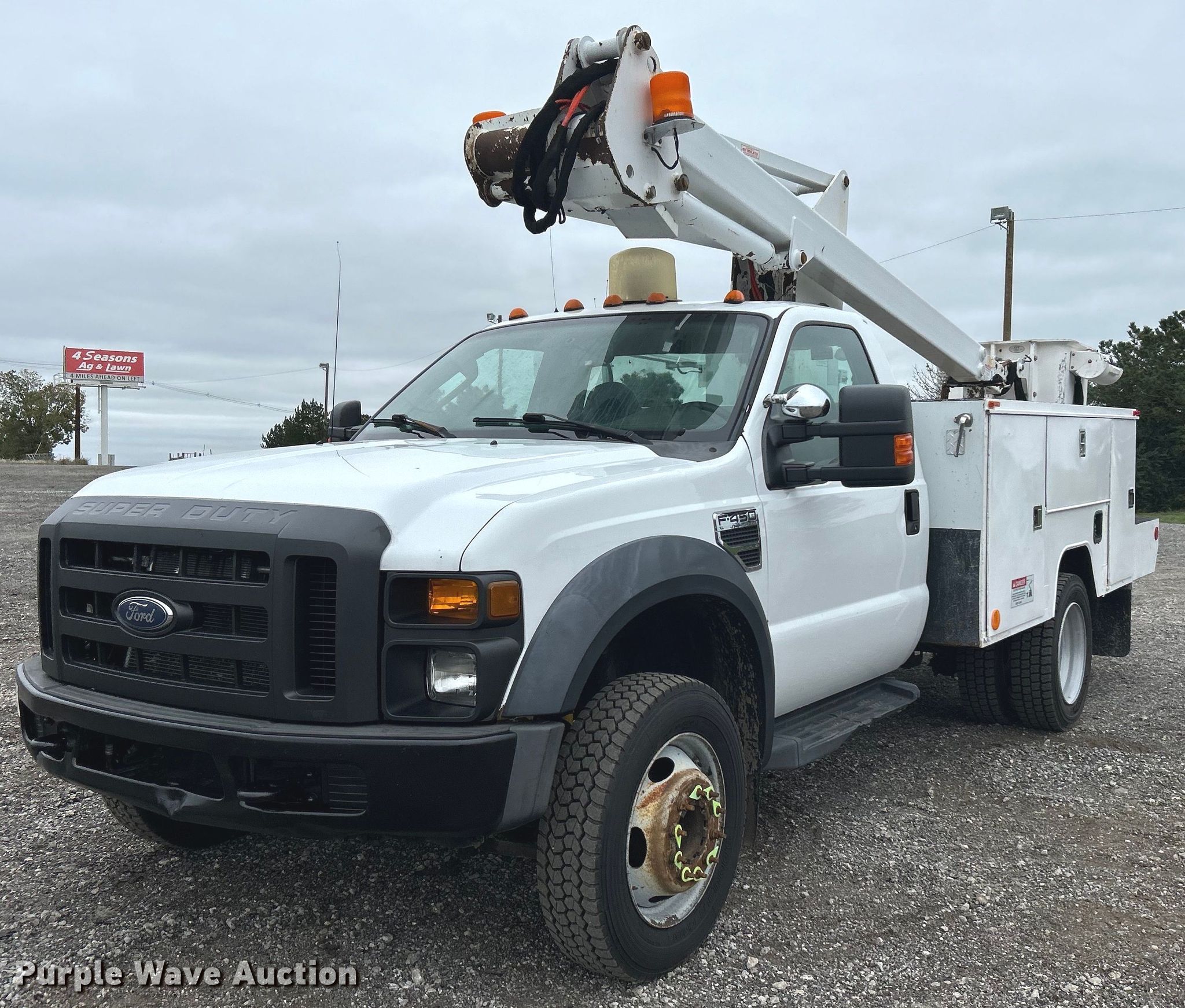 This 2008 Ford F450 Super Duty bucket truck will sell to the highest bidder regardless of price.