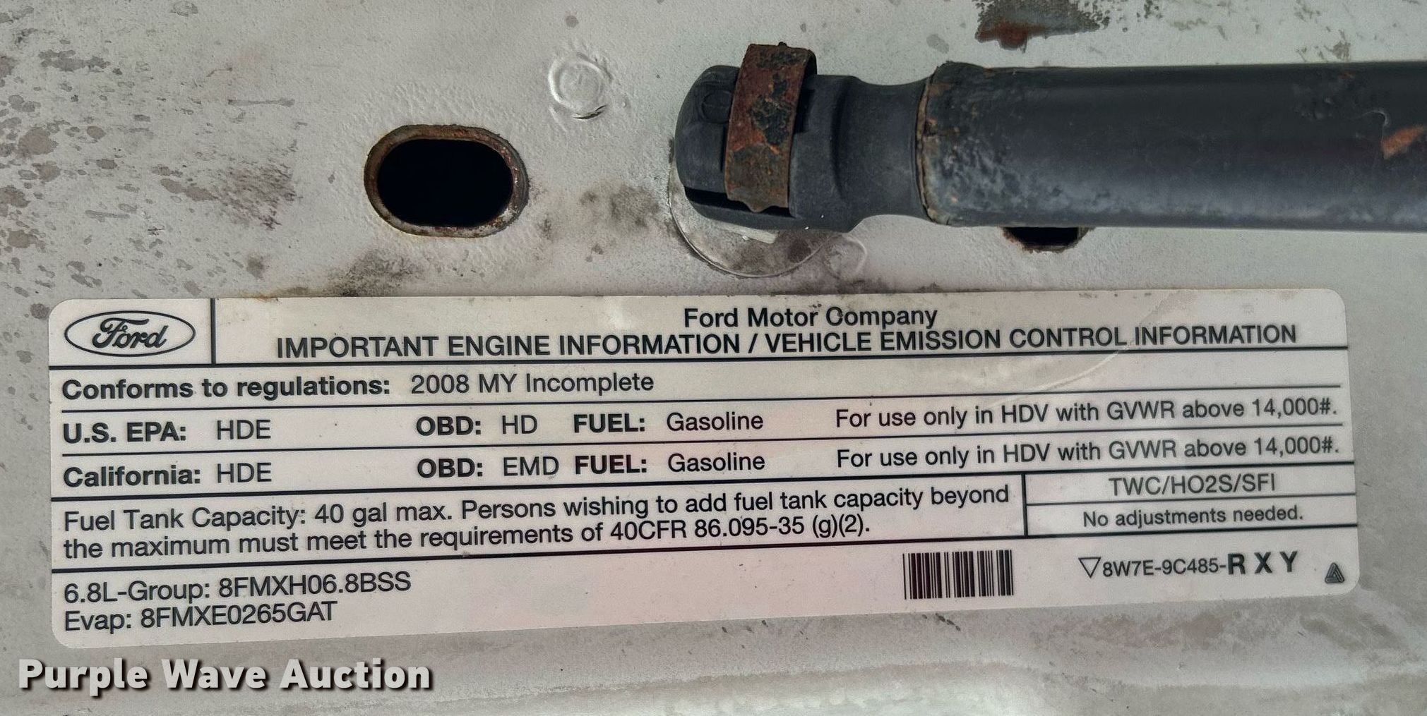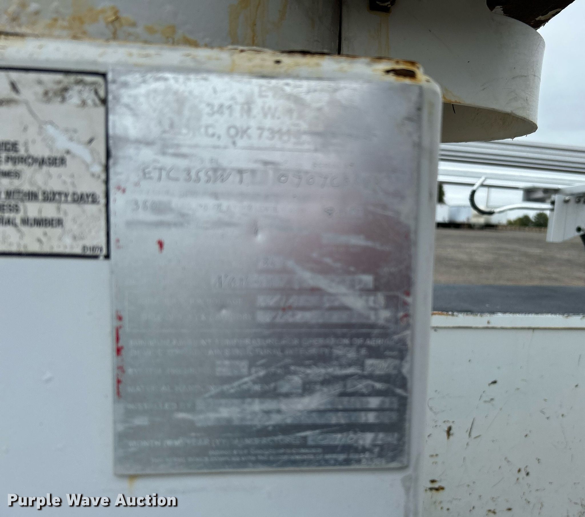 2008 Ford F450 Super Duty bucket truck. Miles: 314,928 on odometer, VIN: 1FDXF46Y88EA36174. Engine Displacement: 6.8L, Cylinders: 10, Fuel type: Gas. Transmission Automatic. Chassis Axles: Single, Suspension: Spring, Brakes: Hydraulic, PTO, GVWR: 16,000 lbs, Wheelbase: 141". Interior AC, Heat, Heated mirrors, Power windows, Power locks, Cruise control, Auxiliary controls, Brake controller. Features Bed 9' L x 93" W, Boom ETI TC355NT, Serial: 0707C55430, Maximum lift capacity: 350 lbs, Maximum lift height: 35', Boom type: Telescopic, Man basket, Boom controls Platform/ basket.. Tires Size: 225/70R19.5. Oklahoma title. Title distribution may be delayed up to 14 days from verification of funds. 15107 North 137th East Avenue. Collinsville, OK 74021