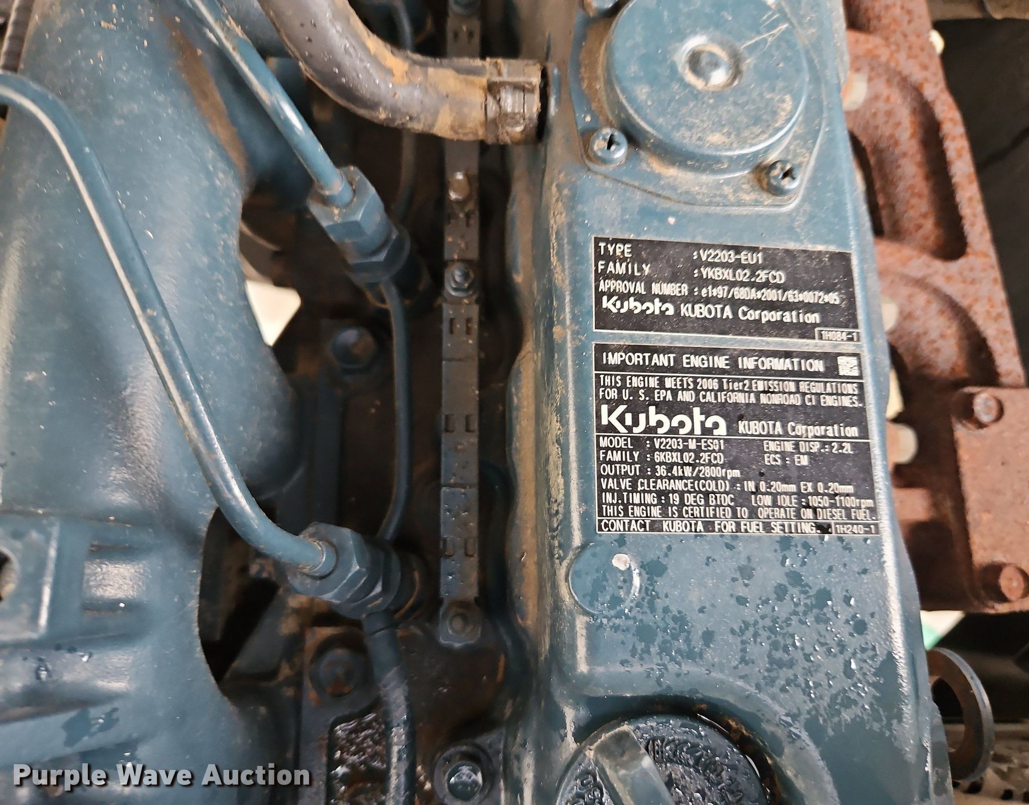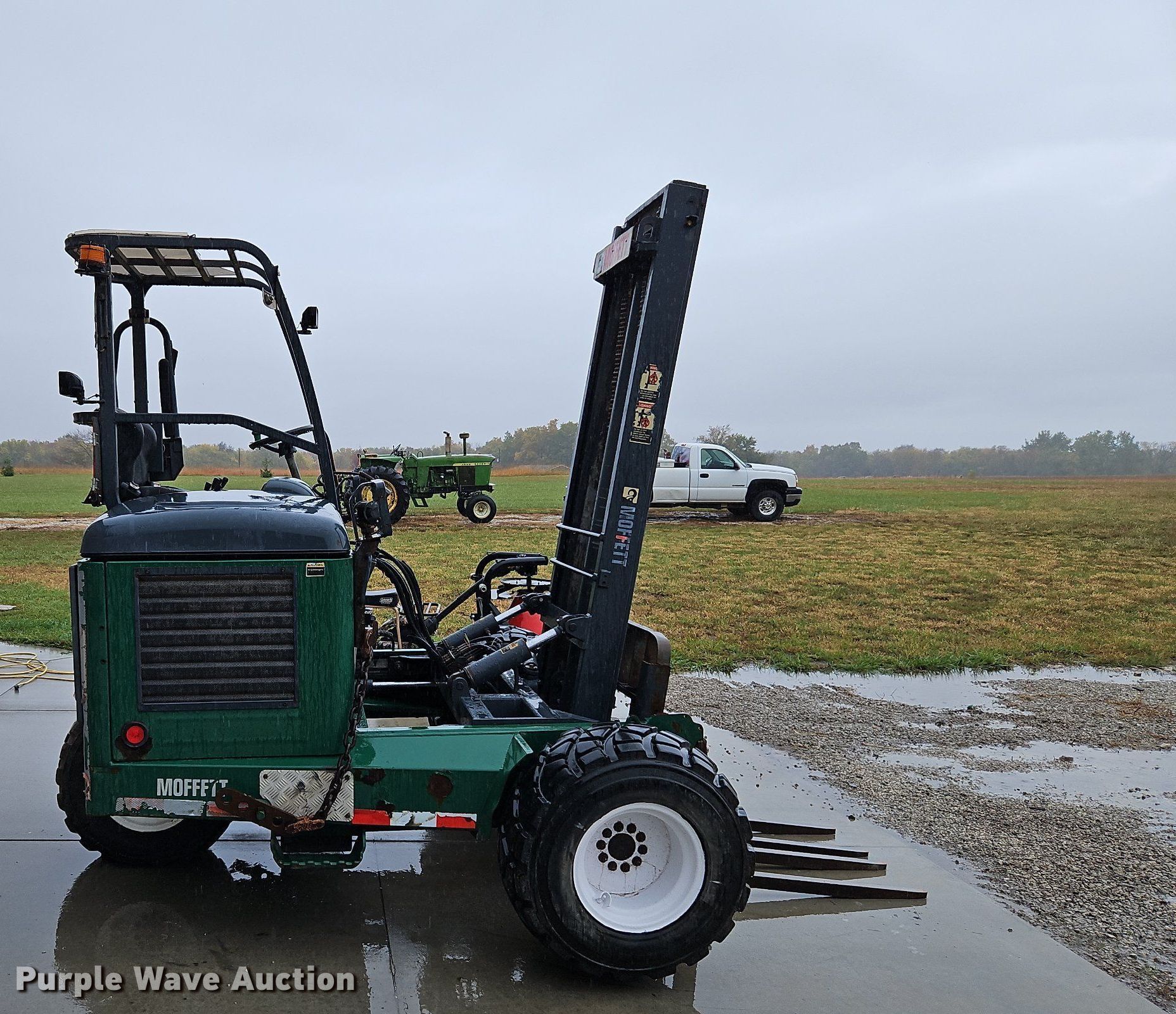 2006 Moffett M55 forklift. Hours: 3,973 on meter, Serial: F290368. Engine Kubota V2203, Serial: 06J5021, Displacement: 2.2L, Cylinders: 4, Fuel type: Diesel. Transmission Hydrostatic, Three wheel drive. Operators station OROPS. Features Maximum lift capacity: 5,500 lbs, Maximum lift height: 144", Mast stages: 2, Side shift, Mast tilt, Brick forks, Fork length: 48". Tires Front: 61x15.50-15, Rear: 390/60D15. 1879 Sand Creek Road. Ottawa, KS 66067