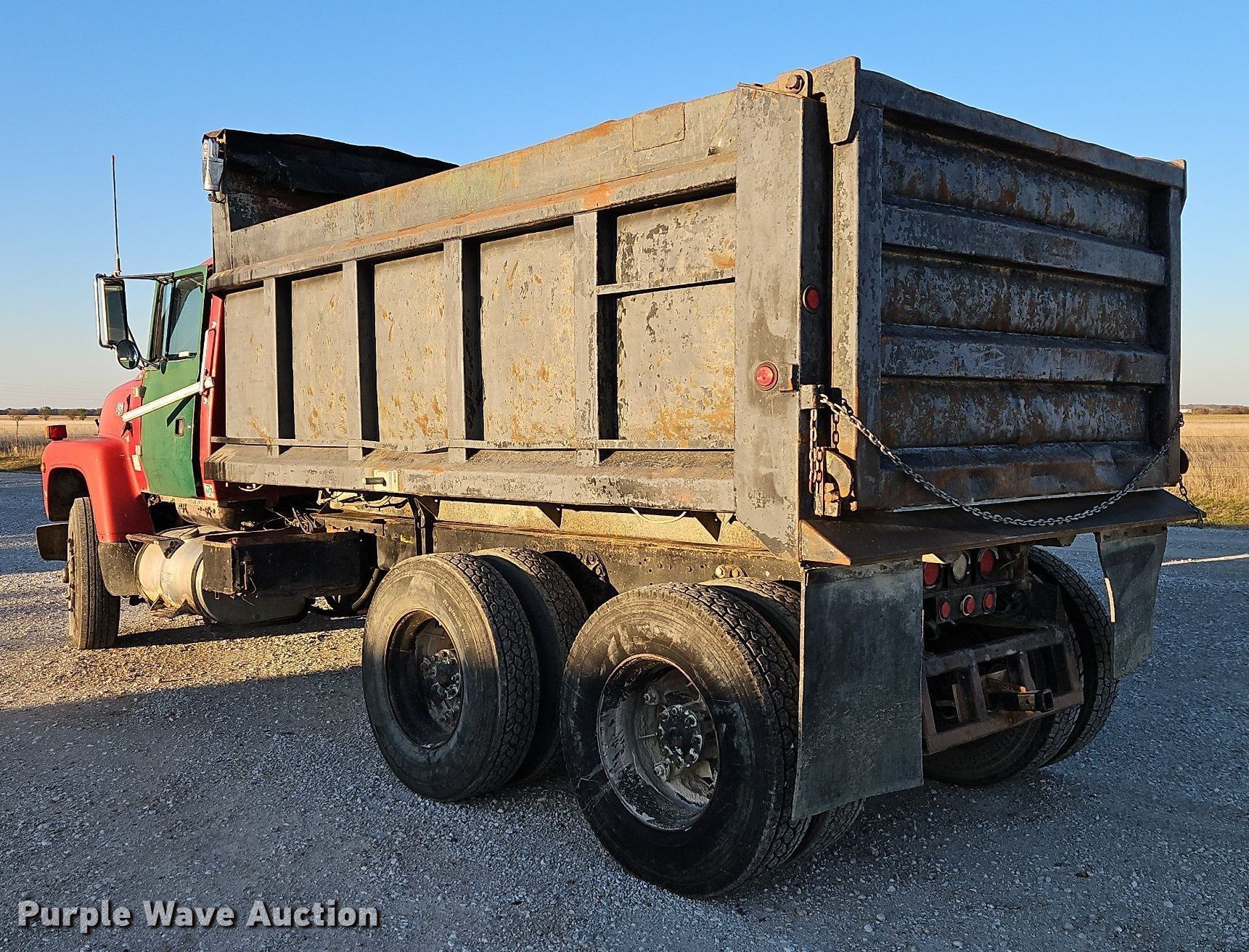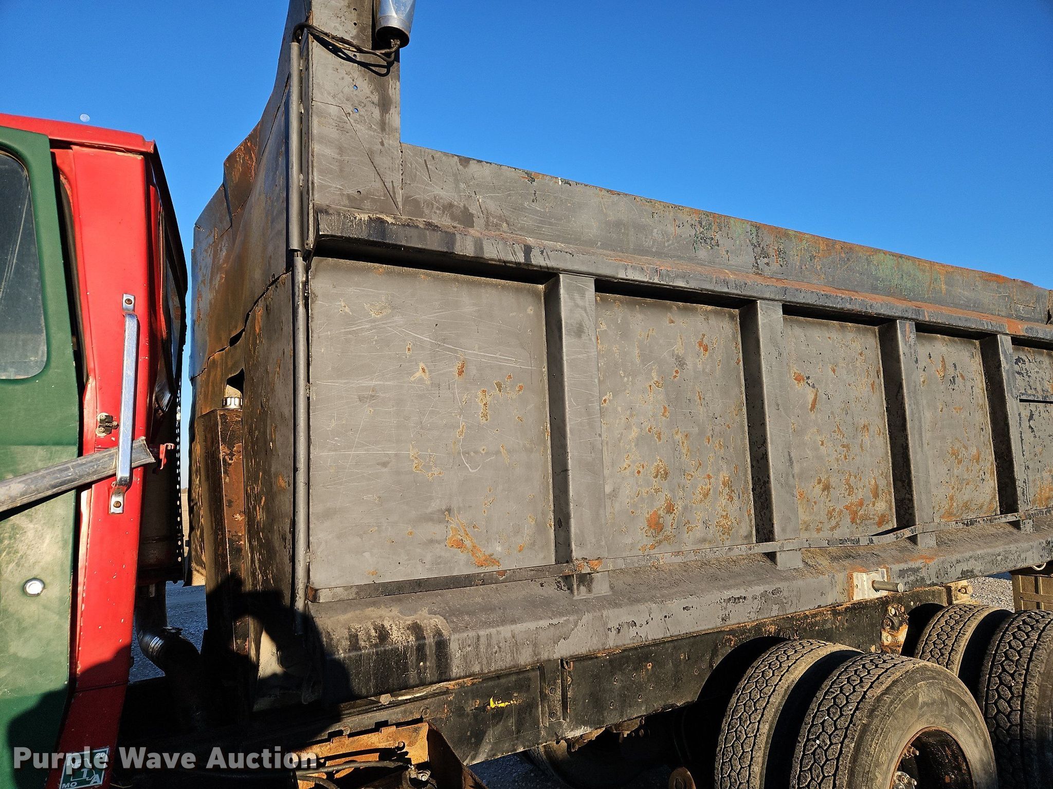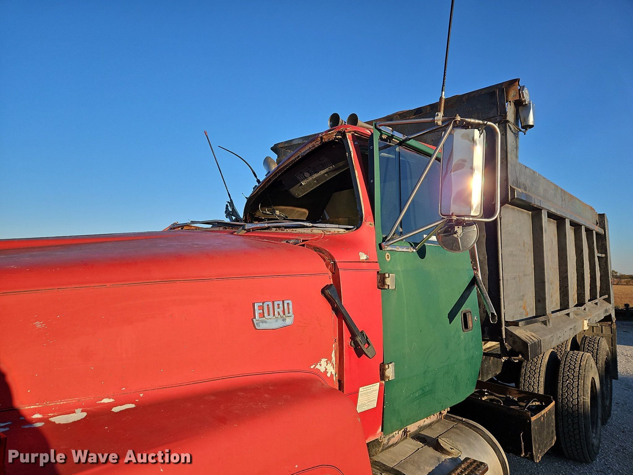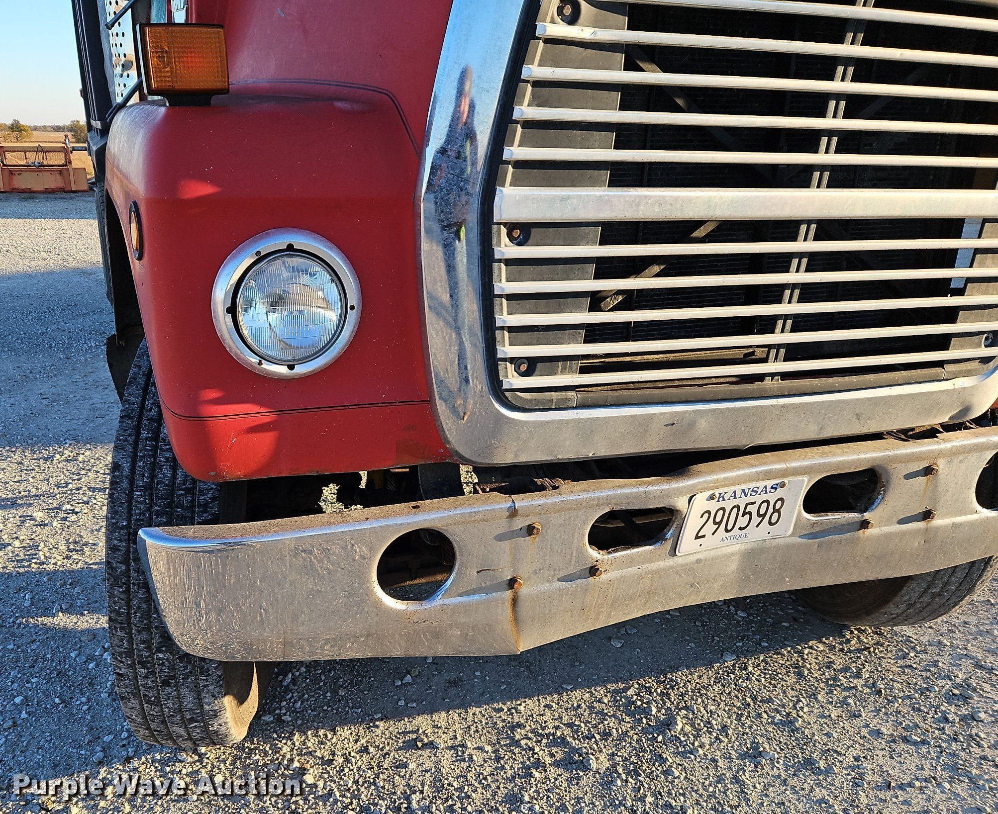 1978 Ford dump truck. Miles: 866,968 on odometer, VIN: U91VVBB1270. Engine Cummins , Cylinders: 6, Fuel type: Diesel. Transmission Roadranger RTO-9513-12513, Manual, Speed: 13. Chassis Double frame, Axles: Tandem, Suspension: Spring over walking beam, Brakes: Air, PTO, GVWR: 52,000 lbs FAWR: 14,000 lbs, IAWR: 19,000 lbs, RAWR: 19,000 lbs. Interior Heat. Features Dump bed 14' L x 8' W, Side height: 48", Bed type: Steel, Roll tarp, Ram: Single , End gate: Air operated. Tires Size: 11/R24.5. Notes Windshield chipped or cracked, Cad needs replaced, storm damage. Kansas antique title. Title distribution may be delayed up to 14 days from verification of funds. 1343 Rock Road. Yates Center, KS 66783
