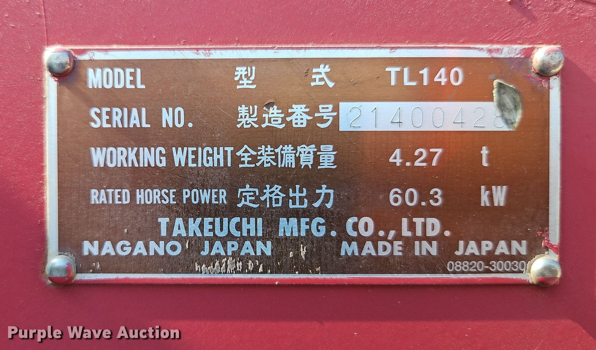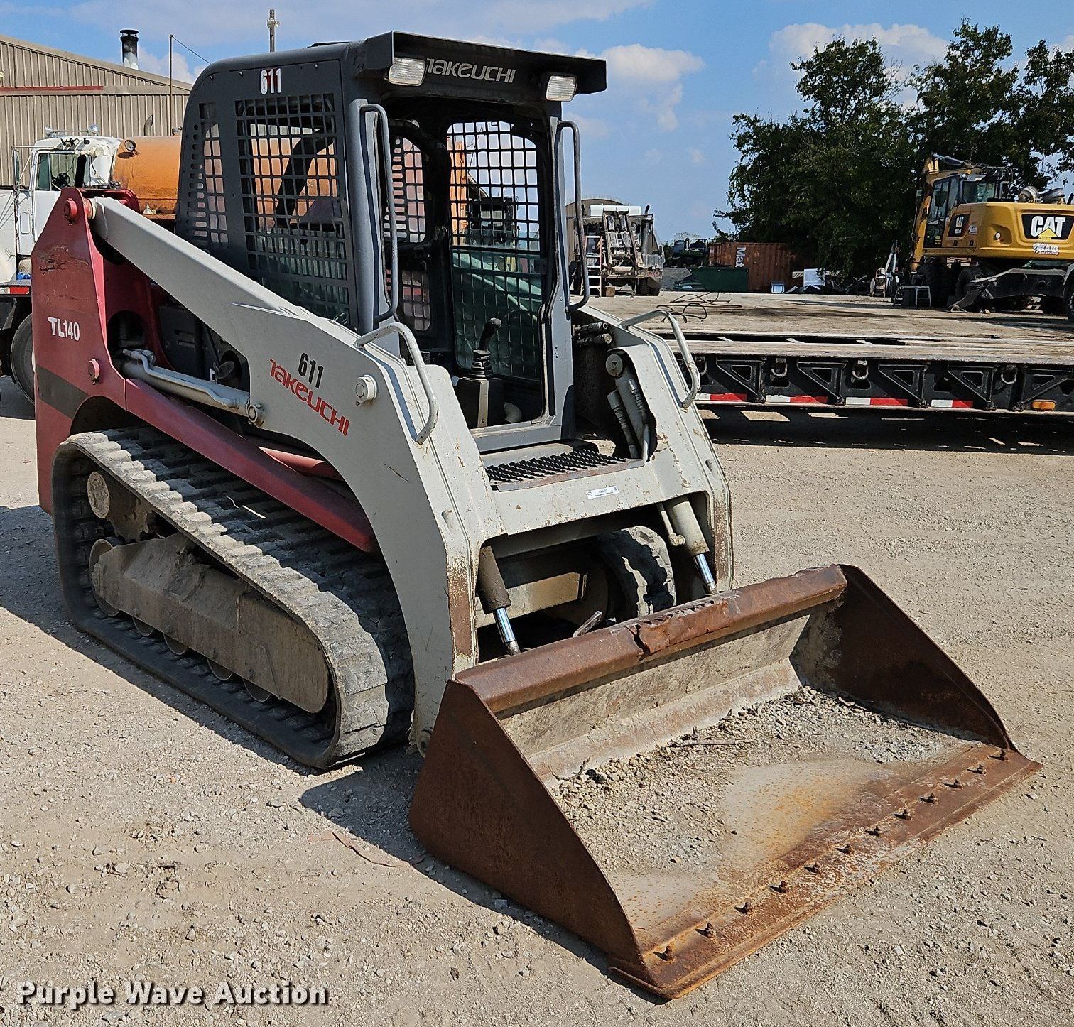 Purple Wave is selling a used Tracked Skid Steer Loader in Kansas. This item is a 2004 Takeuchi TL140 tracked skid steer loader with the following: Hours: 6,999 on meter, Serial: 21400428
