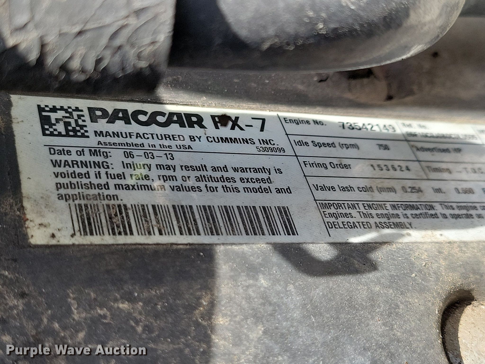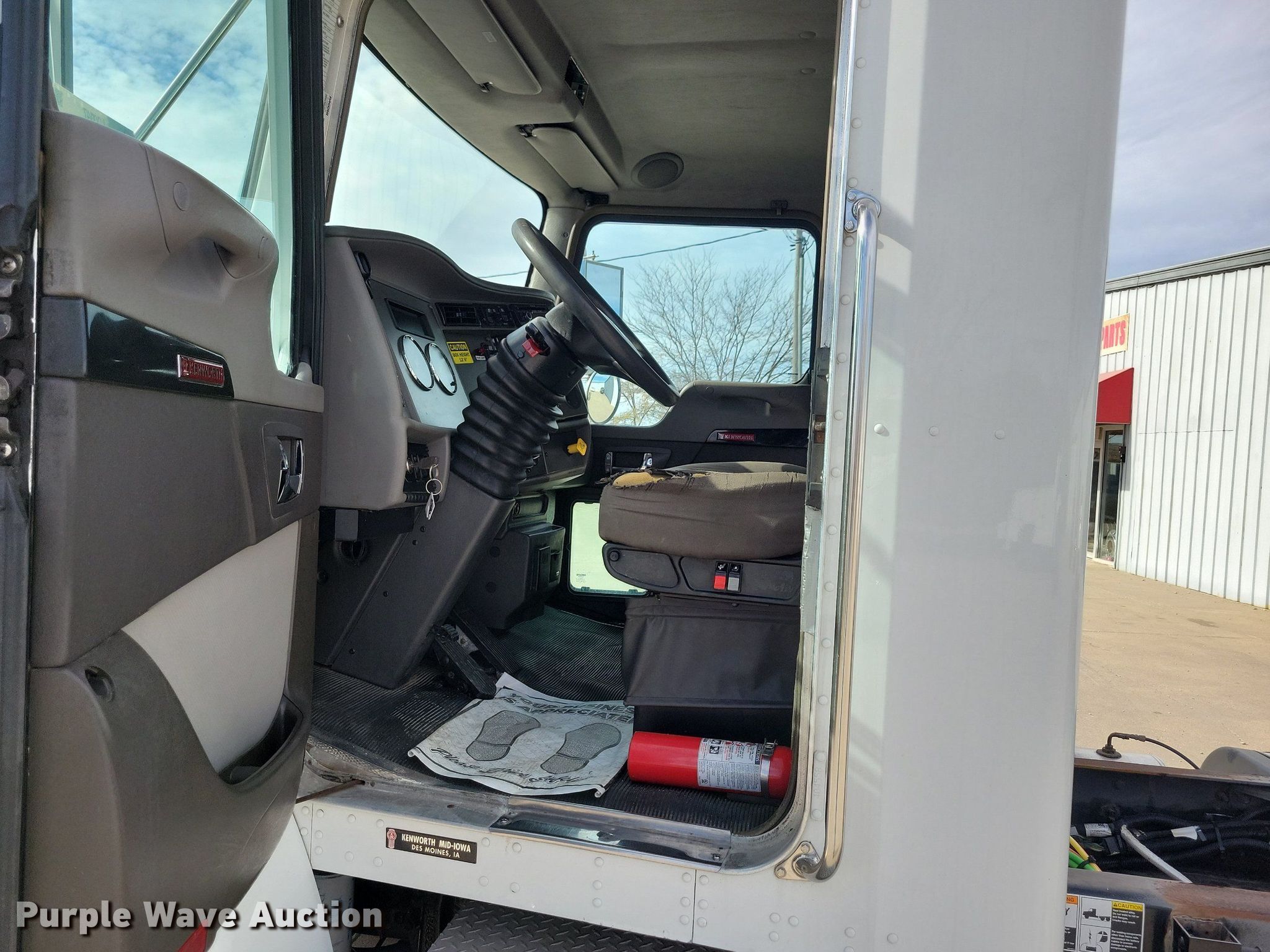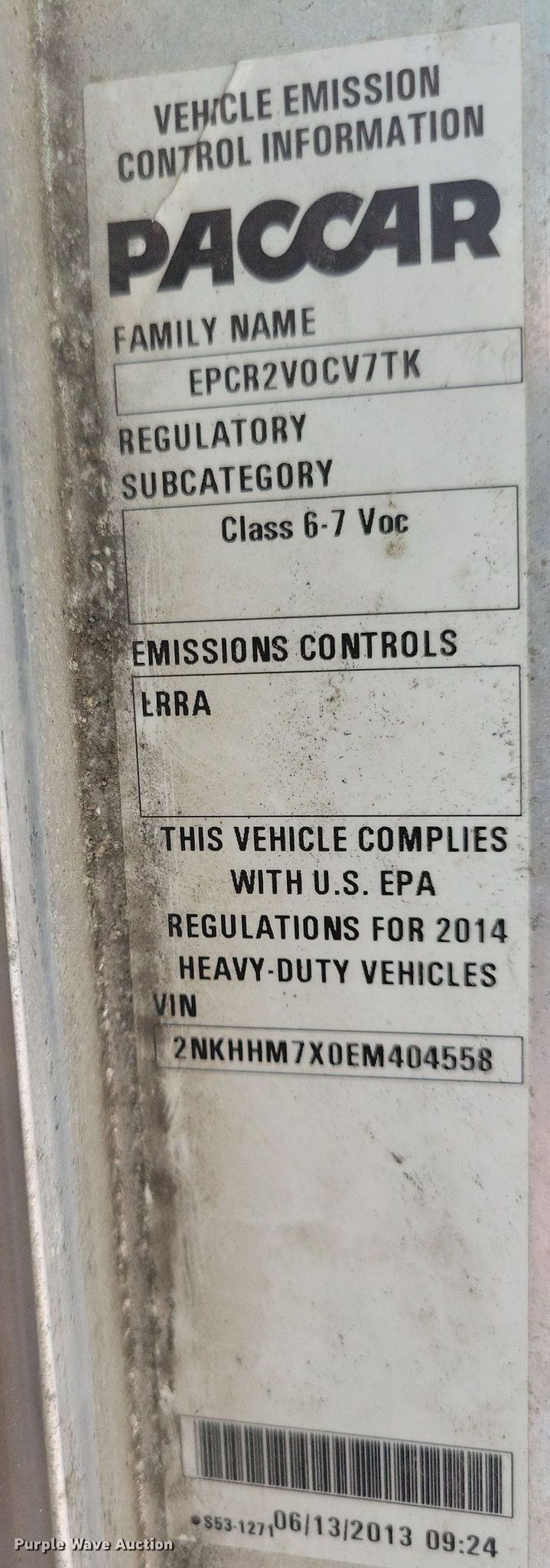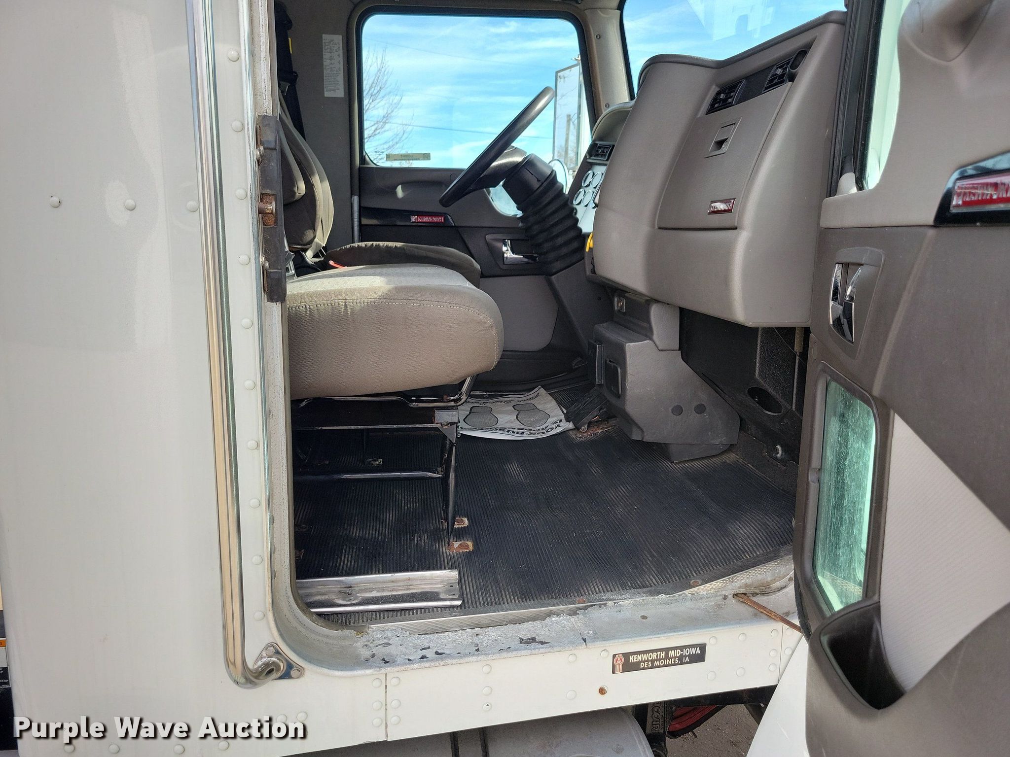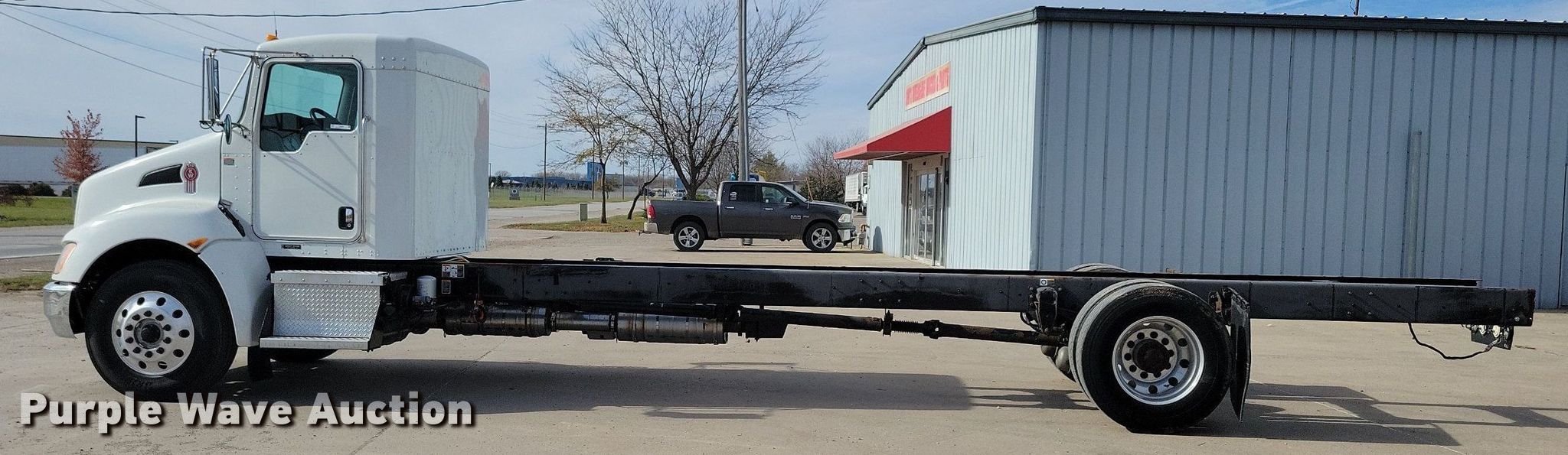 2014 Kenworth T370 truck cab and chassis. Miles: 380,228 on odometer, Hours: 11,855 on meter, VIN: 2NKHHM7X0EM404558. Engine Paccar PX-7, Serial: 73542149, Displacement: 6.7L, Cylinders: 6, Fuel type: Diesel, HP: 220, Engine brake. Transmission Automatic. Chassis Axles: Single, Gear ratio: 4.88, Suspension: Spring, Brakes: Air, Truck chassis: 26' L, GVWR: 33,000 lbs FAWR: 12,000 lbs, RAWR: 21,000 lbs. Interior AC, Heat, Power windows, Power locks, Cruise control. Features Fuel tank: Single. Tires Front: 295/75R22.5, Rear: 275/80R22.5. Notes Dash warning indicator: Check engine. Iowa title. Seller is an Iowa licensed motor vehicle dealer. The buyer may be required to pay sales tax and/or registration fees to the dealer prior to taking possession. Buyers may be required to provide identification to the licensed dealer to comply with Iowa state laws. Title will be assigned and distributed by the dealer. Please contact the seller for distribution questions. 4100 Vandalia Road. Des Moines, IA 50302