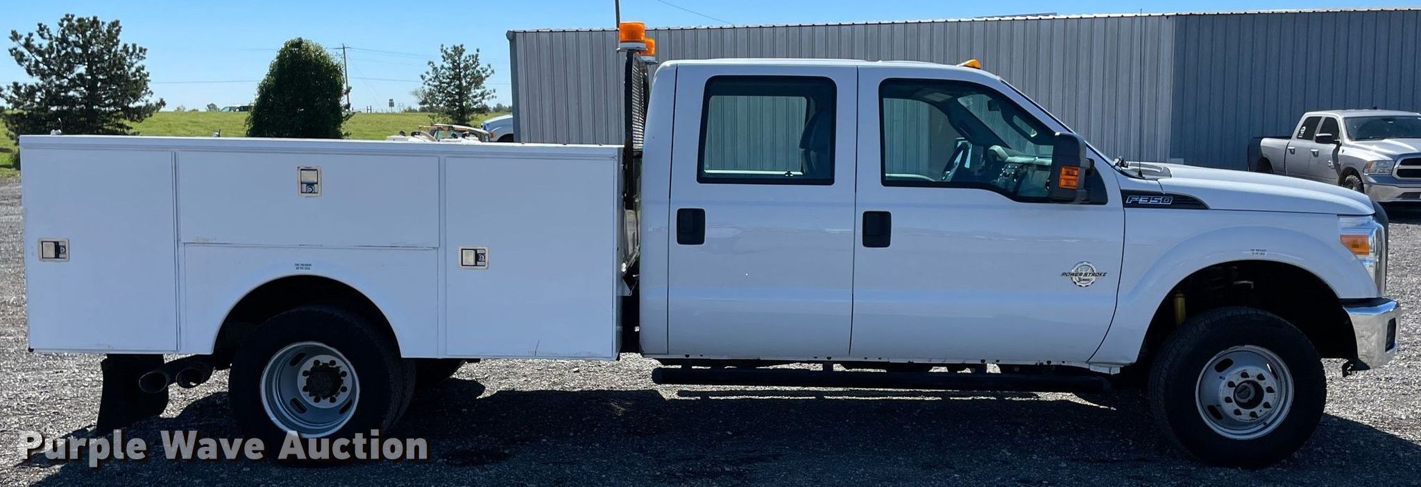 Purple Wave is selling a used 3/4 or 1 Ton Pickup or Van in Oklahoma. This item is a 2014 Ford F350 Crew Cab utility bed pickup truck with the following: Miles: 154,692 on odometer, VIN: 1FD8W3HT9EEB06454