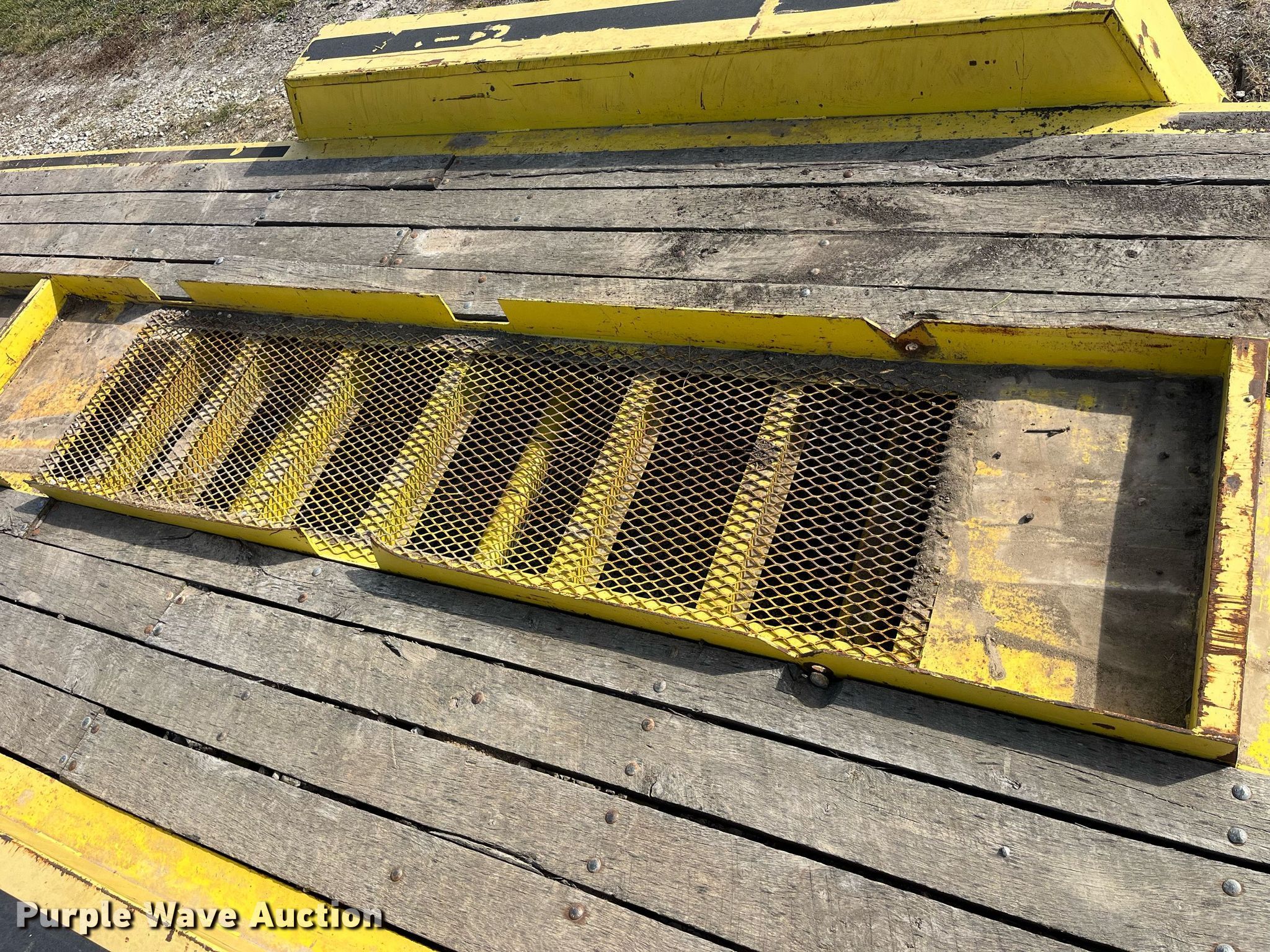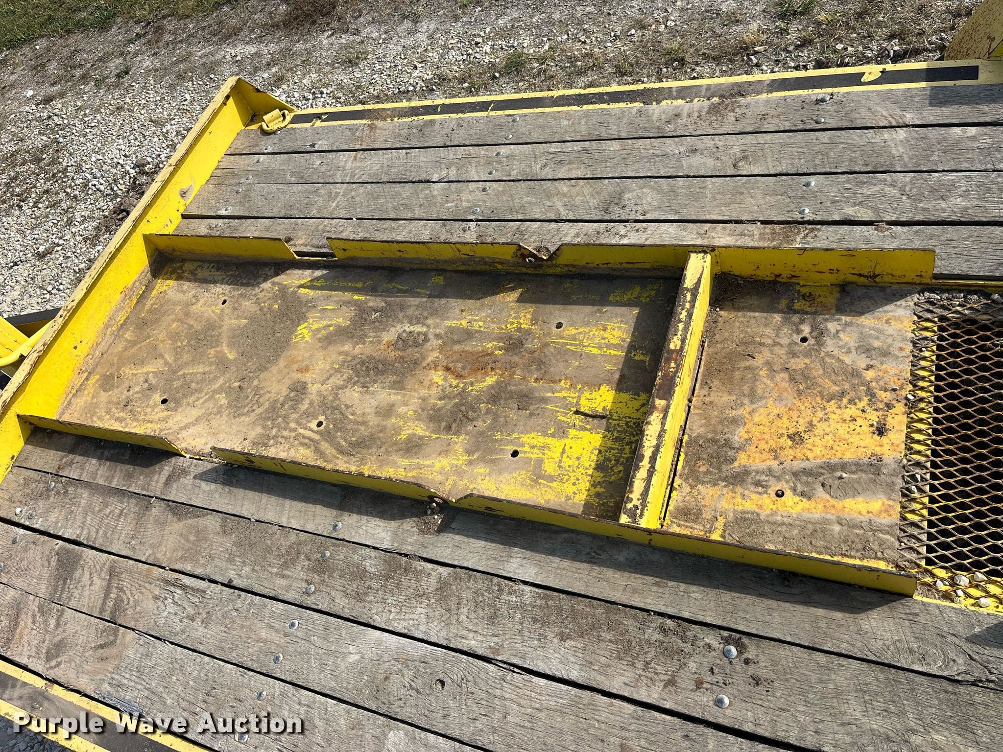 2000 Redi Haul equipment trailer. VIN: 47SS183T3Y1016258. Dimensions Overall: 27' 7" L x 102" W, Deck: 18' x 6' 9" W, Tail length: 31.5", Ramps: Manual Length: 5'. Features Deck type: Steel, Wood. Chassis Hitch: Pintle, Landing gear: Single, Suspension: Spring, Brakes: Electric, Axles: Triple. Tires Steel wheels, Size: 215/75R17.5. Missouri title. Title has a lien that will be released following the close of the auction. Title distribution may be delayed up to 30 days from verification of funds. JH Cook Construction - Open Inspection Nov. 24th and 28th. 453 Hwy H. Leonard, MO 63451