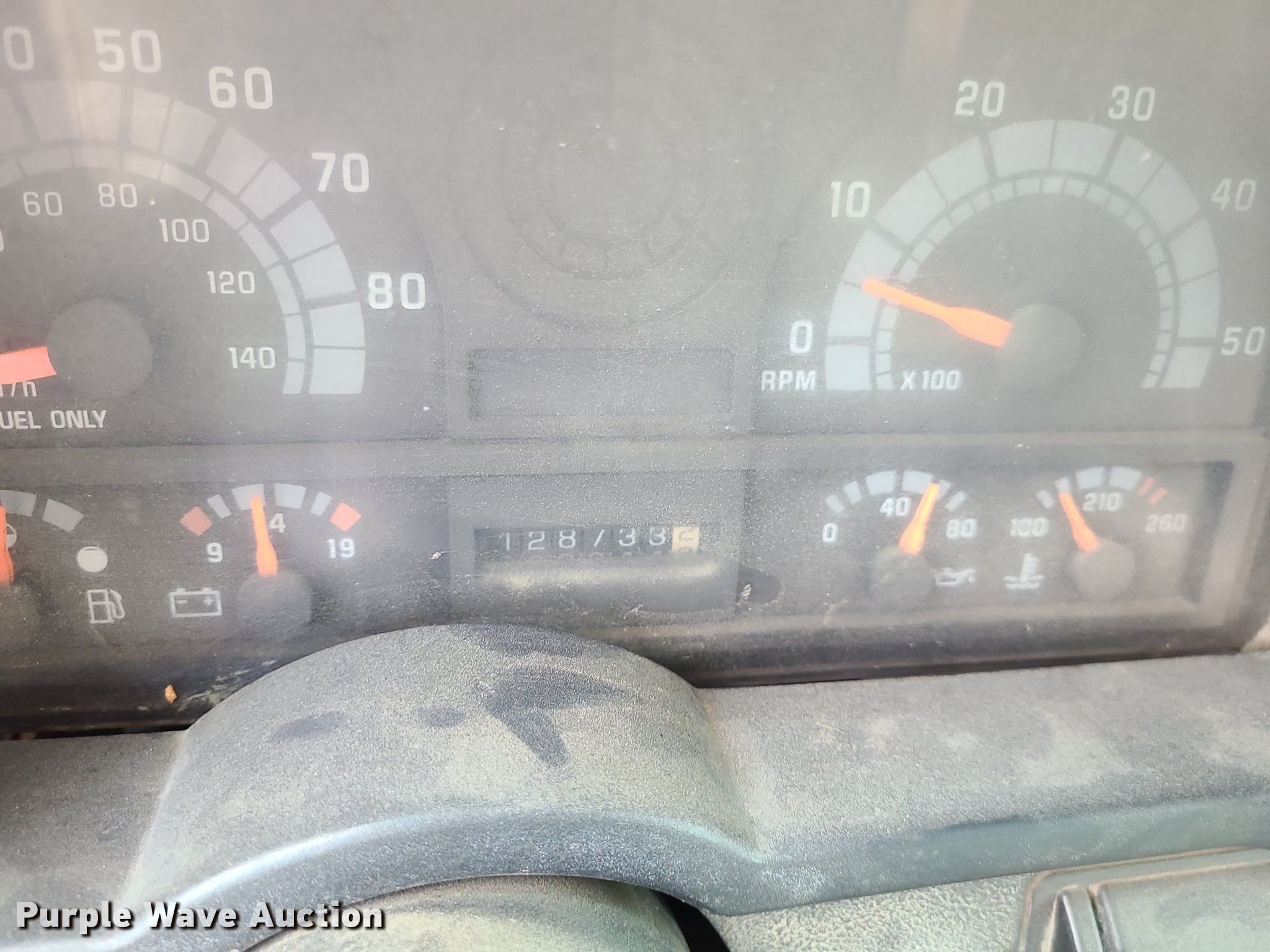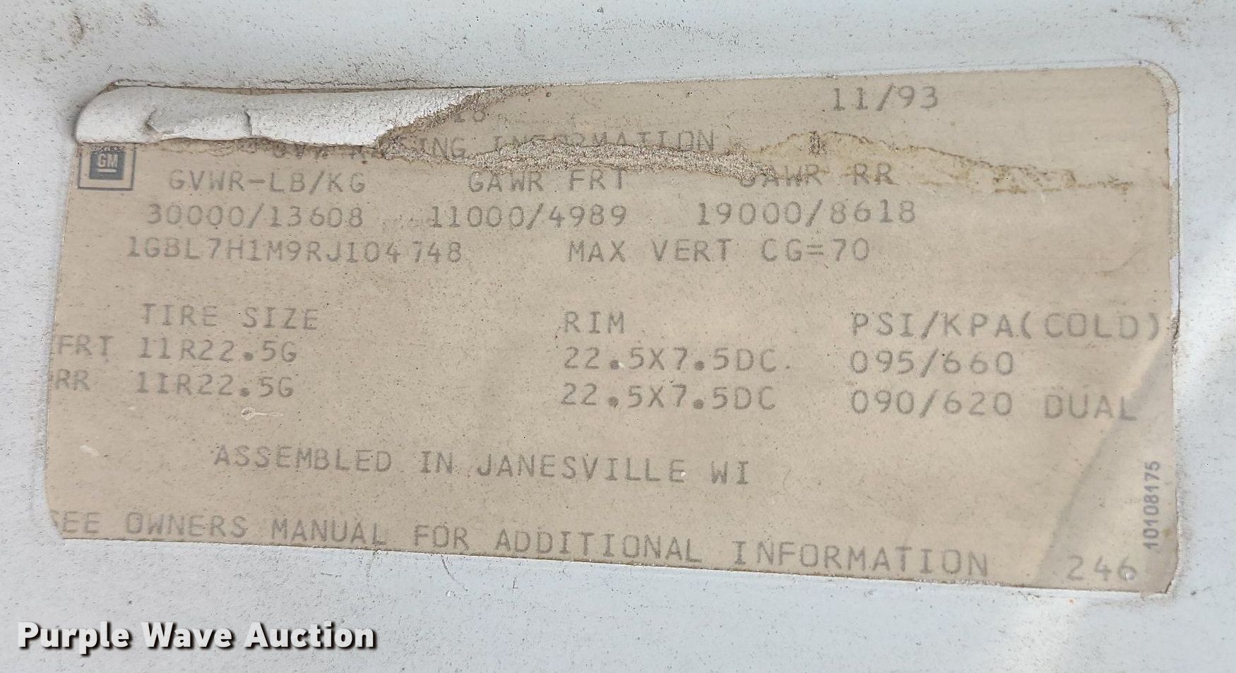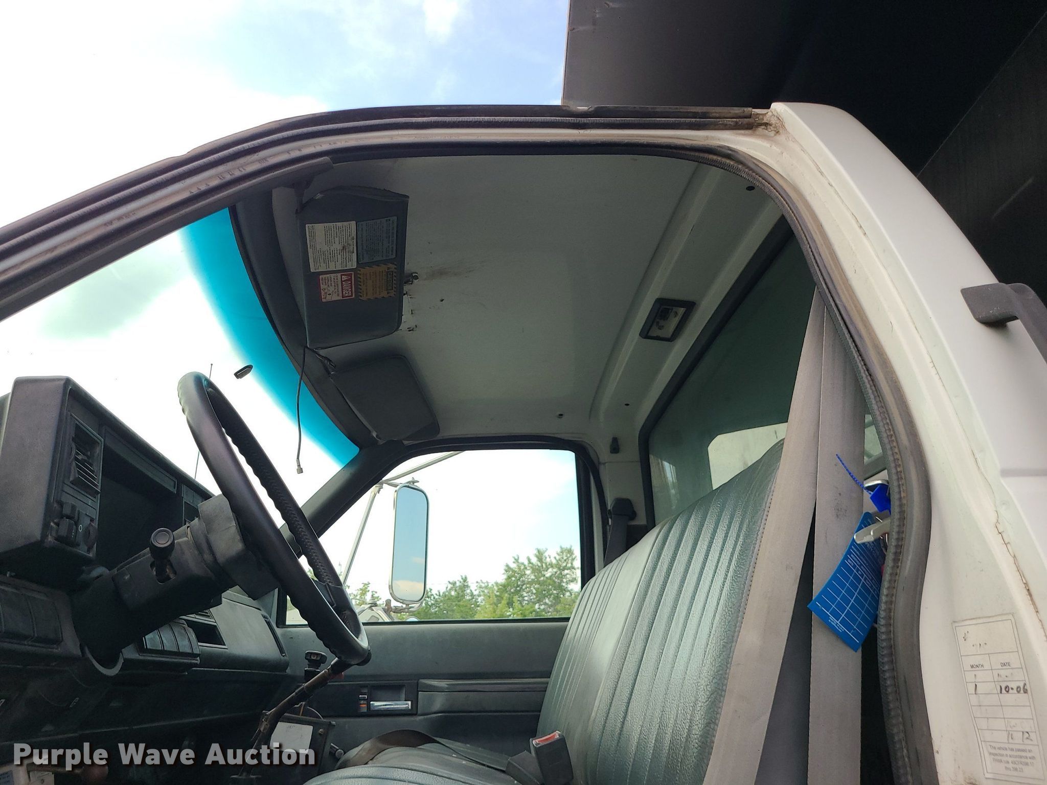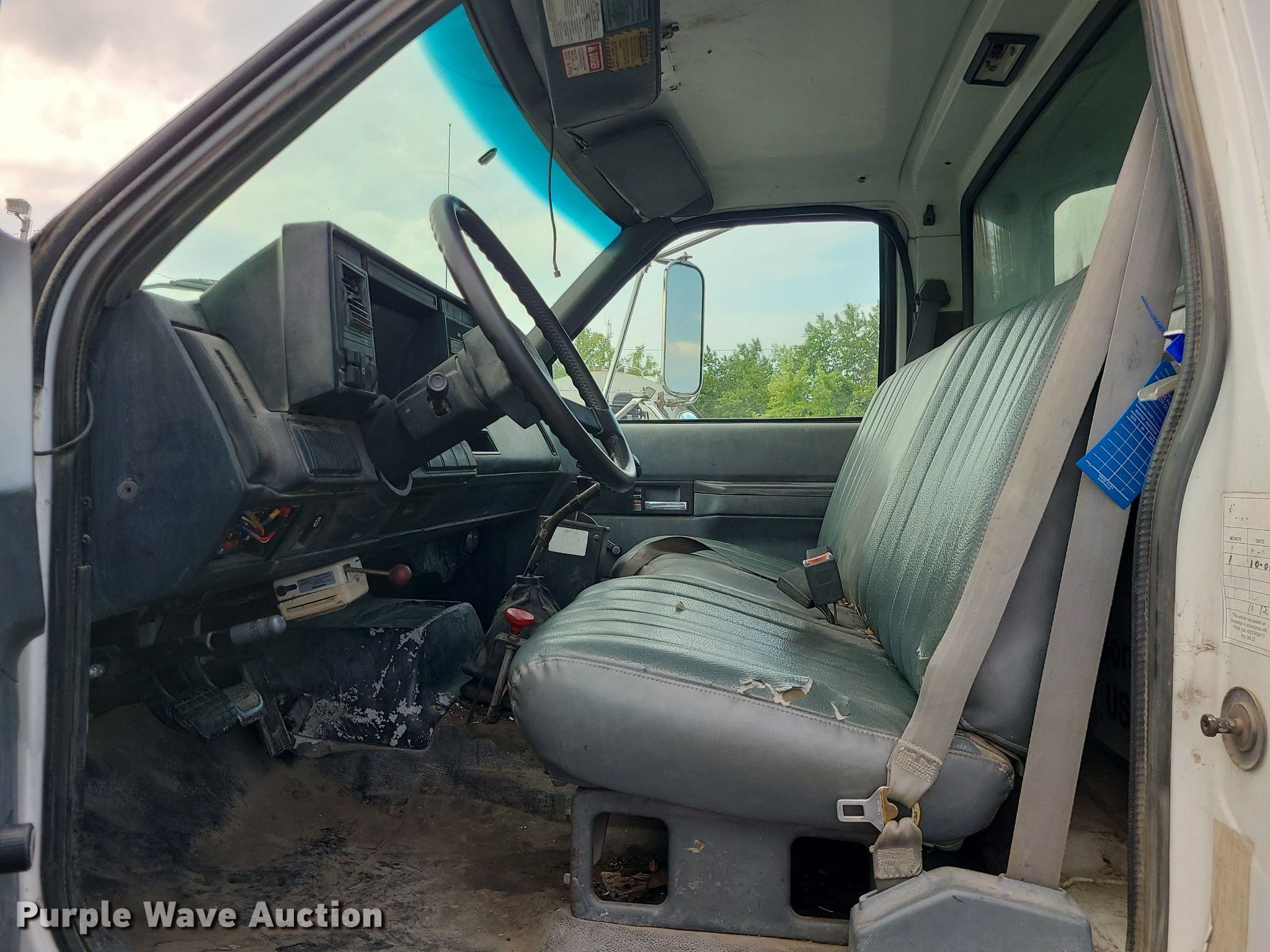 1994 Chevrolet 6500 Kodiak dump truck. Miles: 128,733 on odometer, VIN: 1GBL7H1M9RJ104748. Engine Displacement: 7.0L, Cylinders: 8, Fuel type: Gas. Transmission Manual, Speed: 5, plus 2. Chassis Axles: Single, Suspension: Spring, Brakes: Hydraulic, PTO, GVWR: 30,000 lbs FAWR: 11,000 lbs, RAWR: 19,000 lbs. Interior Heat. Features Dump bed 10' L x 96" W, Side height: 26", Side board height: 9", Bed type: Steel, Roll tarp, Ram: Single , End gate: Manual. Tires Size: 10.00R20. Missouri title. Title distribution may be delayed up to 14 days from verification of funds. Seal-O-Matic Paving. 2601 Northwest Tullison Road. Riverside, MO 64150