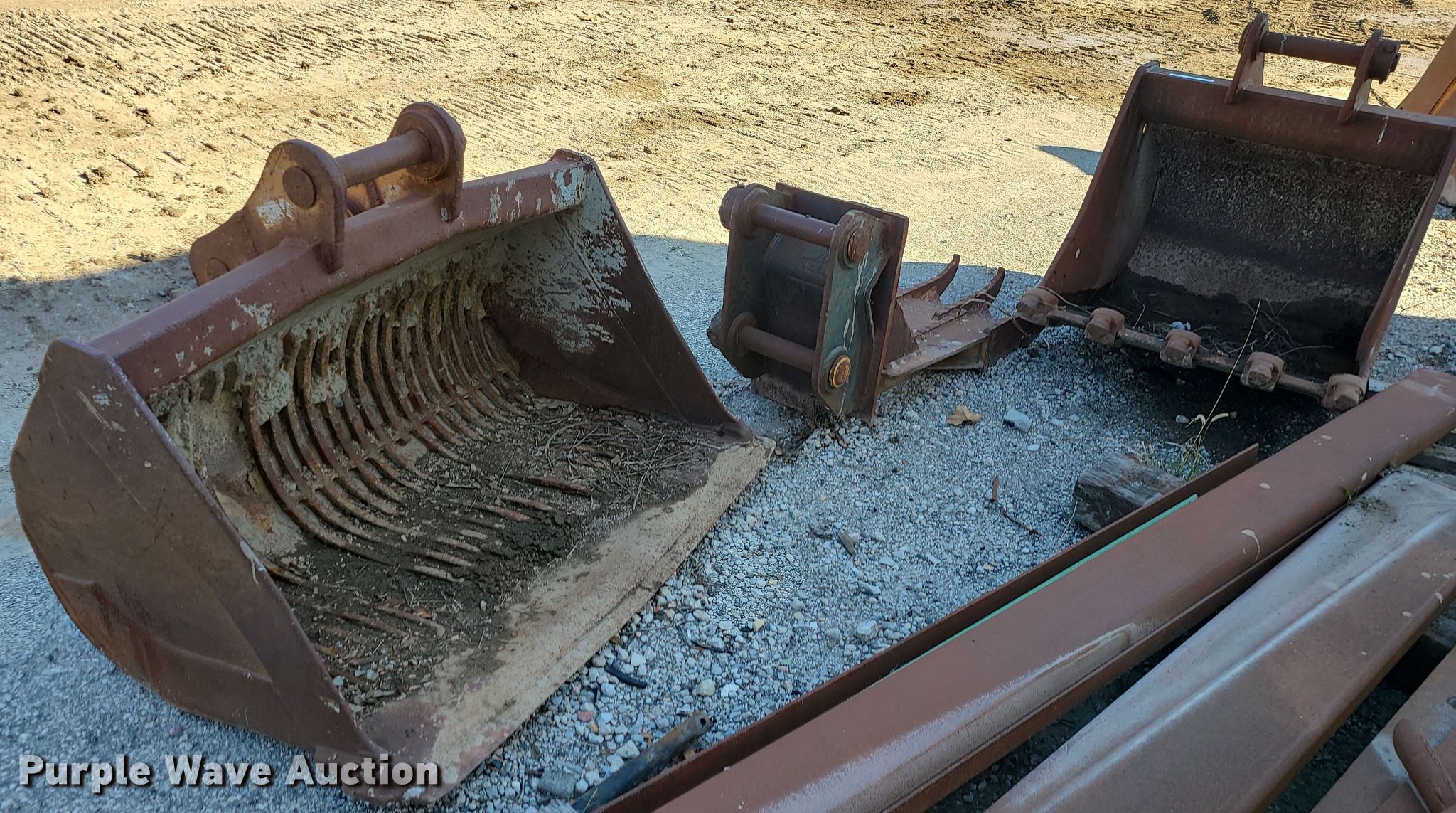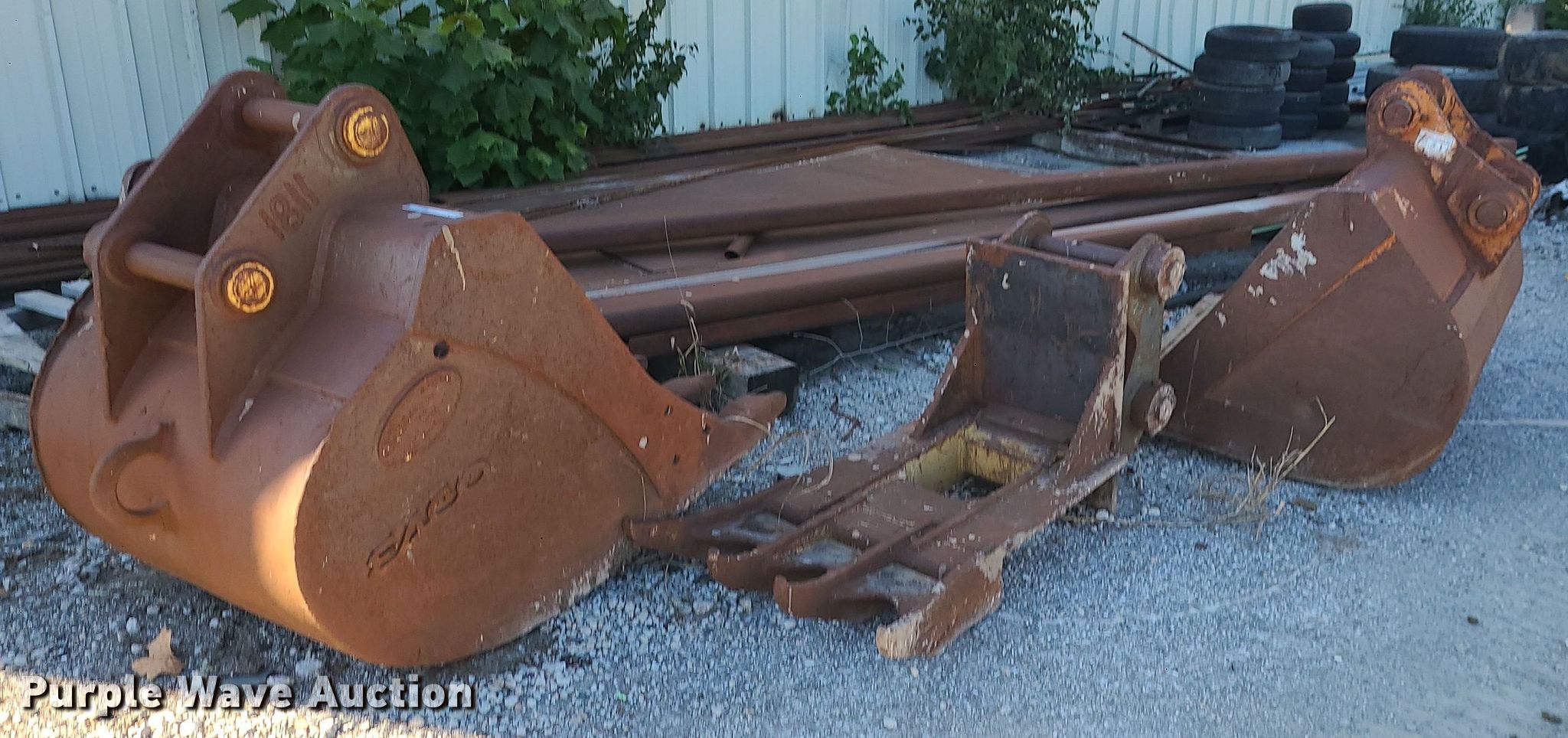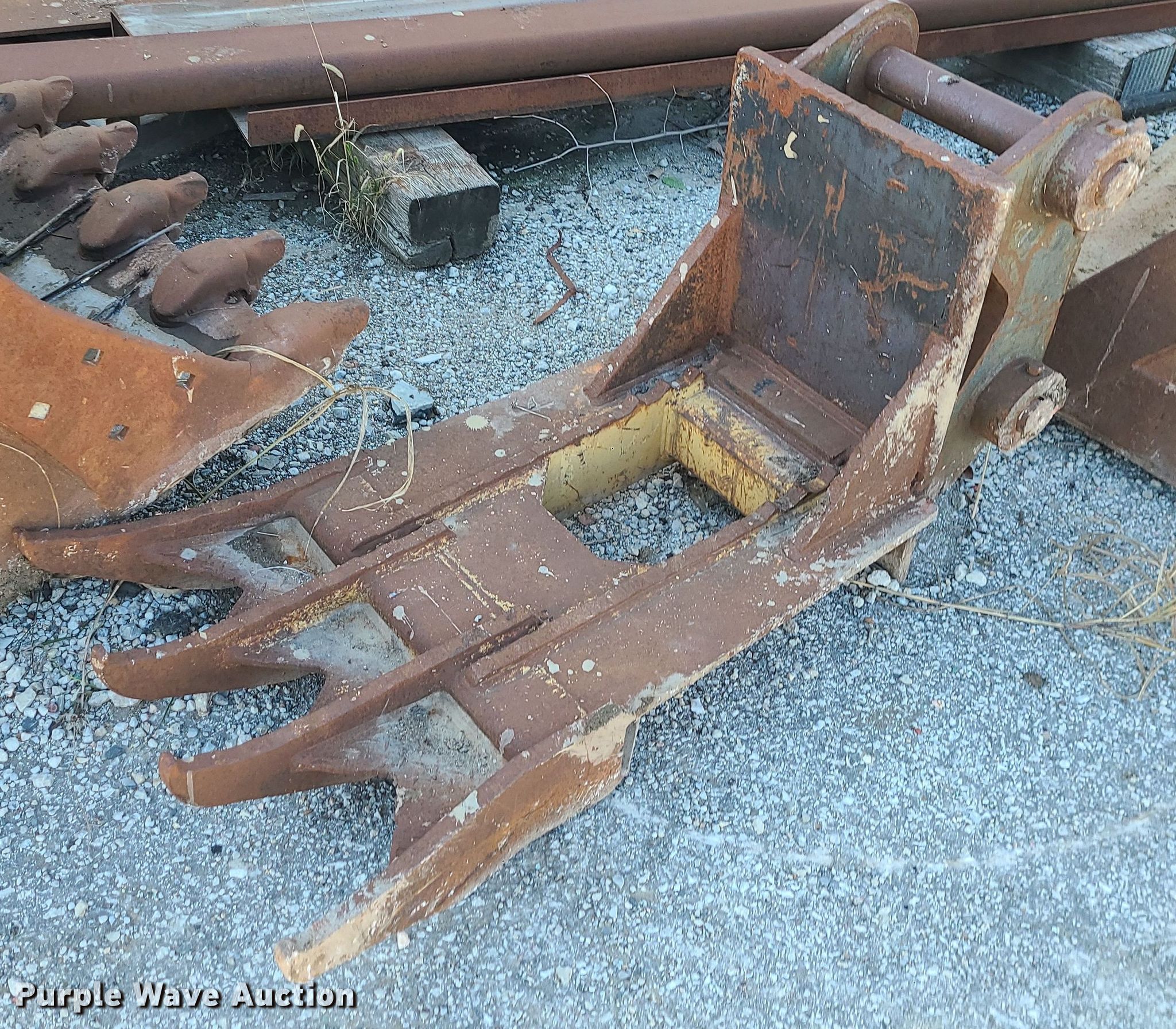 Purple Wave is selling a used Excavator Attach. in Missouri. This item is a (2) excavator buckets with the following: Esco, Width: 44", Cutting edge: Weld-on, Teeth: 5, Bucket, Width: 60", Claw, Width: 30"