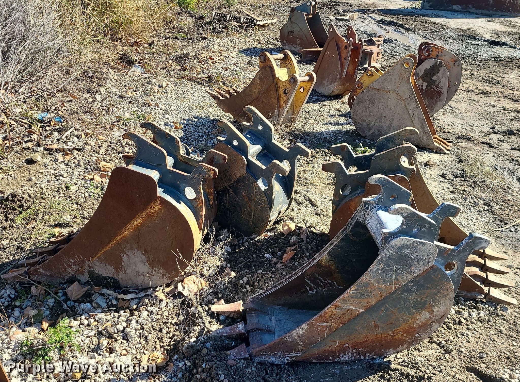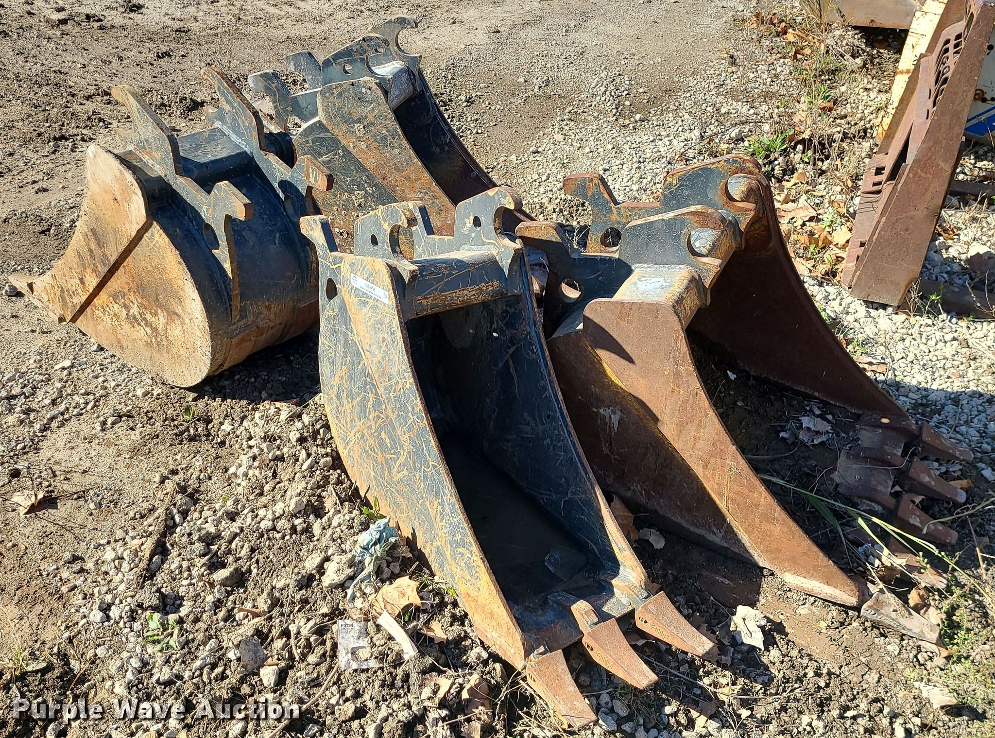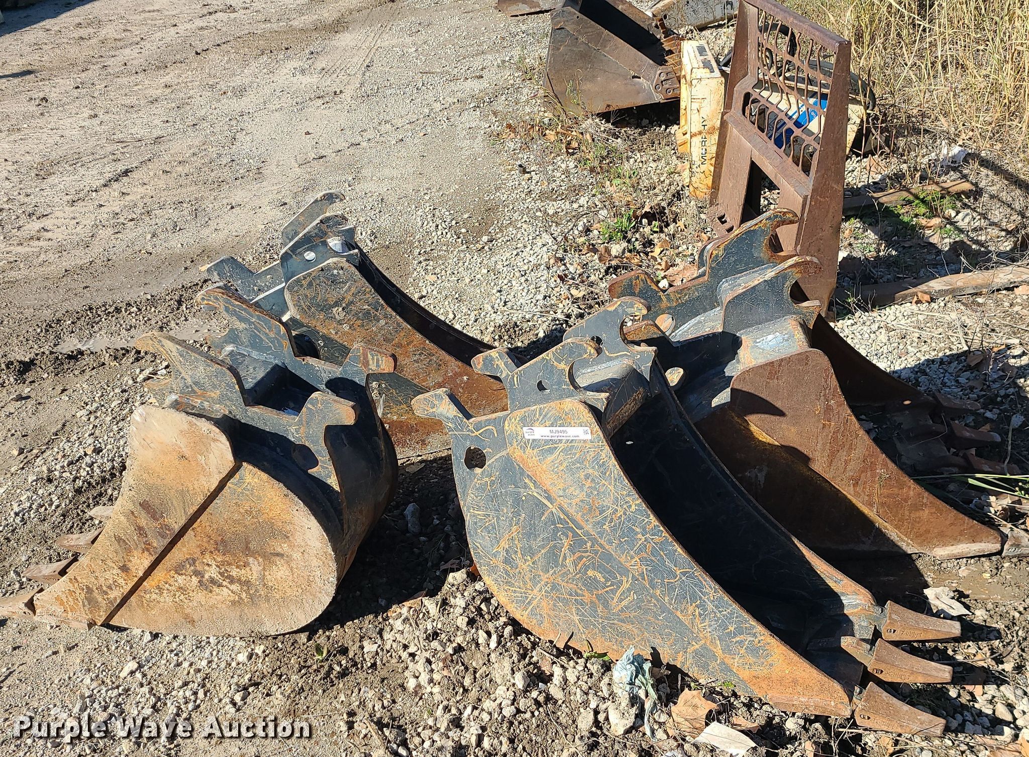 Purple Wave is selling a used Excavator Attach. in Missouri. This item is a (4) John Deere excavator buckets with the following: Width: 14", Teeth: 3, Width: 14", Teeth: 3, Width: 18, Teeth: 4, Width: 24", Teeth: 5