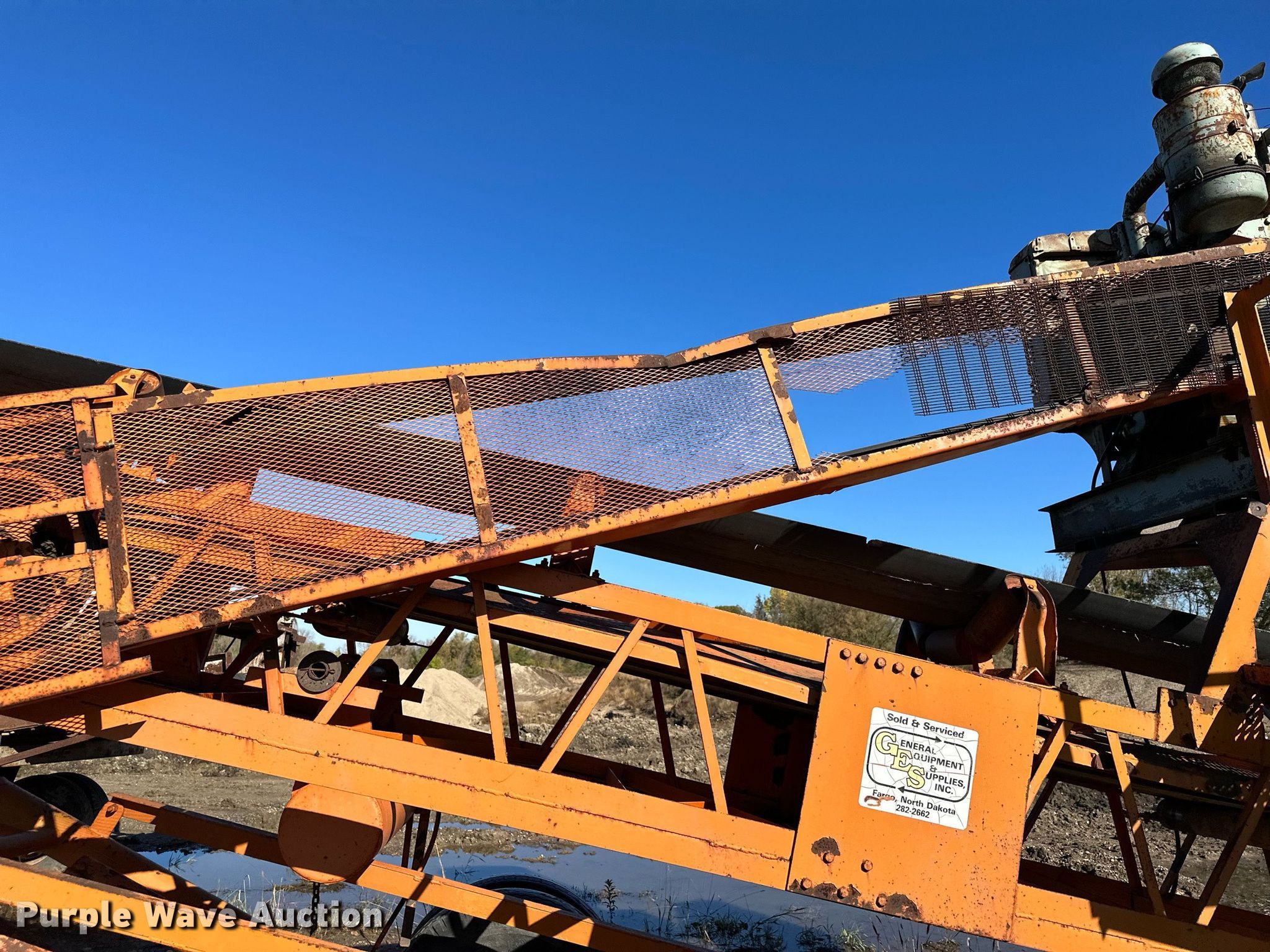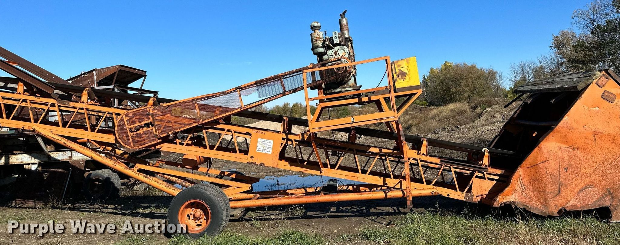 Kohlberg 1D-6012 dozer trap conveyor. Serial: 20776012831. Engine GM detroit 3055C, Cylinders: 3, Fuel type: Diesel. Features Screen deck Length: 12', Width: 5', Decks: Single, Input hopper Length: 3' 7", Width: 3' 4", Vibrating, Conveyors Input: 45' L x 30" W. Transfer of ownership documentation will be a bill of sale. BH Aggregate. 1248 35th Street Southwest. Montrose, MN 55363