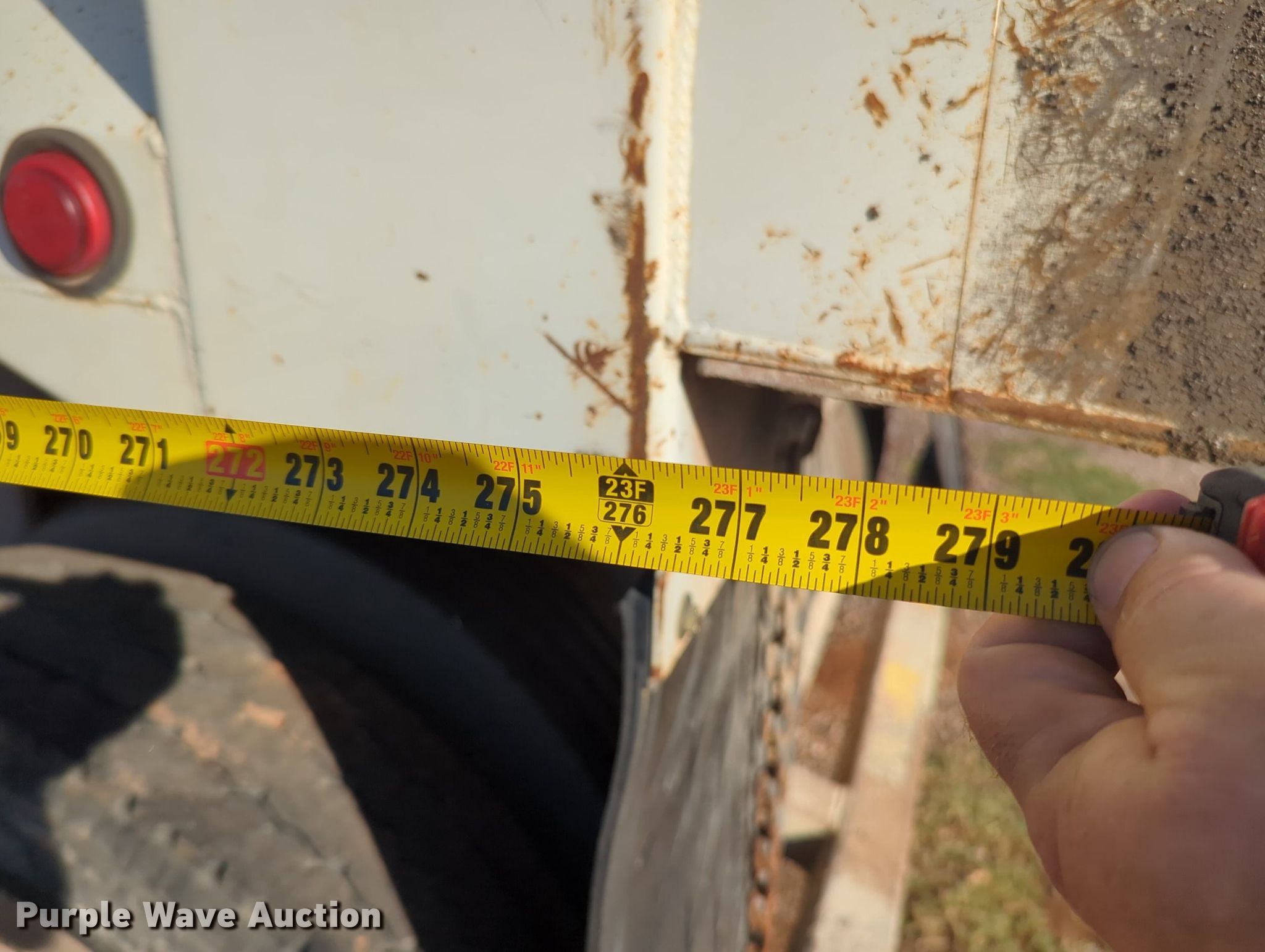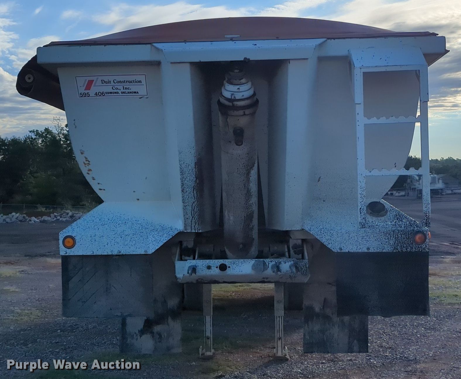 2011 Hilbilt end dump trailer. VIN: 1H9A3M4A7B1015039, Unit #: 595406. Dimensions Overall: 23' L x 96" W, Side height: 36". Features Body type: Steel, Ram: Single, End gate: Air operated. Chassis Landing gear: Dual, Suspension: Spring, Brakes: Air, Axles: Tandem. Tires Size: 11R22.5. Oklahoma title. Title distribution may be delayed up to 30 days from verification of funds. Duit Holdings, Inc.. 7183 E Waterloo Industrial Road. Edmond, OK 73034