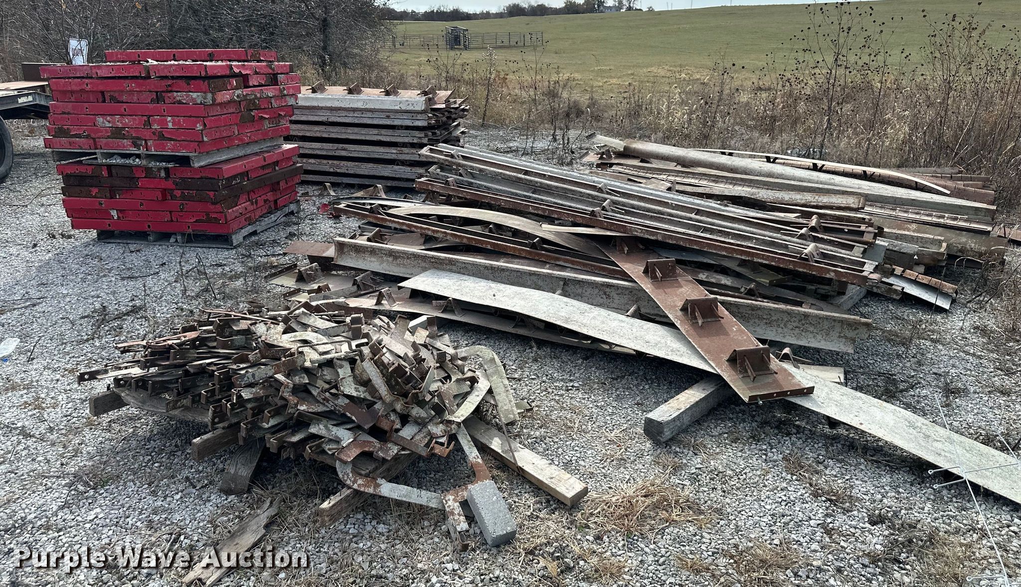 Purple Wave is selling a used Concrete Equip. or Acces. in Kansas. This item is a Concrete forms with the following: Approx. 30. 10' L X 12" H, Approx. 30. 10' L x 4" H, Approx. 37. 4' L x 16" H, Misc. curb forms, Misc. parts and pieces
