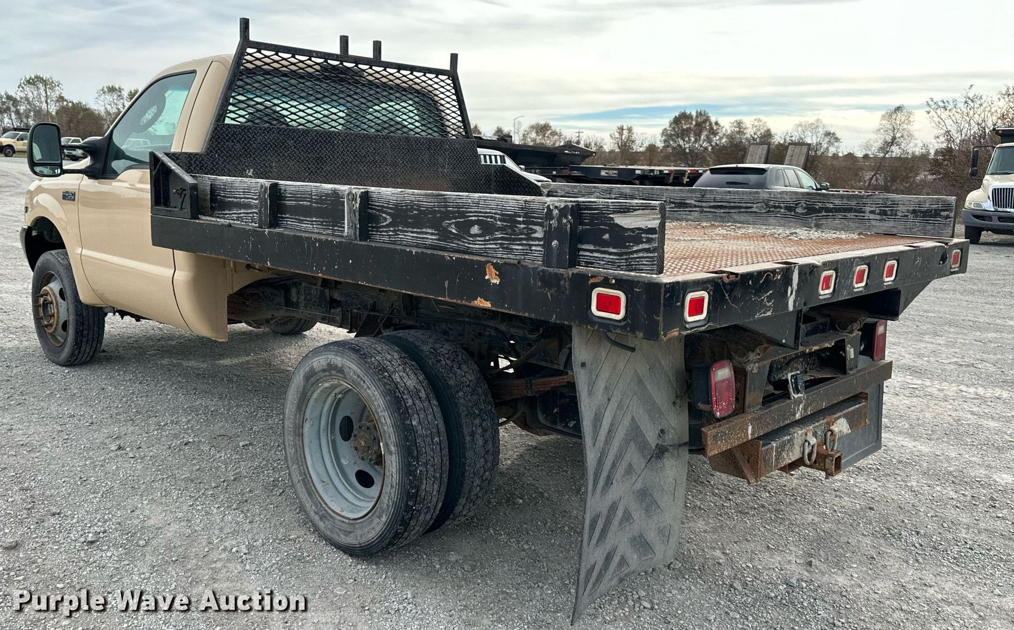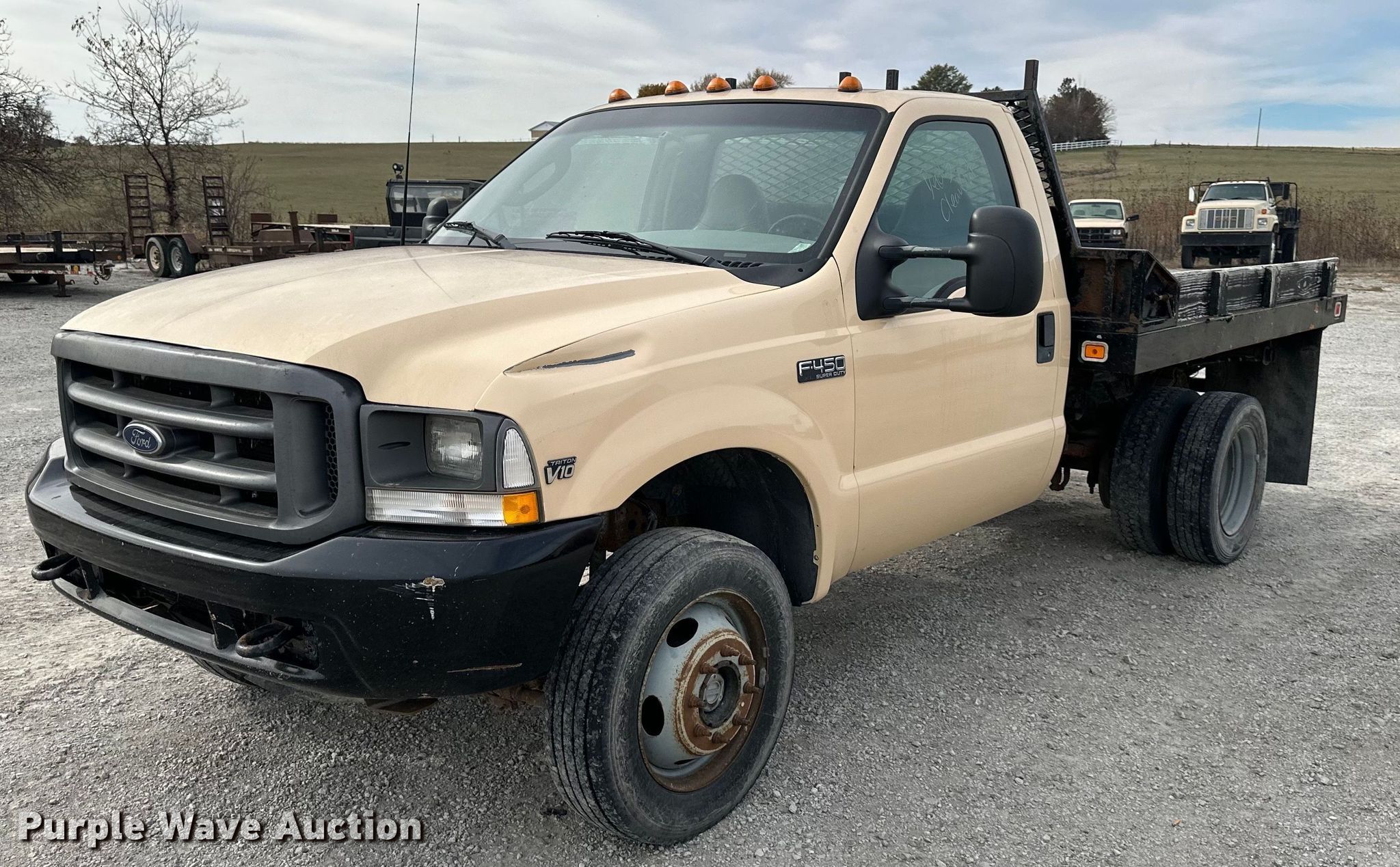 Purple Wave is selling a used Flat Bed Truck in Kansas. This item is a 2003 Ford F450 Super Duty XL dump flatbed truck with the following: Miles: 205,956 on odometer, VIN: 1FDXF47S83ED46506