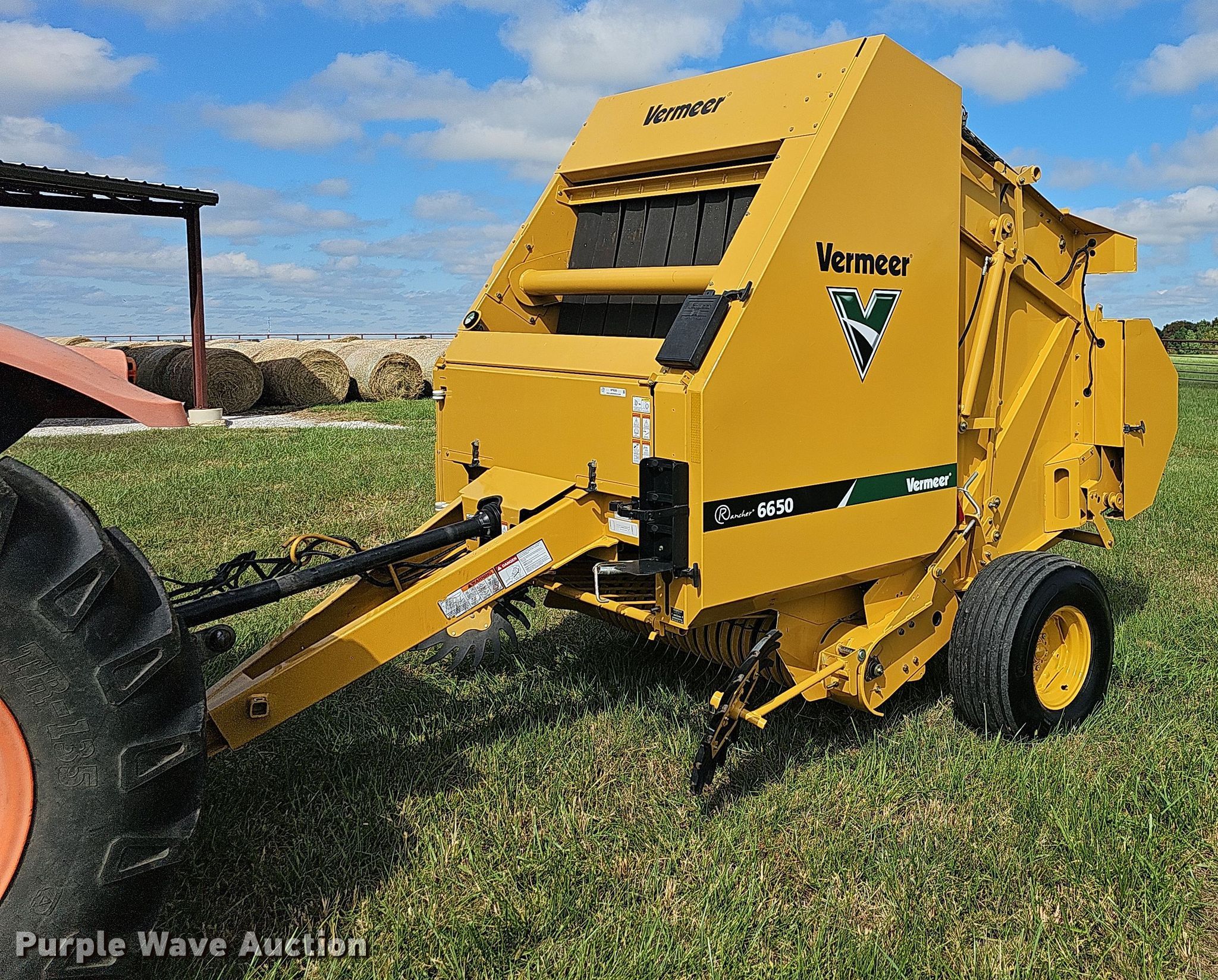Vermeer 6650 Rancher round baler. Bale count: 192, Serial: 1VRA151Y4D1000221. Features PTO: 540, Monitor Vermeer Bale Expert, Transport lights, Gathering wheels, Pickup width: 5', Hydraulic pickup lift, Auto-tie, Net-wrap, Bale kicker, Bale ramp. Tires Size: 13.50-15. Notes Bale size 65" x 5', Motion sensor. Brian Turner retirement. 8387 Missouri 123. Walnut Grove, MO 65770