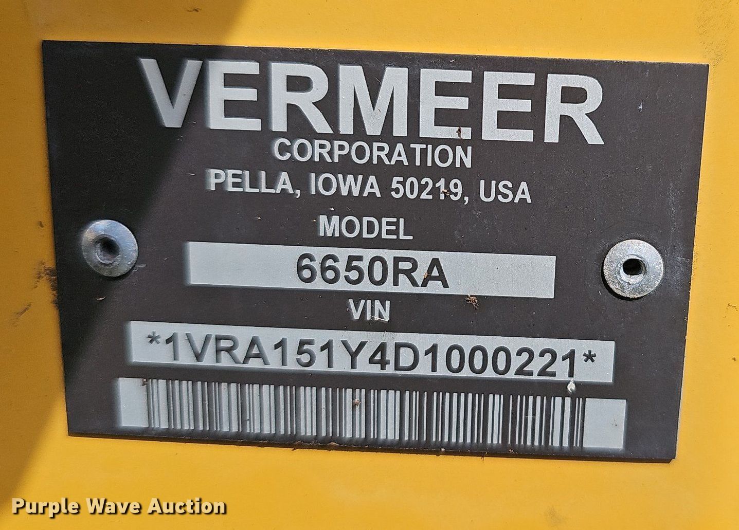 Purple Wave is selling a used Round Baler in Missouri. This item is a Vermeer 6650 Rancher round baler with the following: Bale count: 192, Serial: 1VRA151Y4D1000221