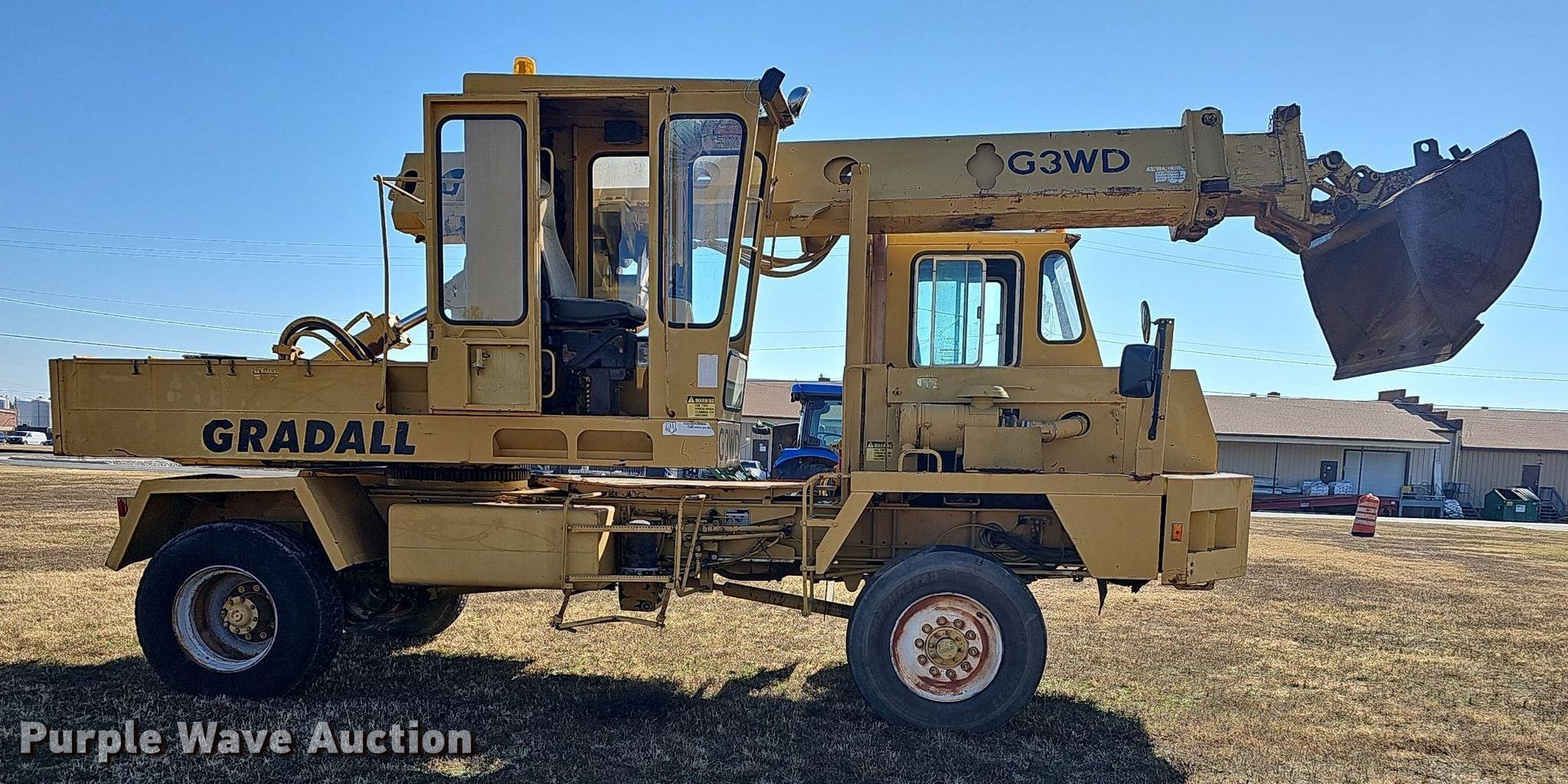 Purple Wave is selling a used Wheeled Excavator in Arkansas. This item is a 1997 Gradall G3WD wheeled excavator with the following: Miles: 16,581 on meter, Hours: 9,369 on meter, Serial: 0133257