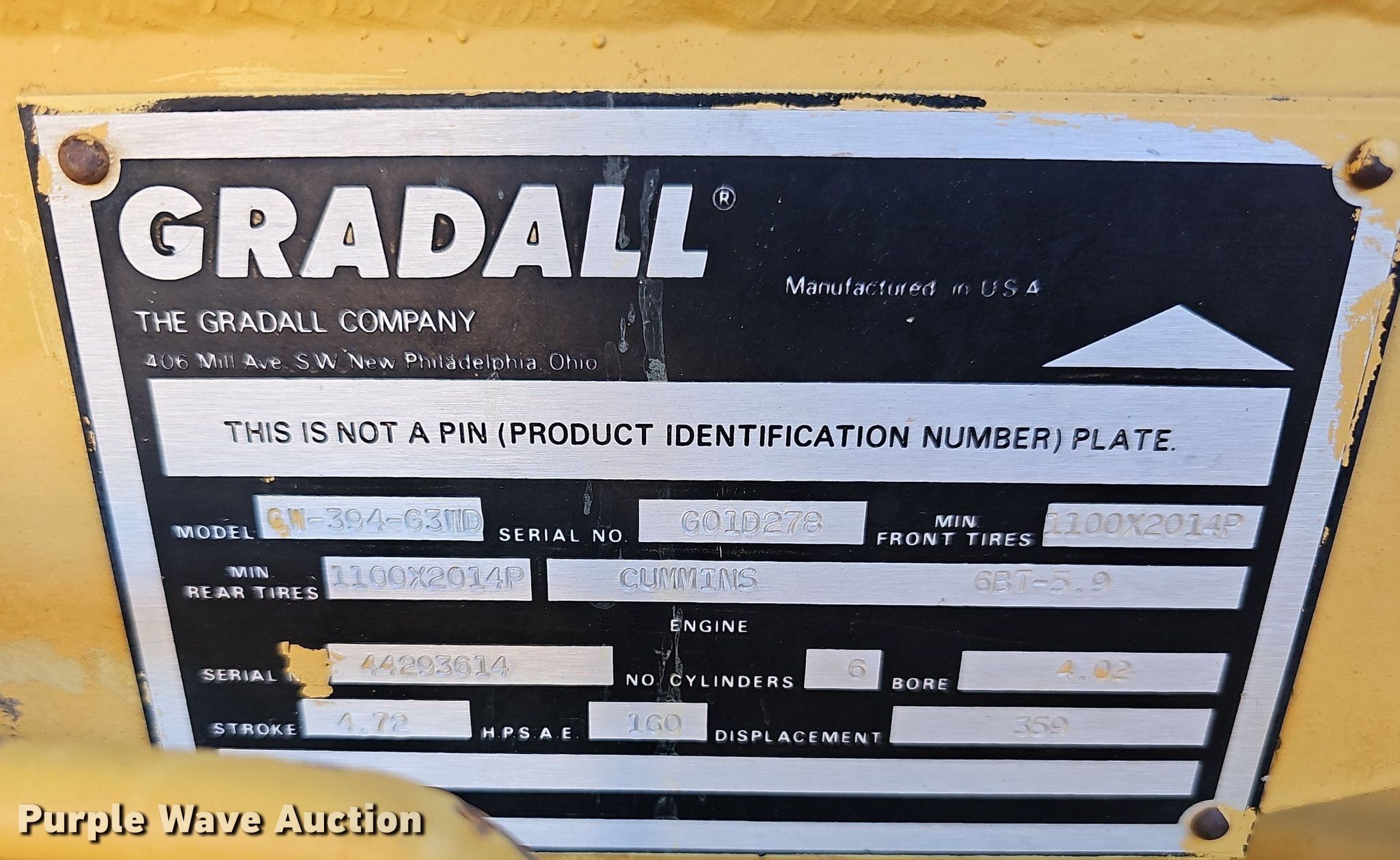 1997 Gradall G3WD wheeled excavator. Miles: 16,581 on meter, Hours: 9,369 on meter, Serial: 0133257. Engine Cummins 6BT , Serial: 44293614, Displacement: 5.9L, Cylinders: 6, Fuel type: Diesel. Transmission 6F - 3R. Operators station Enclosed cab. Features Boom Standard, Stick Stick length: 23', Bucket Width: 65", Cutting edge: Bolt-on. Tires Size: 385/65R22.5. Blake Construction. 11709 Sagebrush Lane. Fort Smith, AR 72916