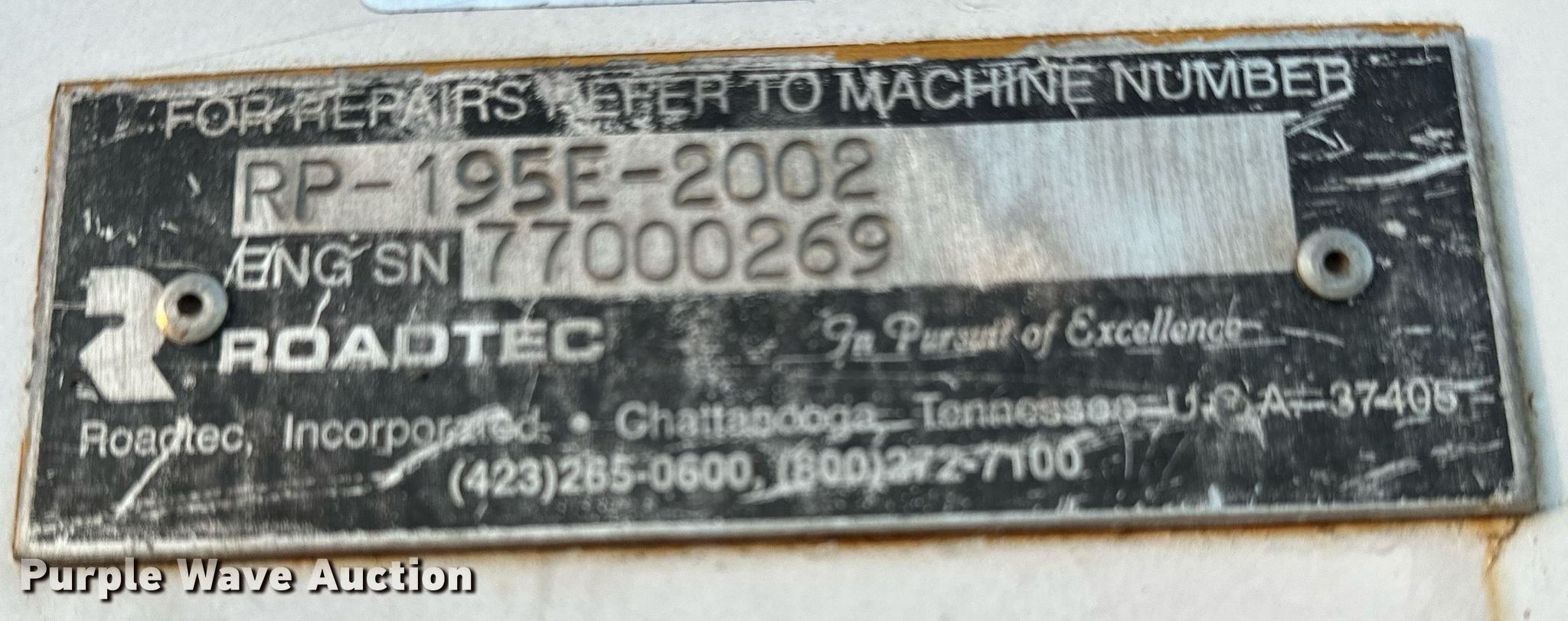Purple Wave is selling a used Paver or Screed in Oklahoma. This item is a 2011 Roadtec RP-195E paver with the following: Hours: 6,494 on meter, Serial: RP-195E-2002