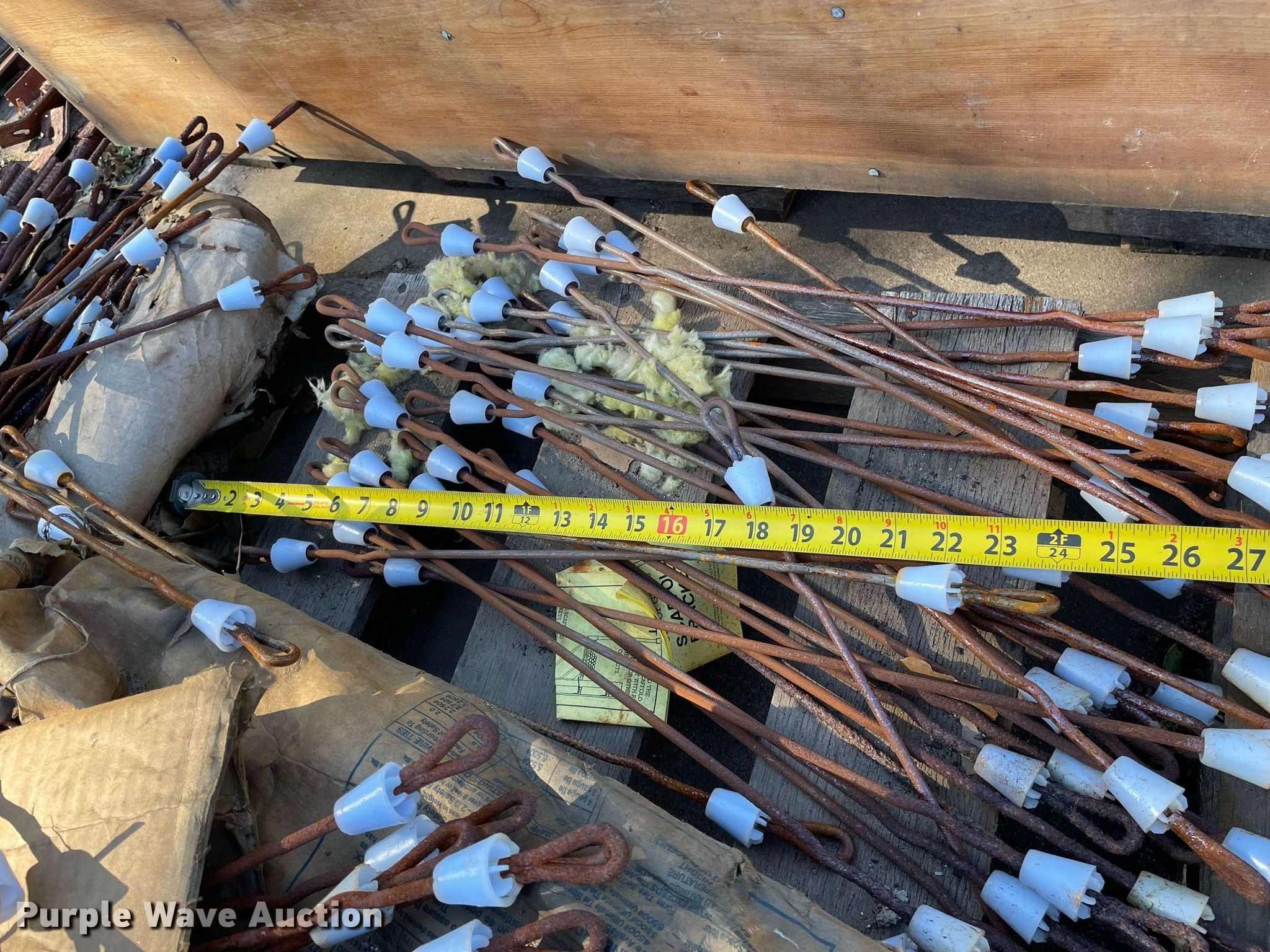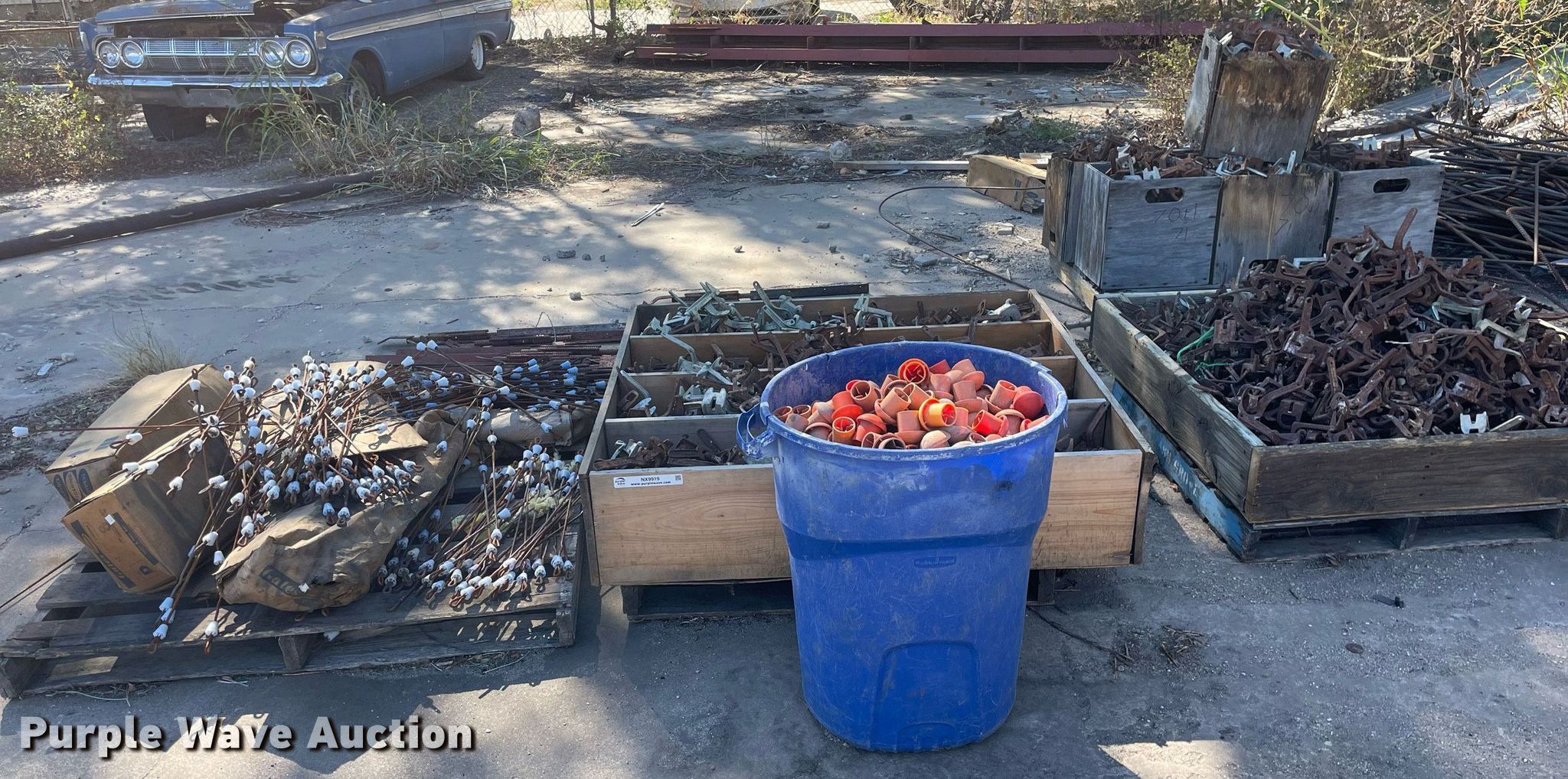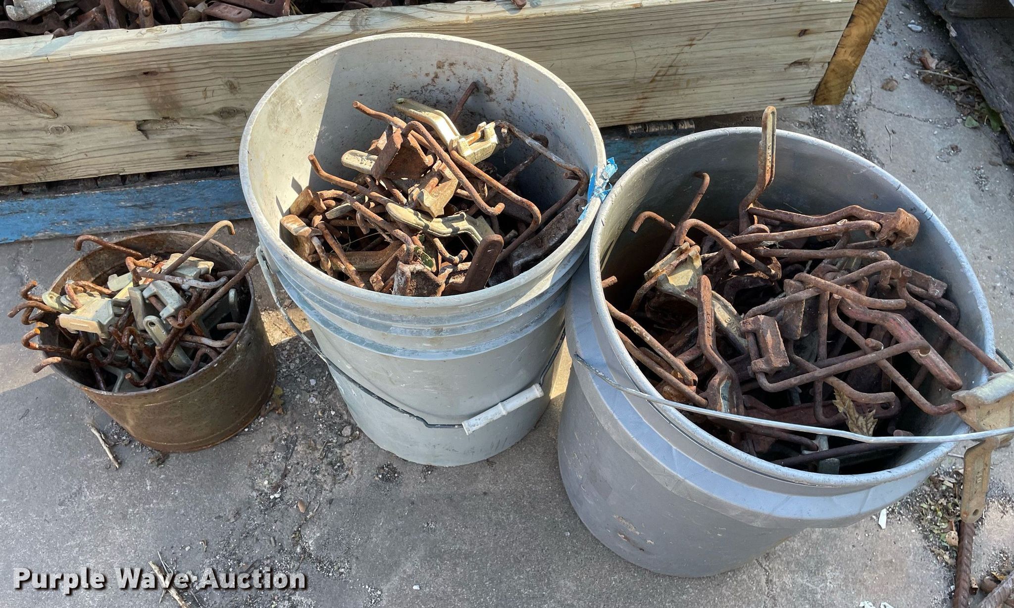 Purple Wave is selling a used Concrete Equip. or Acces. in Kansas. This item is a Concrete equipment with the following: (3) pallets of tielock brackets/cam locks, Approx. 1,545, (3) buckets strongback brackets, Pallet of wall ties, (20) wall braces, Approx. 500 rebar safety caps