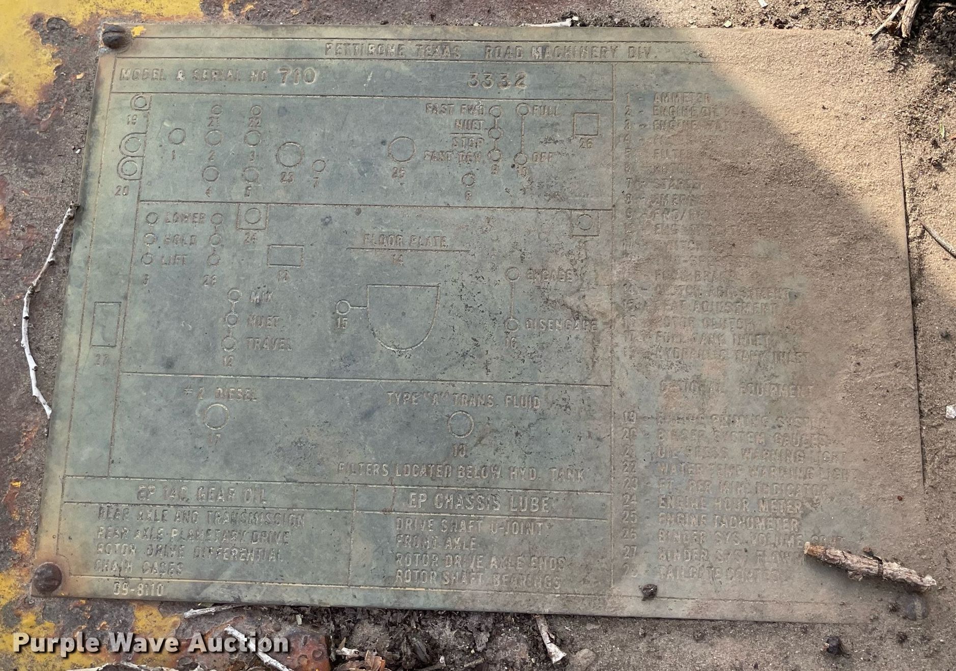Purple Wave is selling a used Reclaimer or Stabilizer in Kansas. This item is a Pettibone SM-710 soil stabilizer / recycler with the following: Hours: 421 on meter, Actual hours unknown, Serial: 710
