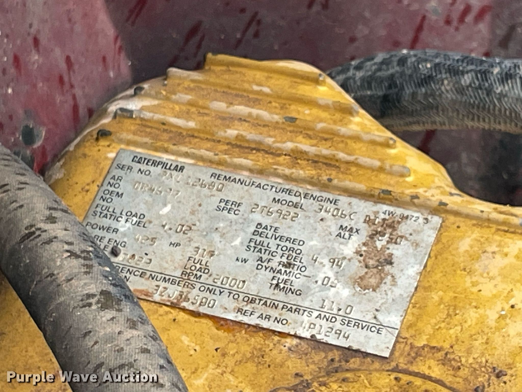 1994 Peterbilt 378 dump truck. Miles: 1,622,958 on odometer, VIN: 1XPFDB9X8RN342837. Engine Caterpillar 3406C, Serial: 7XC12680, Displacement: 14.6L, Cylinders: 6, Fuel type: Diesel. Transmission Manual, Speed: 10. Chassis Axles: Tandem, Suspension: Air, Brakes: Air, PTO, GVWR: 52,000 lbs FAWR: 12,000 lbs, IAWR: 20,000 lbs, RAWR: 20,000 lbs. Interior AC, Heat, Heated mirrors, Cruise control. Features Dump bed 14' L x 8' W, Side height: 48", Bed type: Steel, Roll tarp, Ram: Single , End gate: Manual. Tires Size: 11R24.5. Notes Additional tires and wheels included. Oklahoma title. Title distribution may be delayed up to 14 days from verification of funds. 15155 Cotton Gin Avenue. Wayne, OK 73095