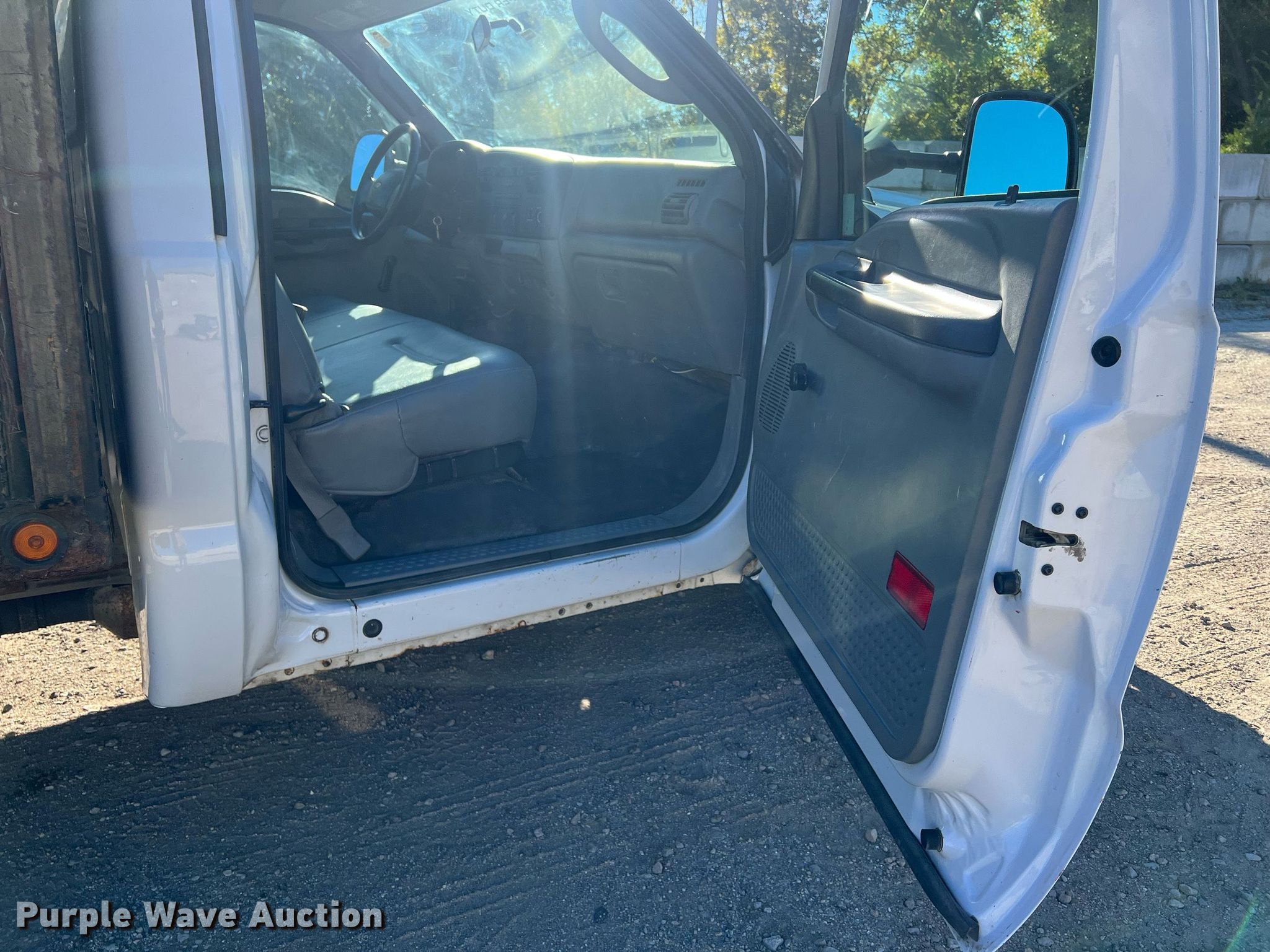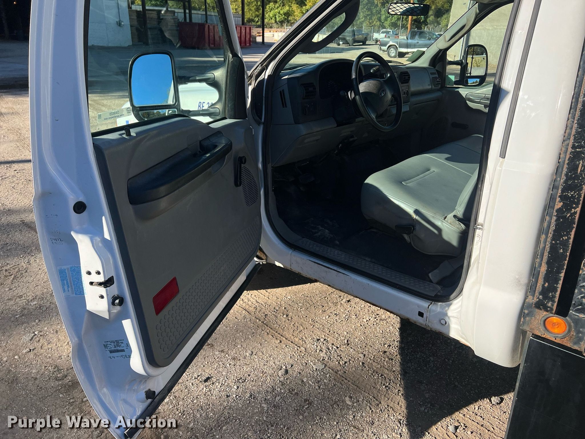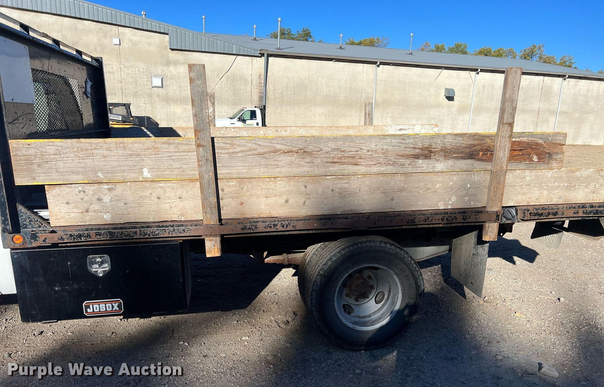 2005 Ford F350 flatbed pickup truck. Miles: 85,101 on odometer, VIN: 1FDWF36Y75EA52836. Engine Displacement: 6.8L V10 SOHC, Cylinders: 10, Fuel type: Gas. Transmission Automatic. Interior AC, Heat. Features Flatbed 13' L x 8' W. Tires Size: LT245/75R17. Notes Contents not included, Dash warning indicator: Check engine. Kansas title. Title distribution may be delayed up to 14 days from verification of funds. Bob Florence Contractor, Inc.. 1934 South Kansas Avenue. Topeka, KS 66612