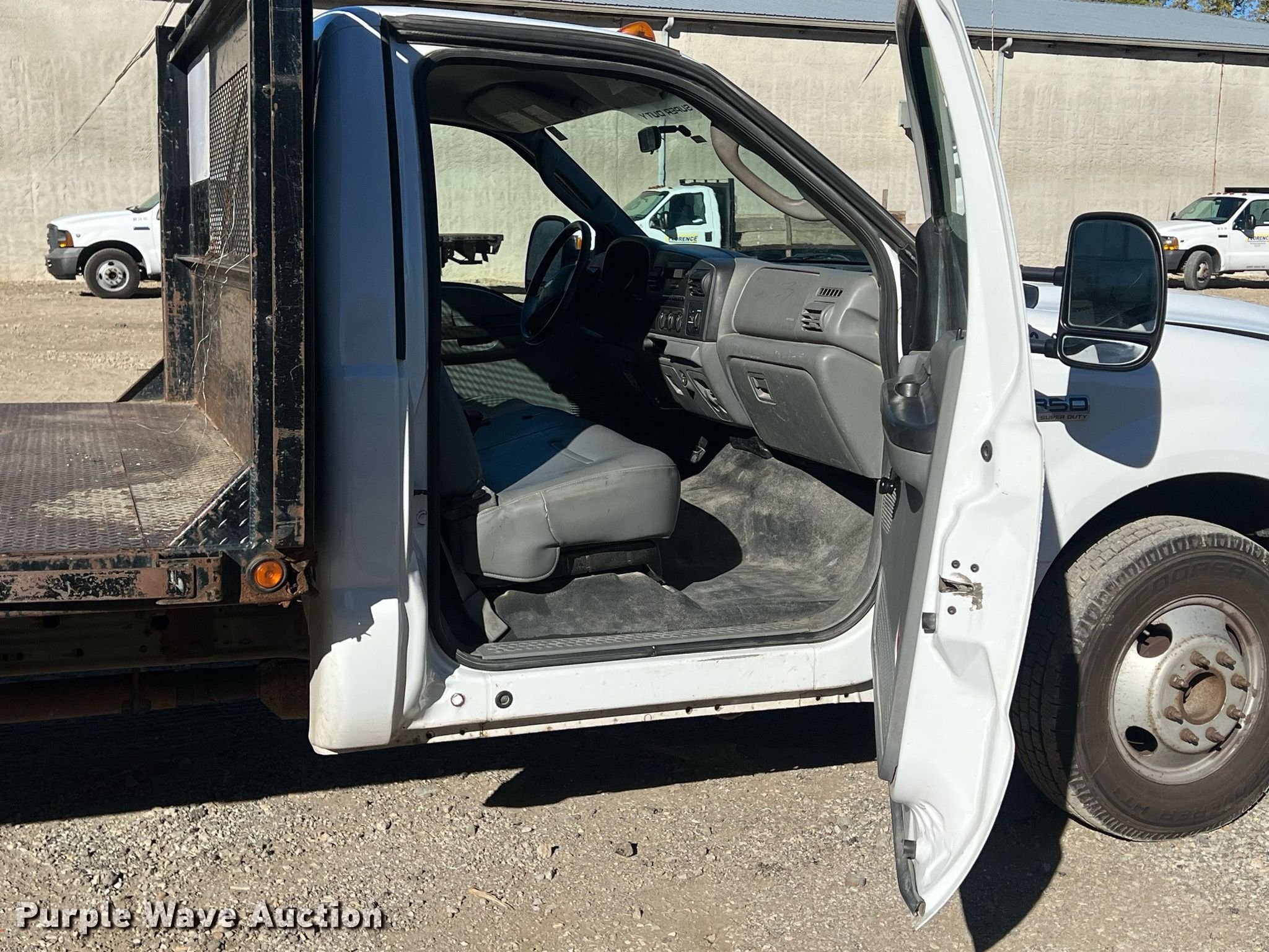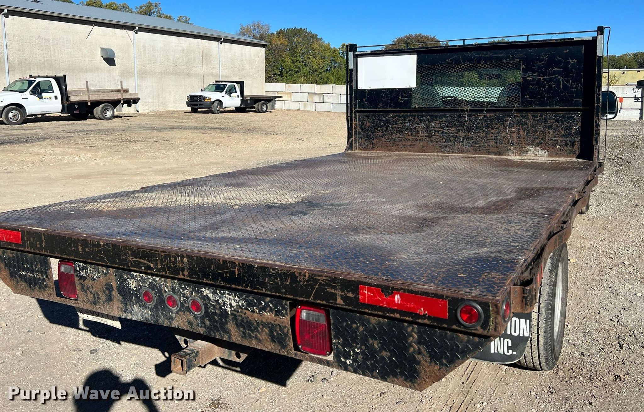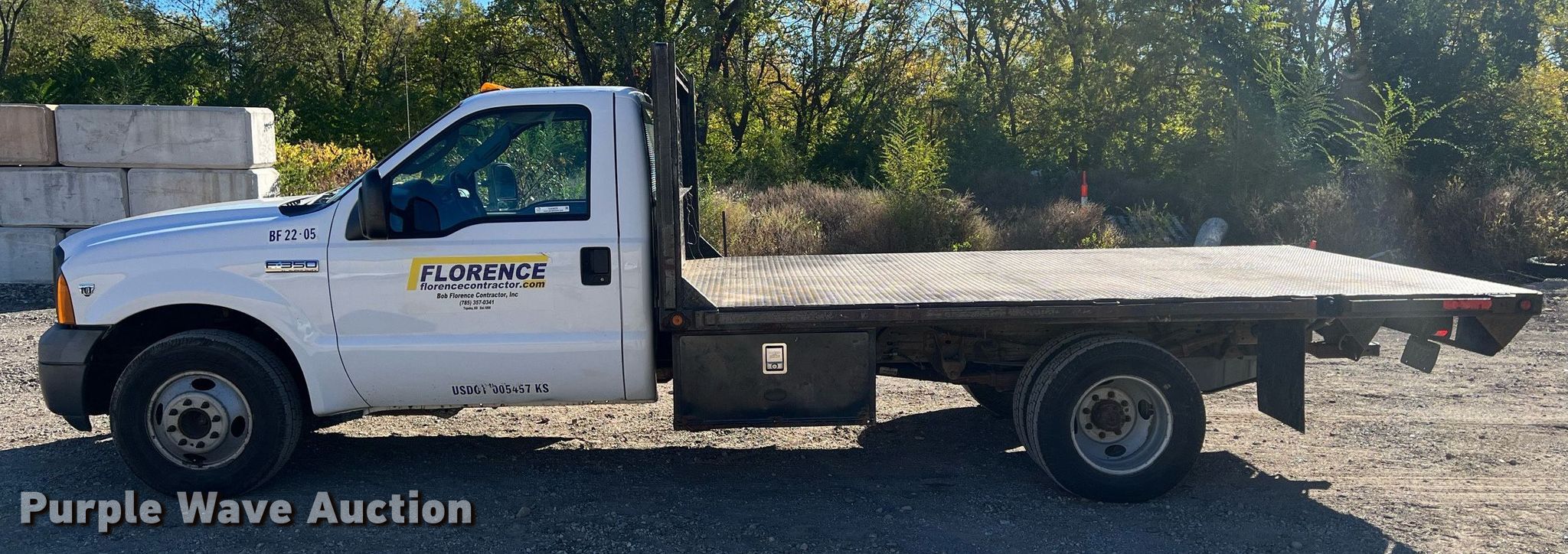 2005 Ford F350 flatbed pickup truck. Miles: 83,274 on odometer, VIN: 1FDWF36Y05EA52838. Engine Displacement: 6.8L V10 SOHC, Cylinders: 10, Fuel type: Gas. Transmission Automatic. Interior Heat. Features 13'L x 8' W. Tires Size: LT245/75R17. Notes Dash warning indicator: Check engine, Airbag, Windshield chipped or cracked. Kansas title. Title distribution may be delayed up to 14 days from verification of funds. Bob Florence Contractor, Inc.. 1934 South Kansas Avenue. Topeka, KS 66612