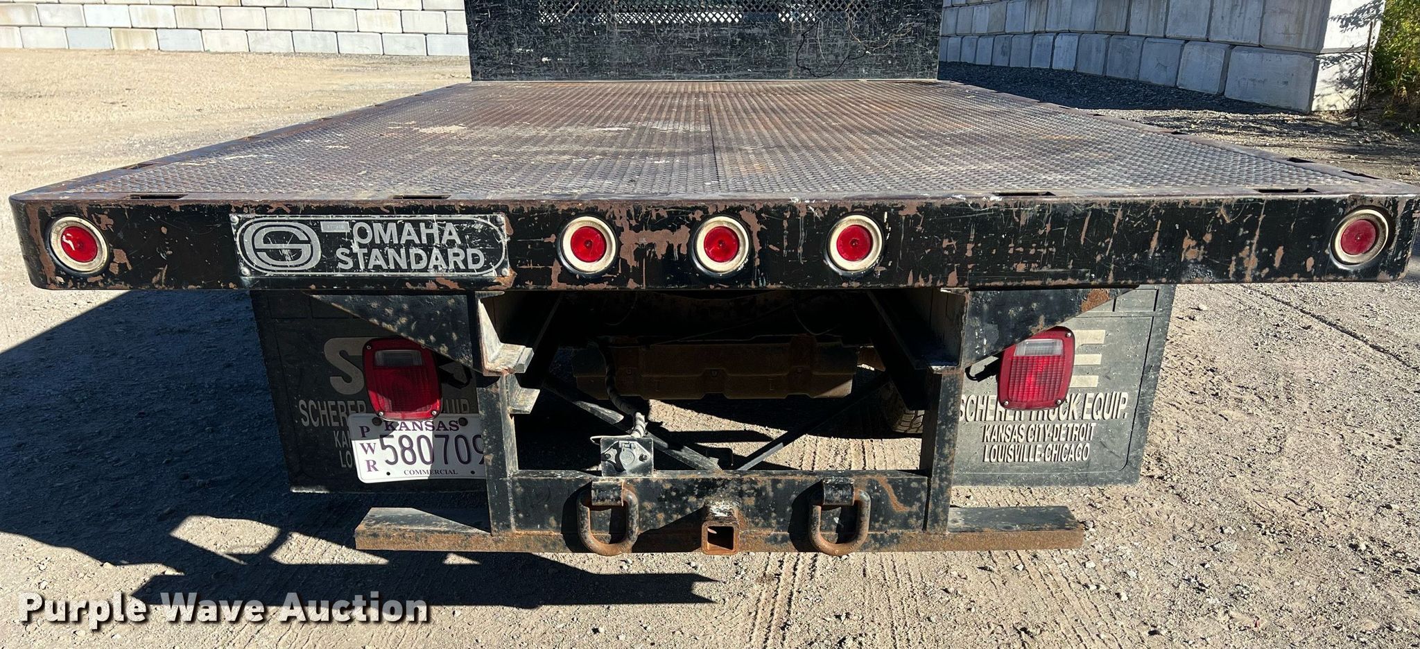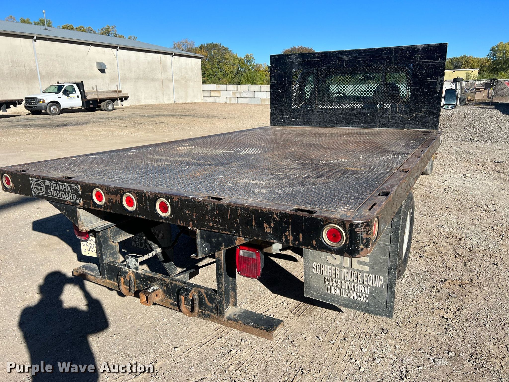 2000 Ford F350 flatbed pickup truck. Miles: 102,940 on odometer, VIN: 1FDWF36S5YEB79813. Engine Displacement: 6.8L V10 SOHC, Cylinders: 10, Fuel type: Gas. Transmission Automatic. Interior Heat. Features Flatbed Omaha standard, 13'L x 96" W. Tires Size: LT235/85R16. Kansas title. Title distribution may be delayed up to 14 days from verification of funds. Bob Florence Contractor, Inc.. 1934 South Kansas Avenue. Topeka, KS 66612