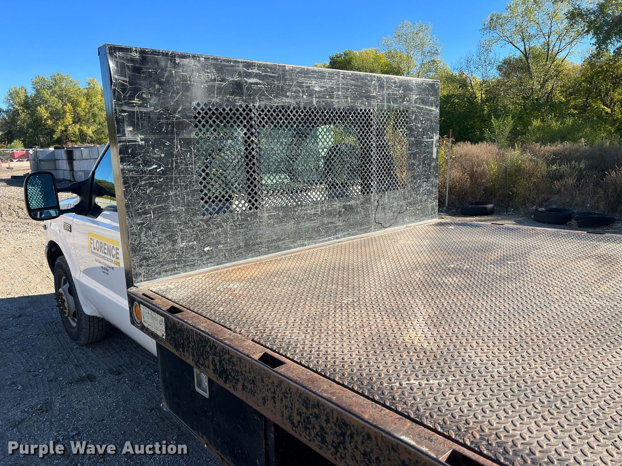 This 2000 Ford F350 flatbed pickup truck will sell to the highest bidder regardless of price.