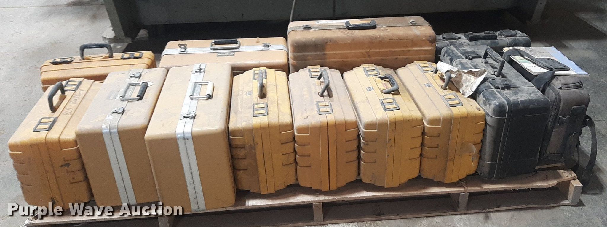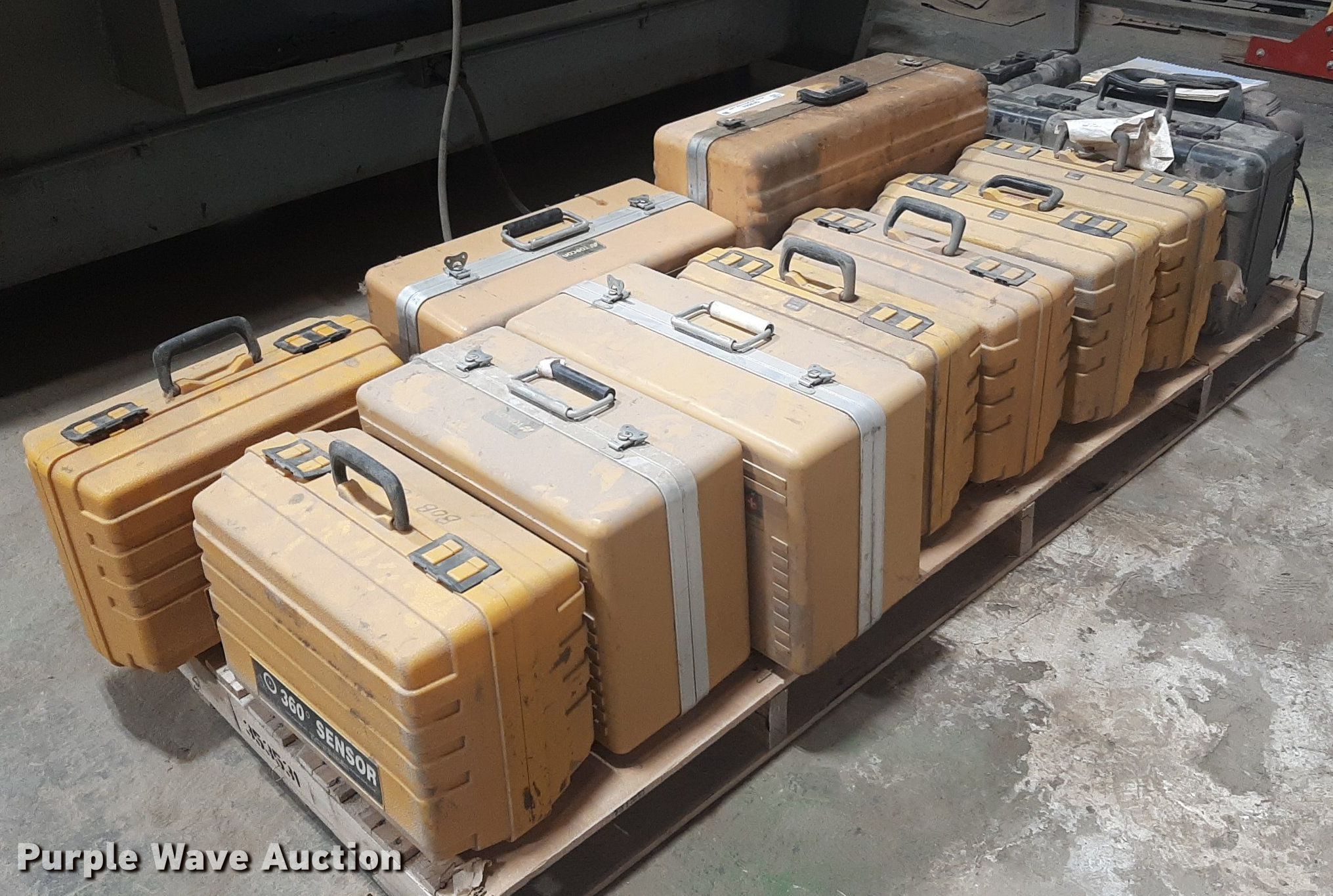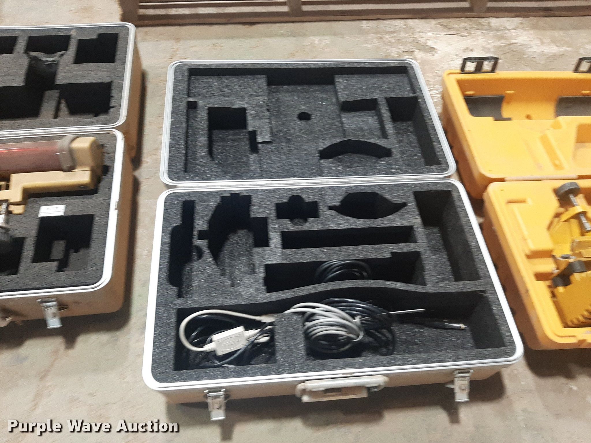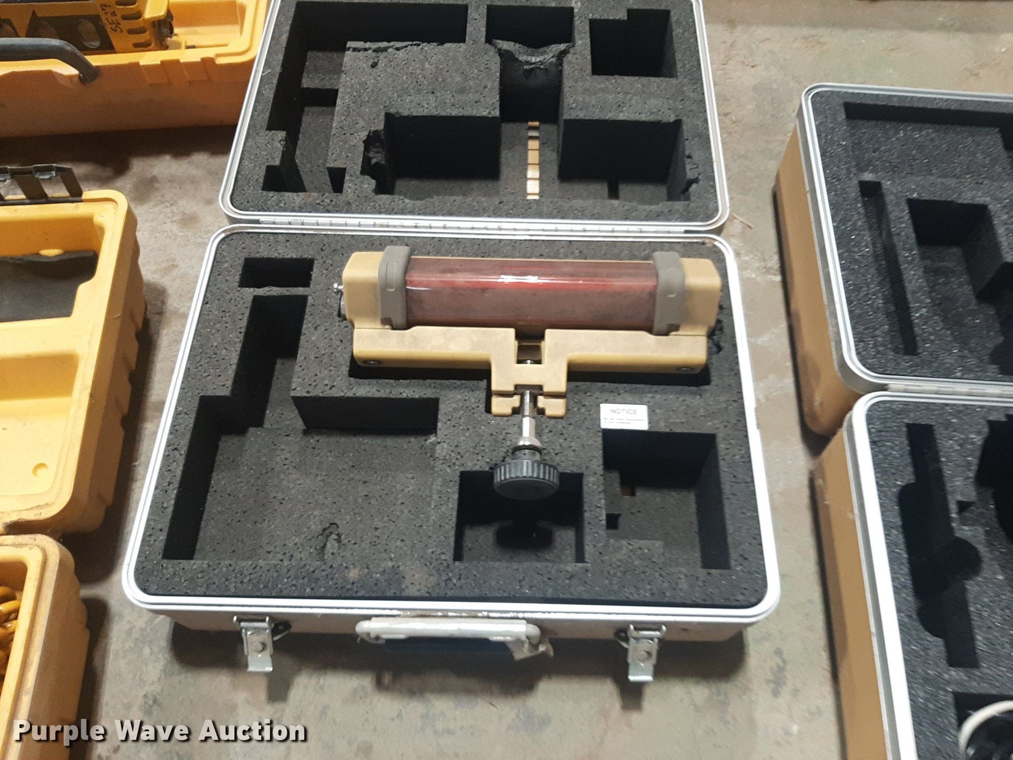 Purple Wave is selling a used Surveying Equip. in Kansas. This item is a Surveying equipment with the following: (6) Laser Alignment recievers, Topcon LS-B2 laser reciever, Carlson Explorer II, Sonicmaster Tri-Sonic laser, TopCon System Five