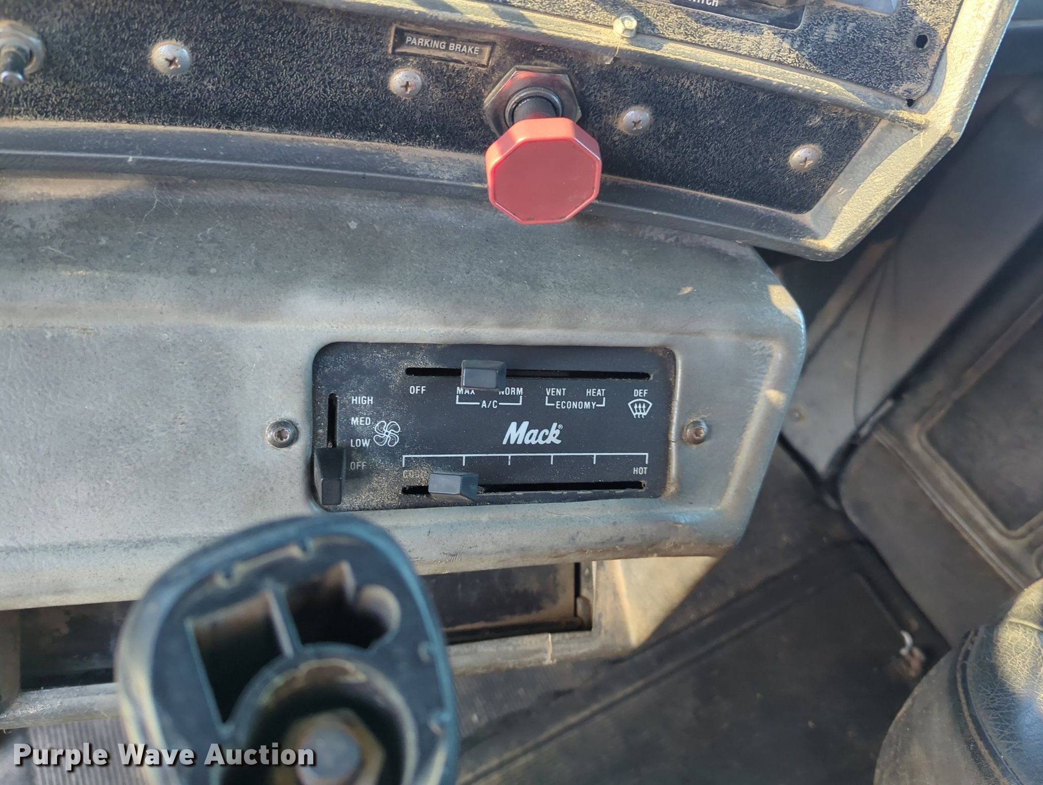2000 Mack RD690S dump truck. Miles: 258,188 on odometer, VIN: 1M2P264C0YM031099. Engine Displacement: 12.0L, Cylinders: 6, Fuel type: Diesel, Engine brake. Transmission Mack Maxitorque, Manual, Speed: 7. Chassis Axles: Tandem, Pusher axle, Suspension: Camelback, Brakes: Air, PTO. Interior AC, Heat, Cruise control. Features Dump bed 16' L x 96" W, Side height: 42", Side board height: 8", Bed type: Steel, Roll tarp, Ram: Single , End gate: Air operated. Tires Front: 385/65R22.5, Rear: 11R22.5. Oklahoma title. Title distribution may be delayed up to 30 days from verification of funds. Duit Holdings, Inc.. 7183 E Waterloo Industrial Road. Edmond, OK 73034
