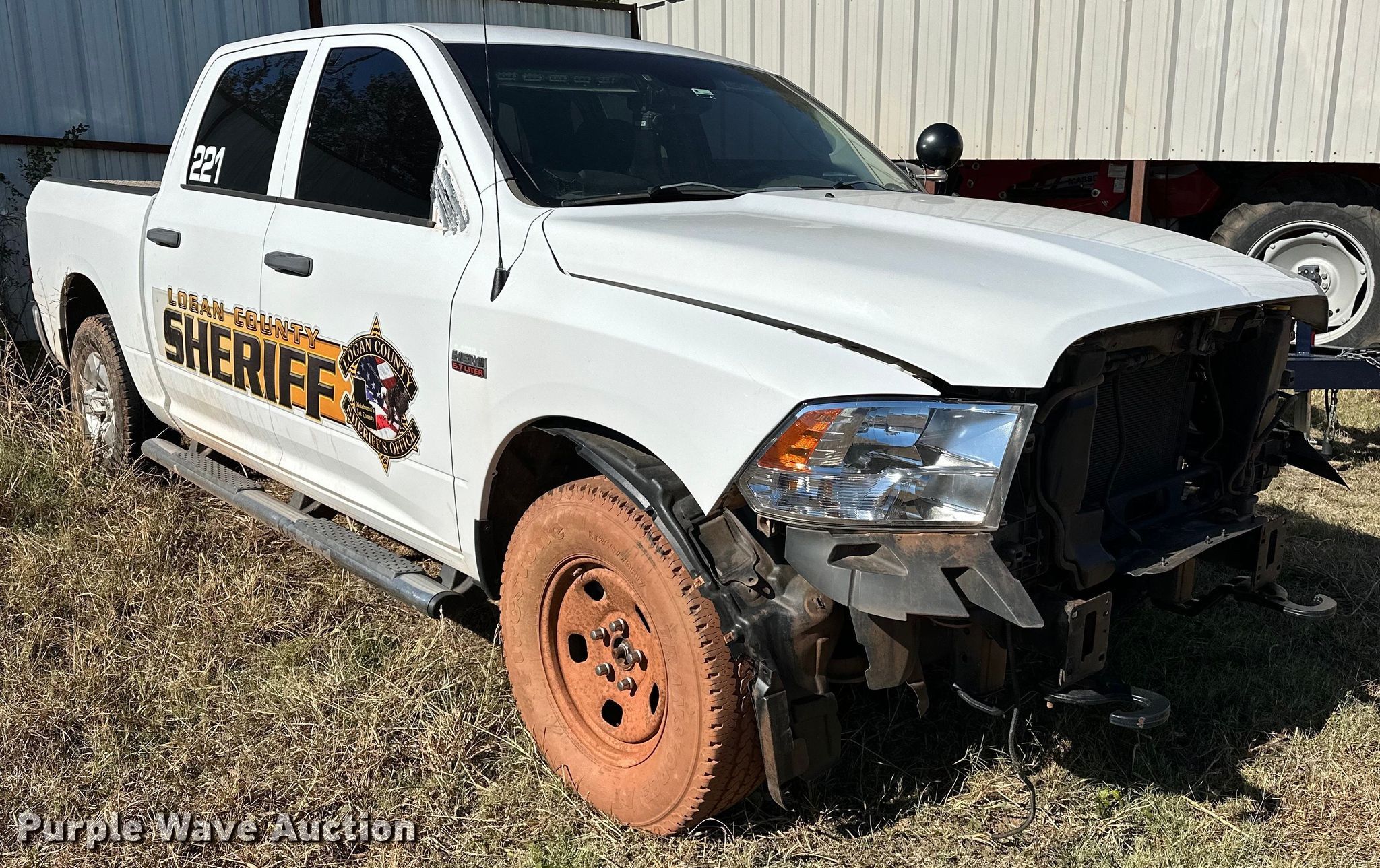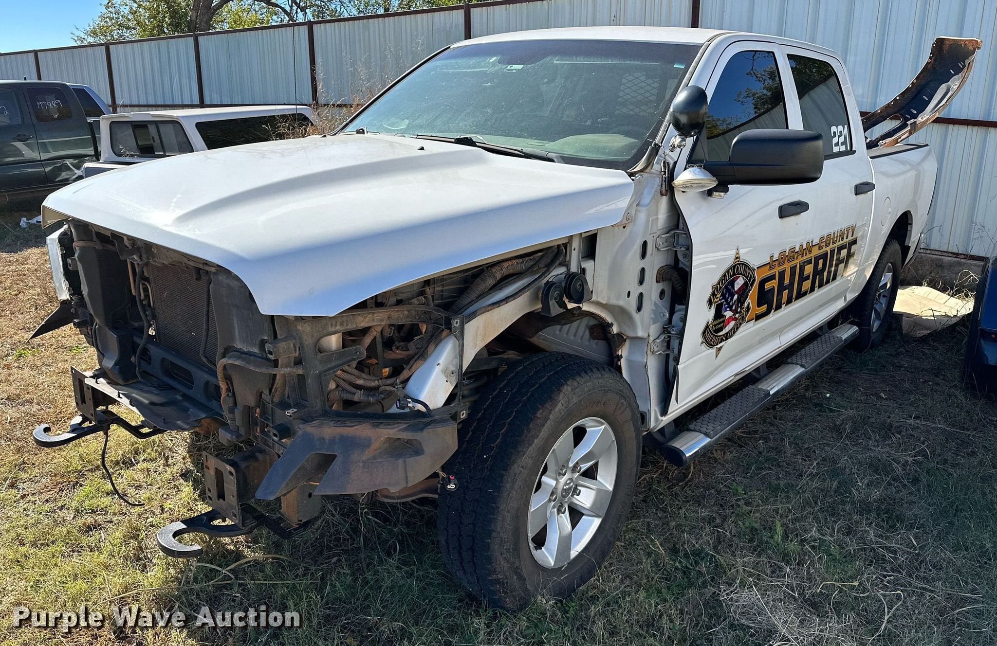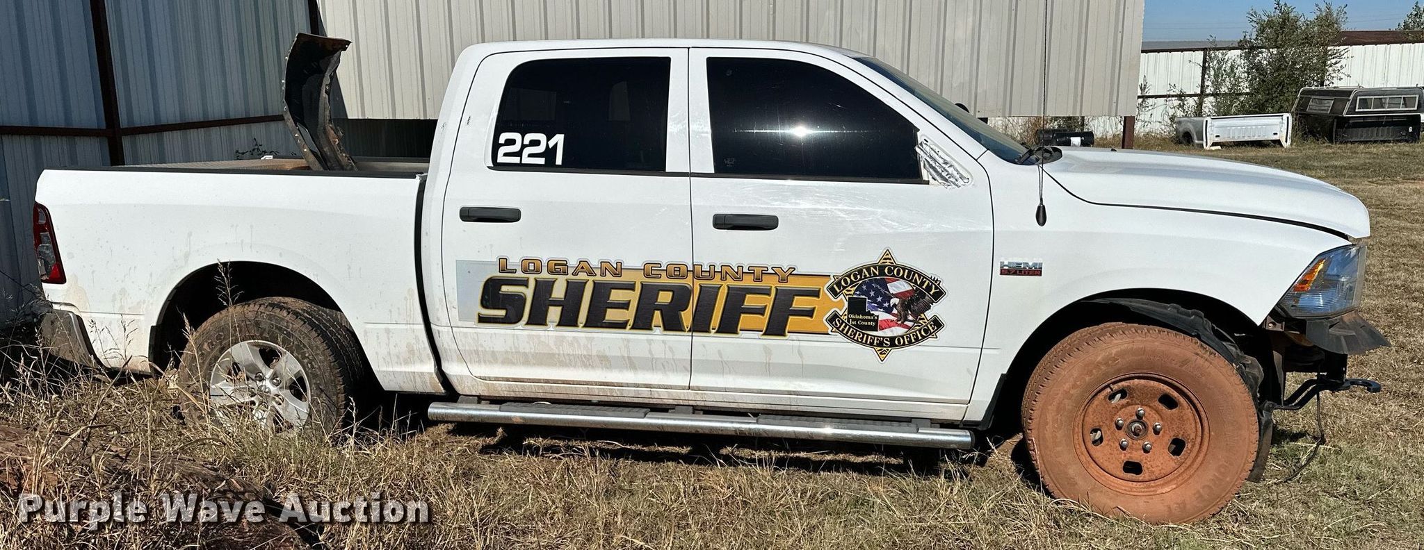 2014 Dodge Ram 1500 Crew Cab pickup truck. Miles: 166,363 on odometer, VIN: 1C6RR7XT5ES453684. Engine Displacement: 5.7L V8 OHV, Cylinders: 8, Fuel type: Gas. Transmission Automatic, Four wheel drive. Interior AC, Heat, Seat: Power driver, Power windows, Power locks, Cruise control. Tires Size: 265/70R17. Notes Some decals will be removed prior to auction, Emergency lights will be disconnected prior to auction, Windshield chipped or cracked, Dead battery, Collision damage, Parts missing, Body damage , Engine issues, ticks , Unknown operating condition. Logan County Sheriff's Office. 216 South Broad Street. Guthrie, OK 73044