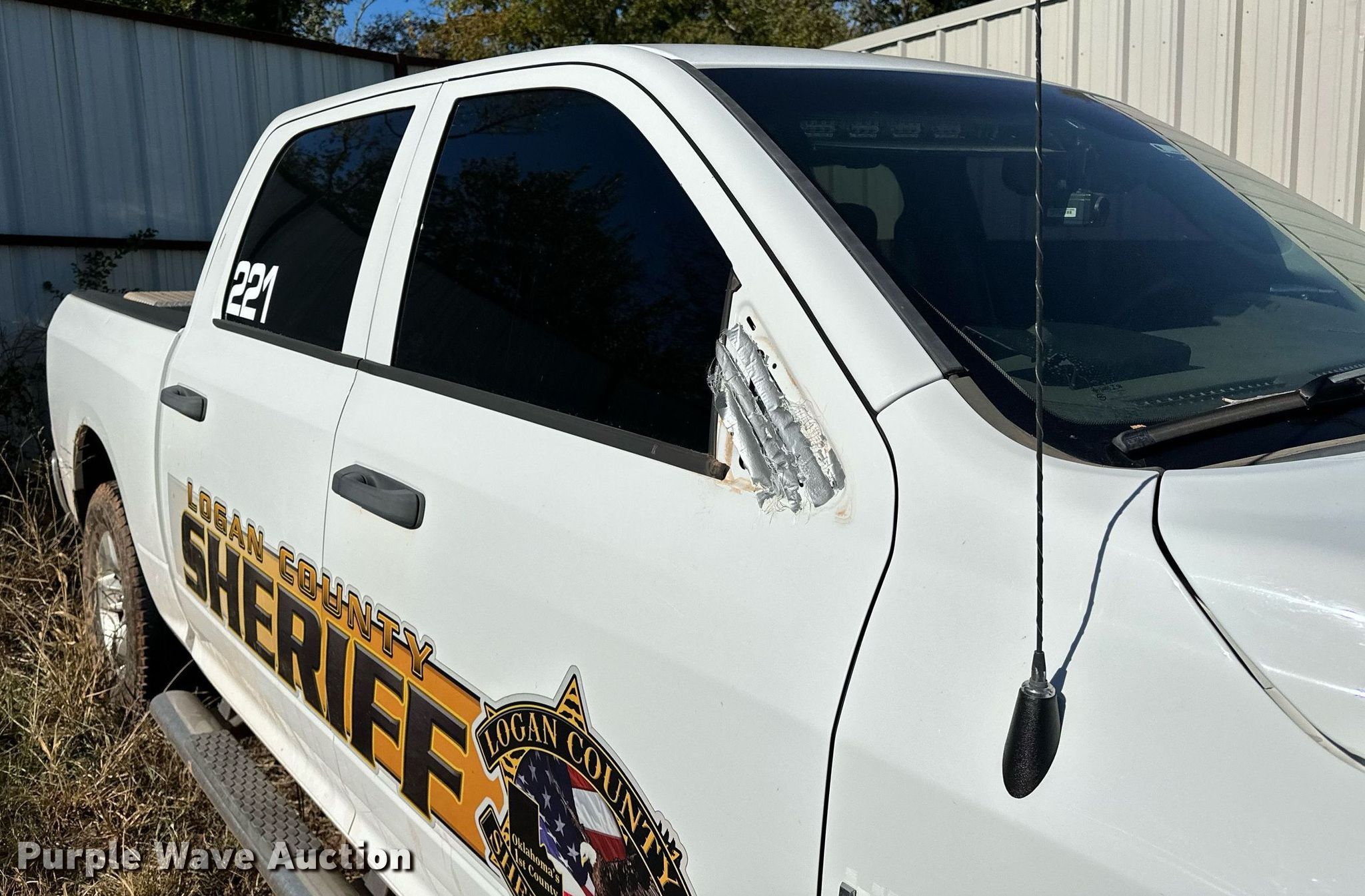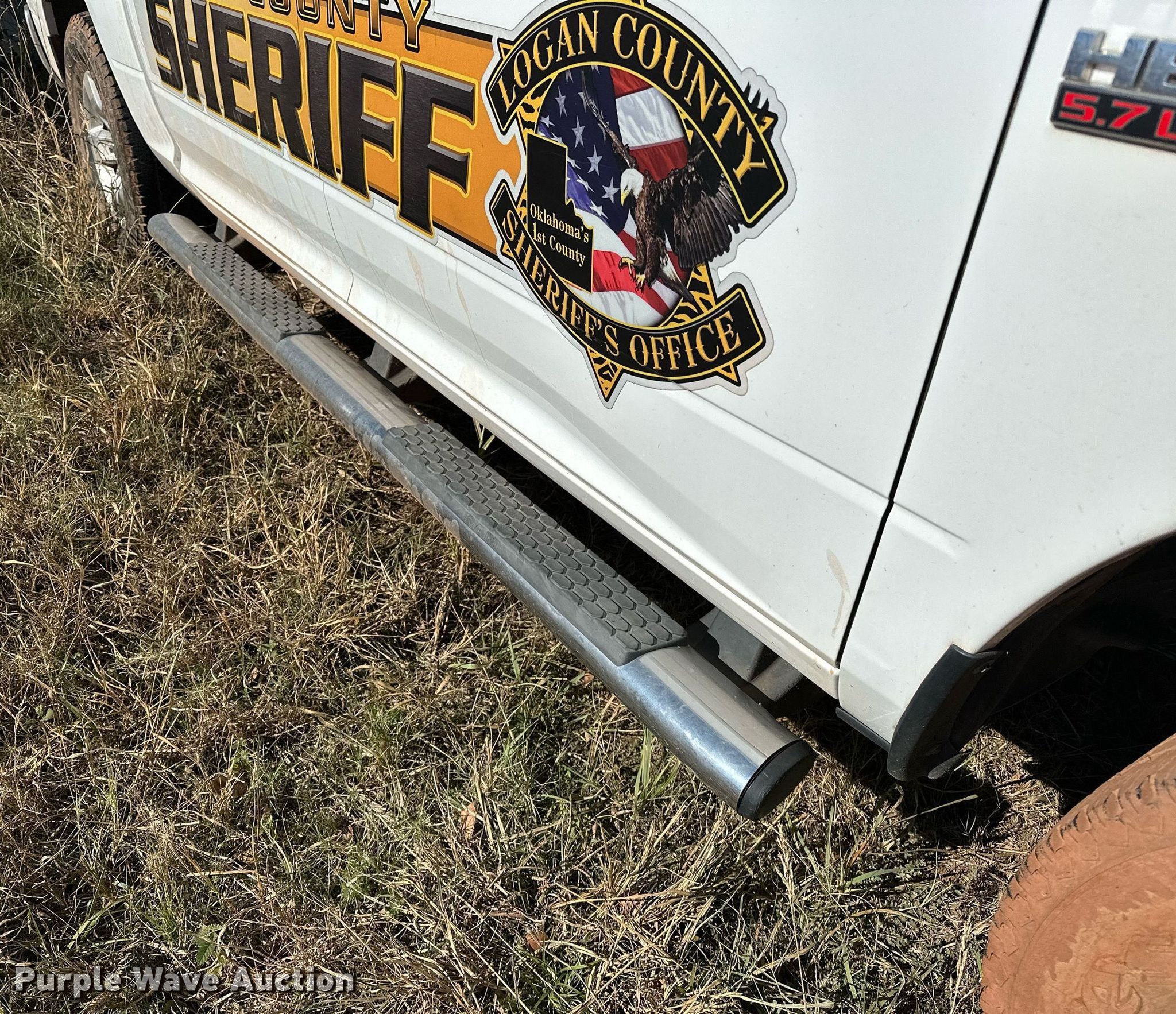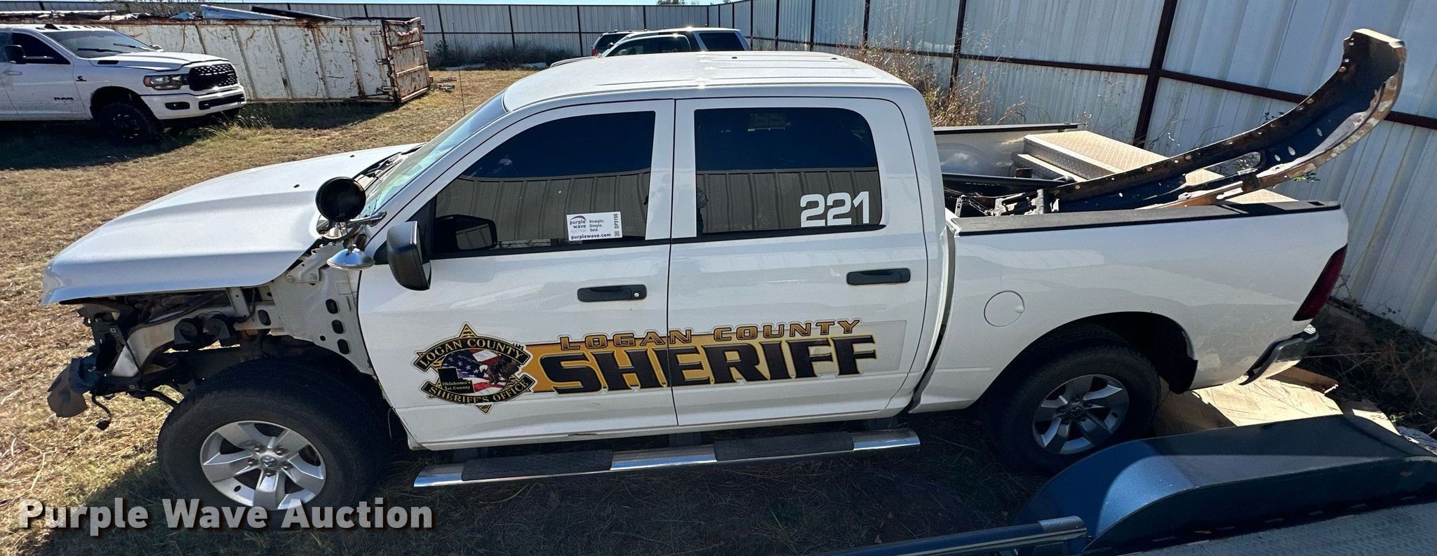 2014 Dodge Ram 1500 Crew Cab pickup truck. Miles: 166,363 on odometer, VIN: 1C6RR7XT5ES453684. Engine Displacement: 5.7L V8 OHV, Cylinders: 8, Fuel type: Gas. Transmission Automatic, Four wheel drive. Interior AC, Heat, Seat: Power driver, Power windows, Power locks, Cruise control. Tires Size: 265/70R17. Notes Some decals will be removed prior to auction, Emergency lights will be disconnected prior to auction, Windshield chipped or cracked, Dead battery, Collision damage, Parts missing, Body damage , Engine issues, ticks , Unknown operating condition. Logan County Sheriff's Office. 216 South Broad Street. Guthrie, OK 73044