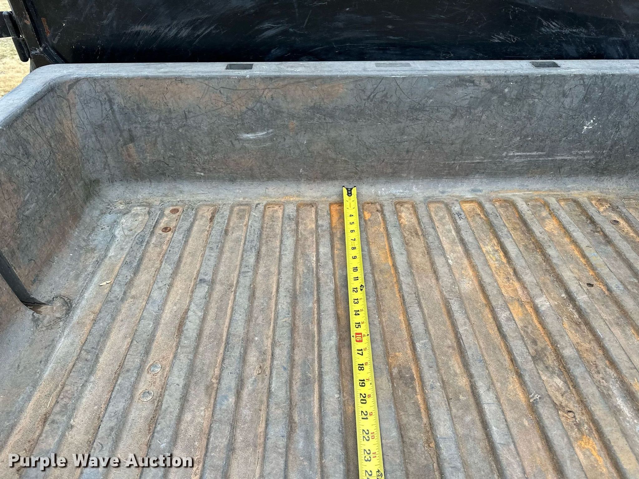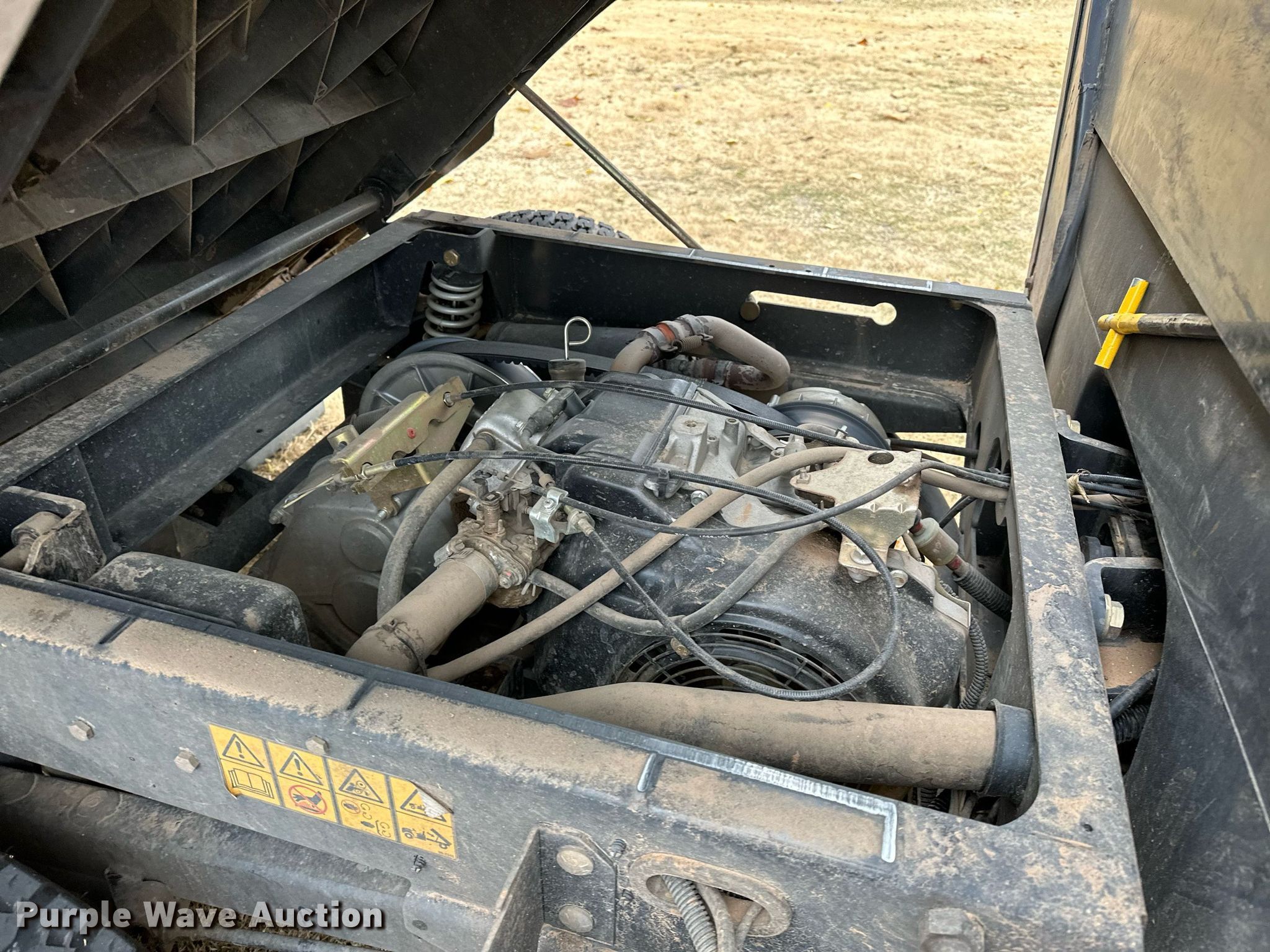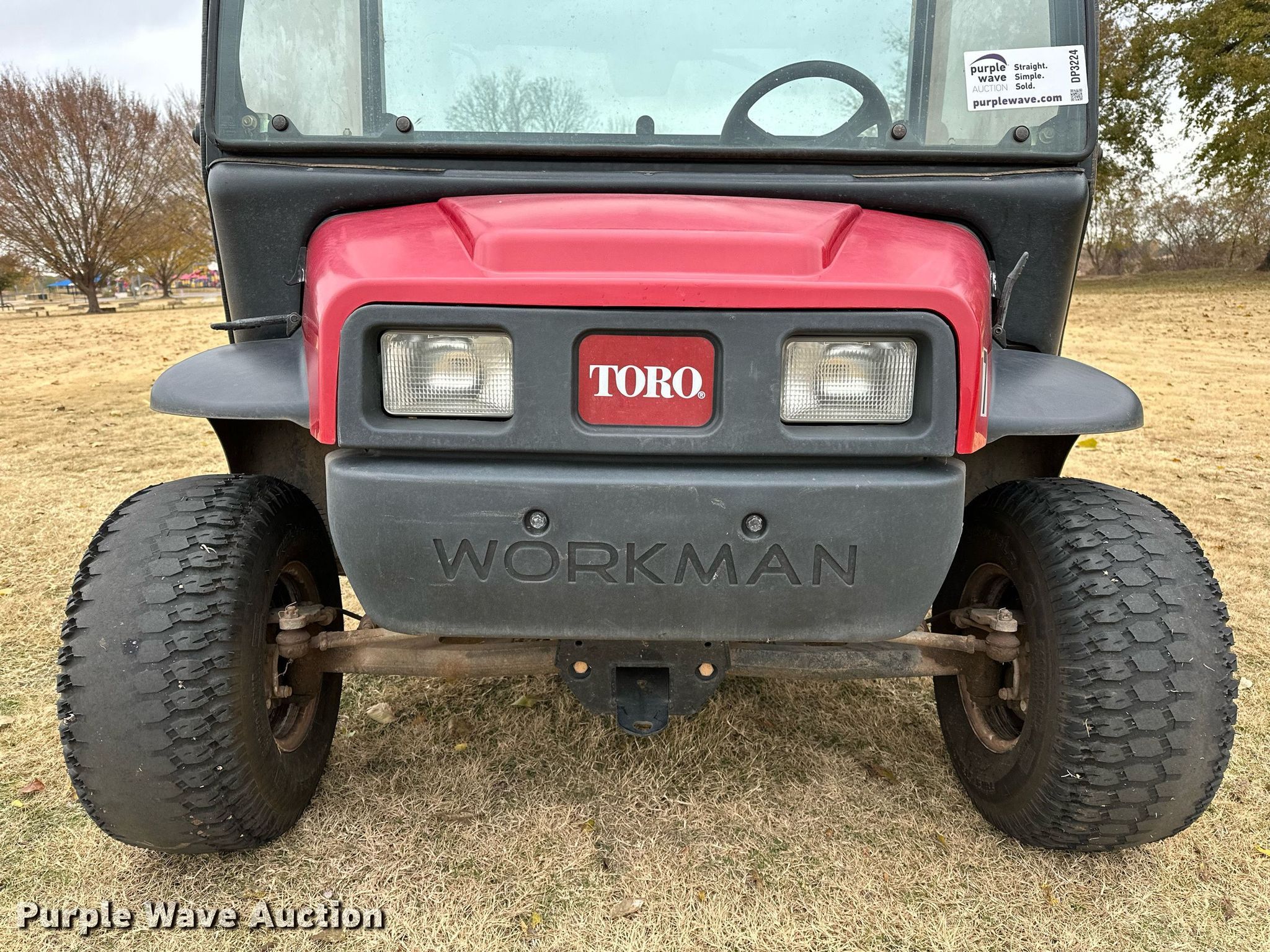 2012 Toro Workman MD utility vehicle. Hours: 1,685 on meter, Serial: 312000529. Engine Cylinders: 1, Fuel type: Gas. Transmission CVT. Operators station Enclosed cab. Features Dump bed 45" L x 50" W, Dump bed type: Manual. Tires Size: 240/60-10. Notes Tire issues, front tires need replaced. Transfer of ownership documentation will be a bill of sale. 8505 East 148th Street South. Bixby, OK 74008