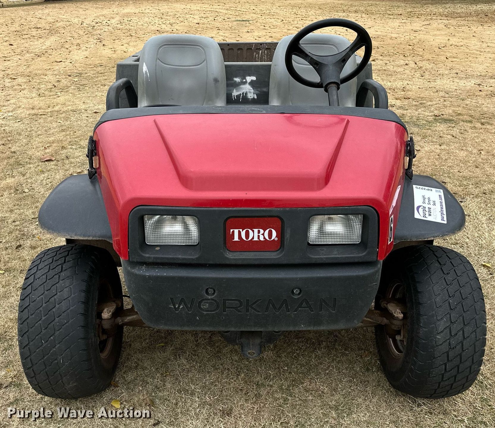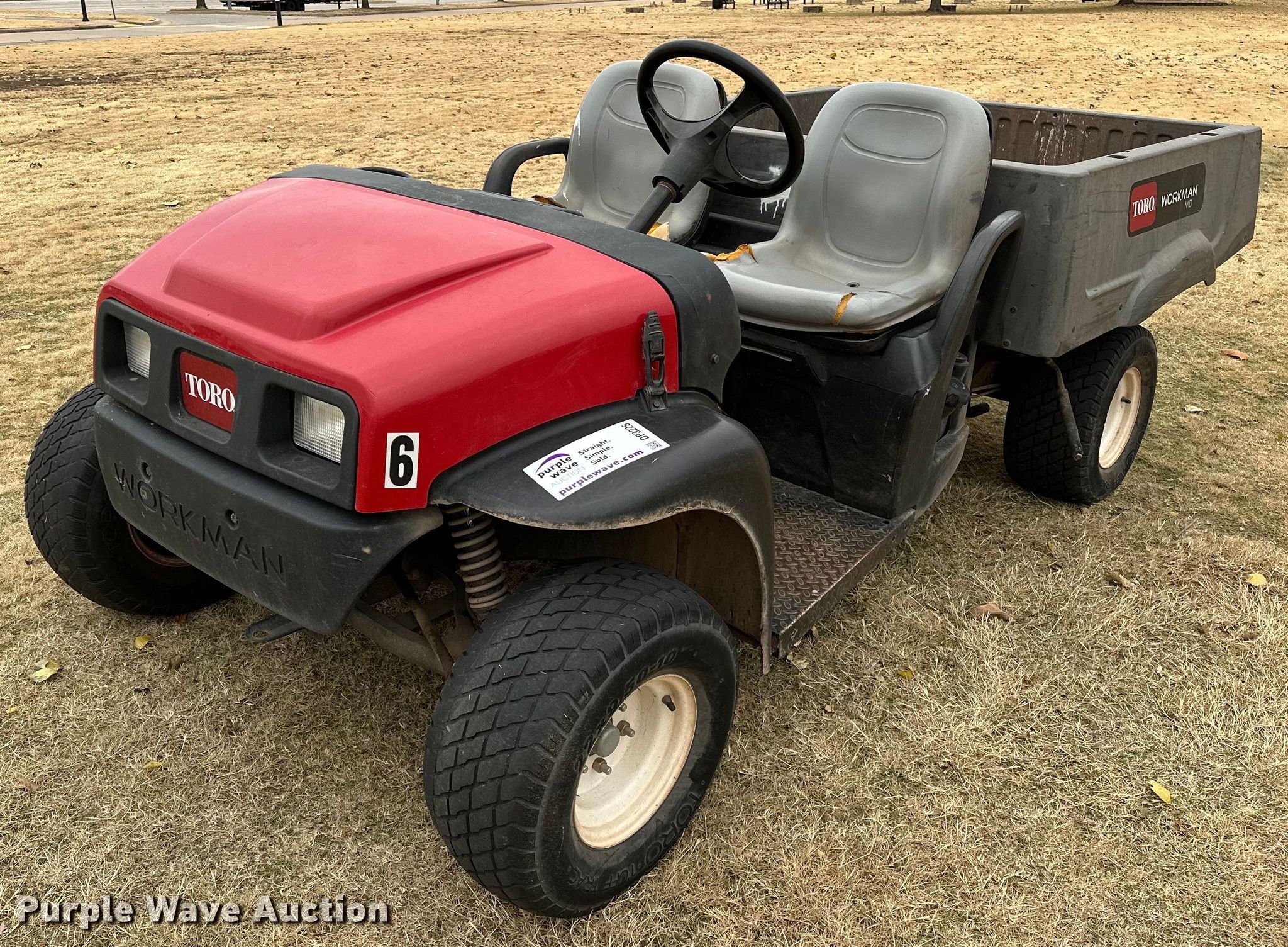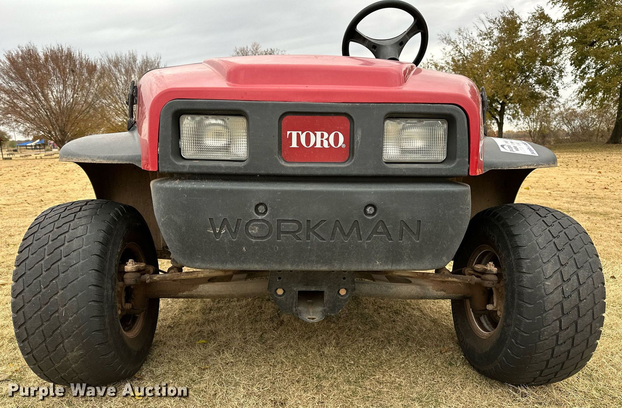 2012 Toro Workman MD utility vehicle. Hours: 1,678 on meter, Serial: 31200547. Engine Cylinders: 1, Fuel type: Gas. Transmission CVT. Features Receiver hitch, Dump bed 45" L x 50" W, Dump bed type: Electric/ Hydraulic. Tires Front: 22x9.50-10. Transfer of ownership documentation will be a bill of sale. 8505 East 148th Street South. Bixby, OK 74008