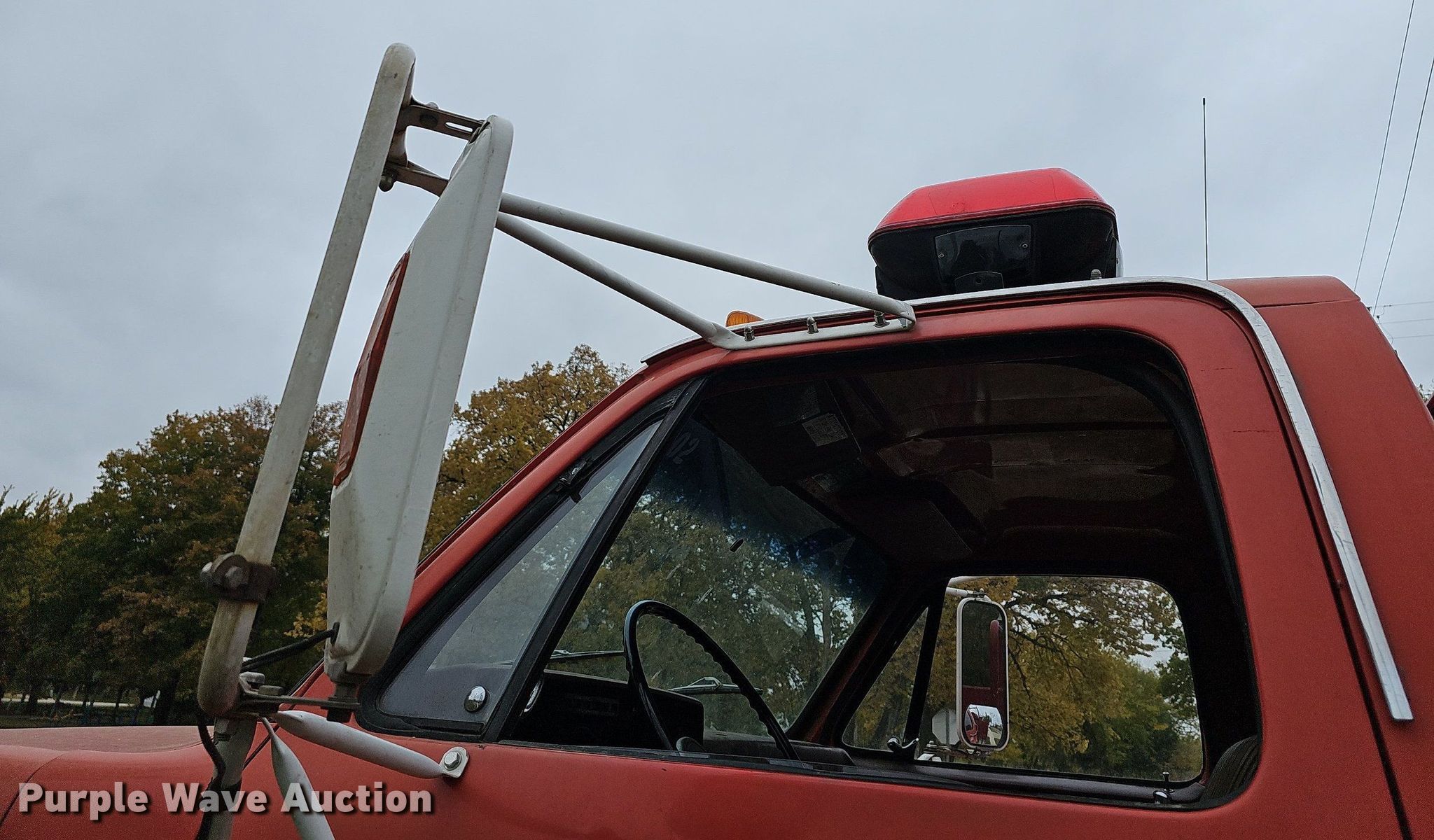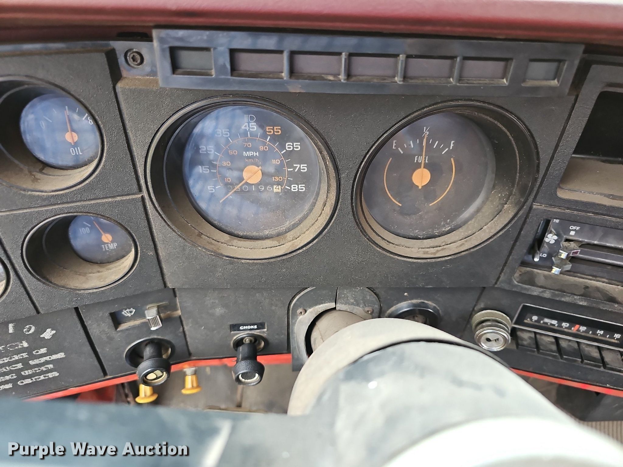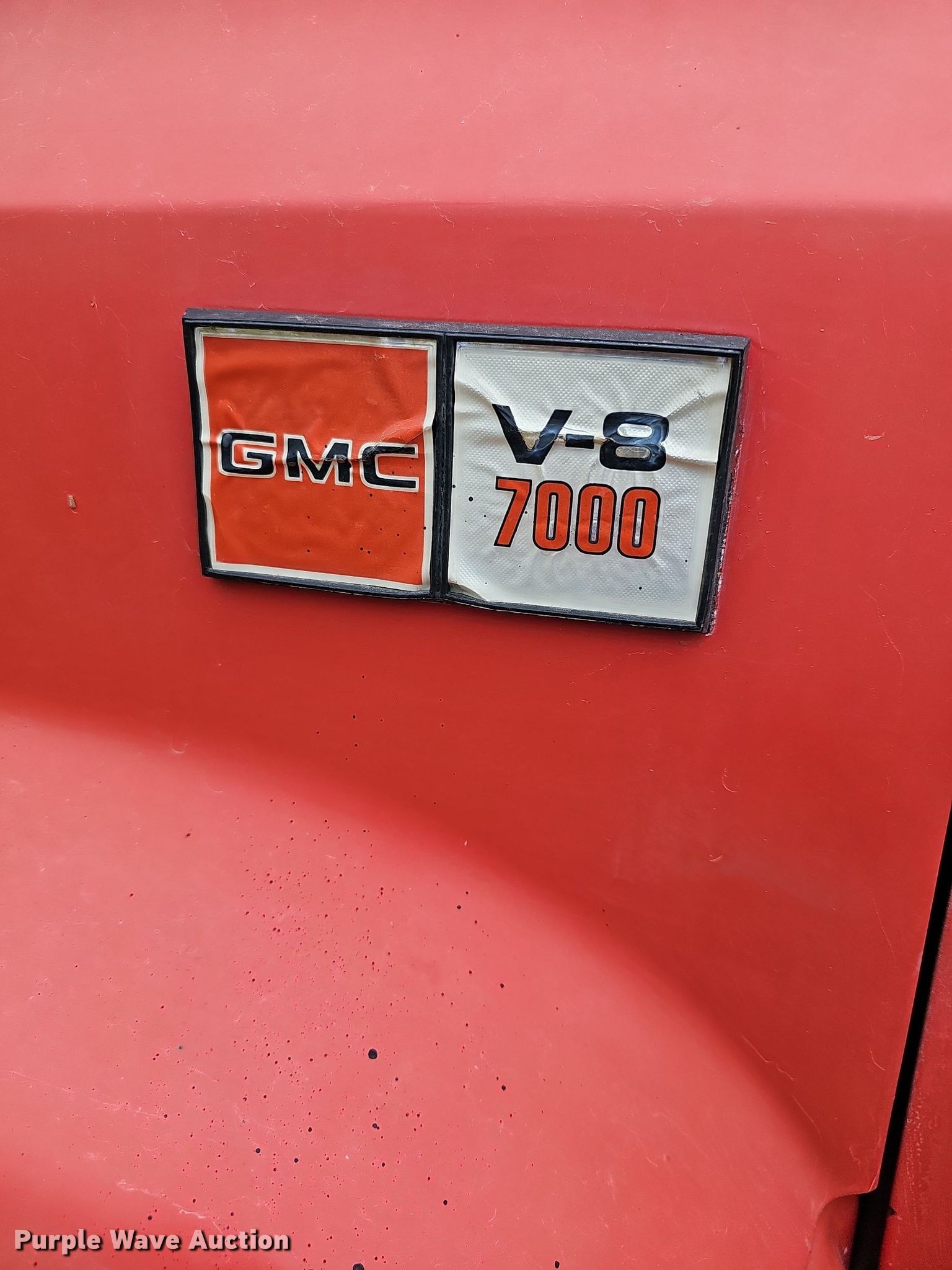 1982 GMC 7000 fire truck. Miles: 80,196 on odometer, VIN: 1GDL7D1B7CV588501, Unit #: 302. Engine GMC, Displacement: 6.0L, Fuel type: Gas. Transmission Manual, Speed: 10. Chassis Axles: Single, Suspension: Spring, Brakes: Hydraulic, GVWR: 27,500 lbs, Wheelbase: 157". Interior Heat. Features Fire truck body Pump, Hose Hose length: 150', Generator Wisconsin VM4D, Fuel type: Gas, Water tank 6'x 8'x 3', Capacity: Approx. 1000 gallons. Tires Rear: 10.00-20, Brand: Goodyear. Notes Brake issues, Possible engine issues. Kansas title. Title distribution may be delayed up to 14 days from verification of funds. Green, KS 67447