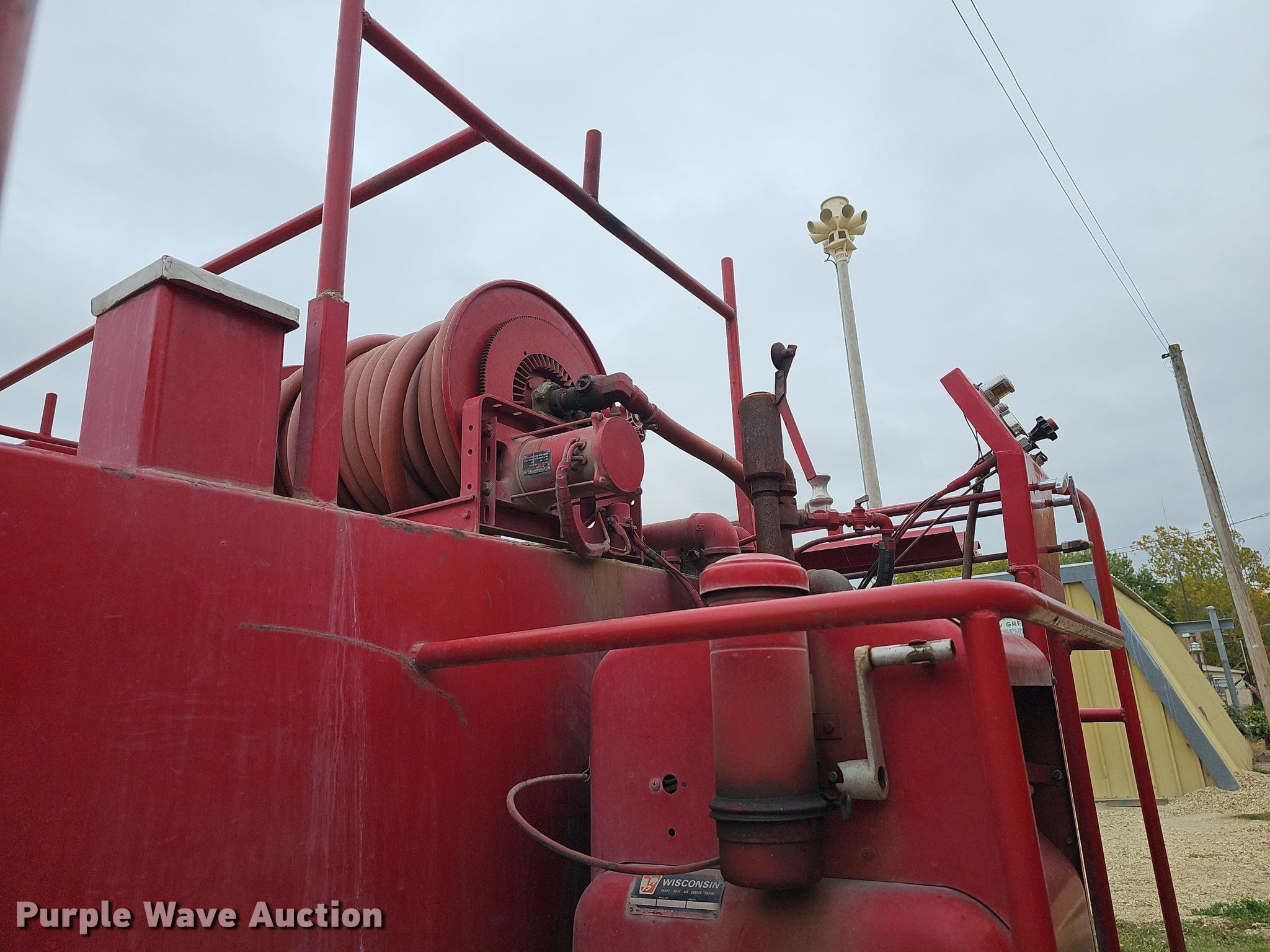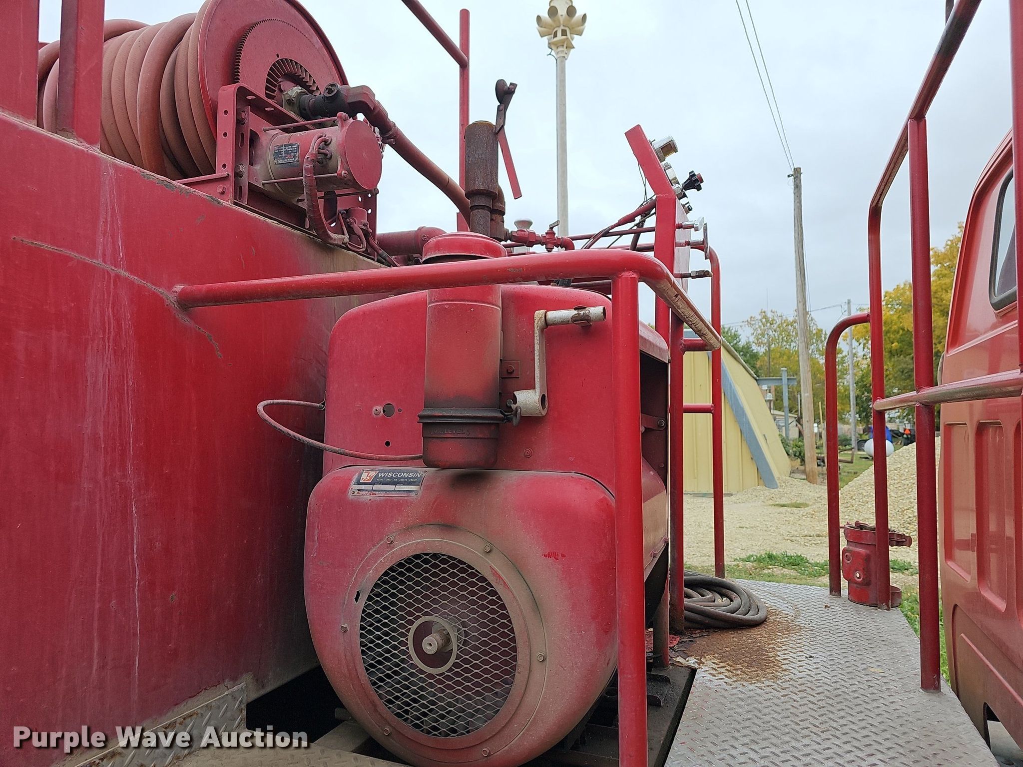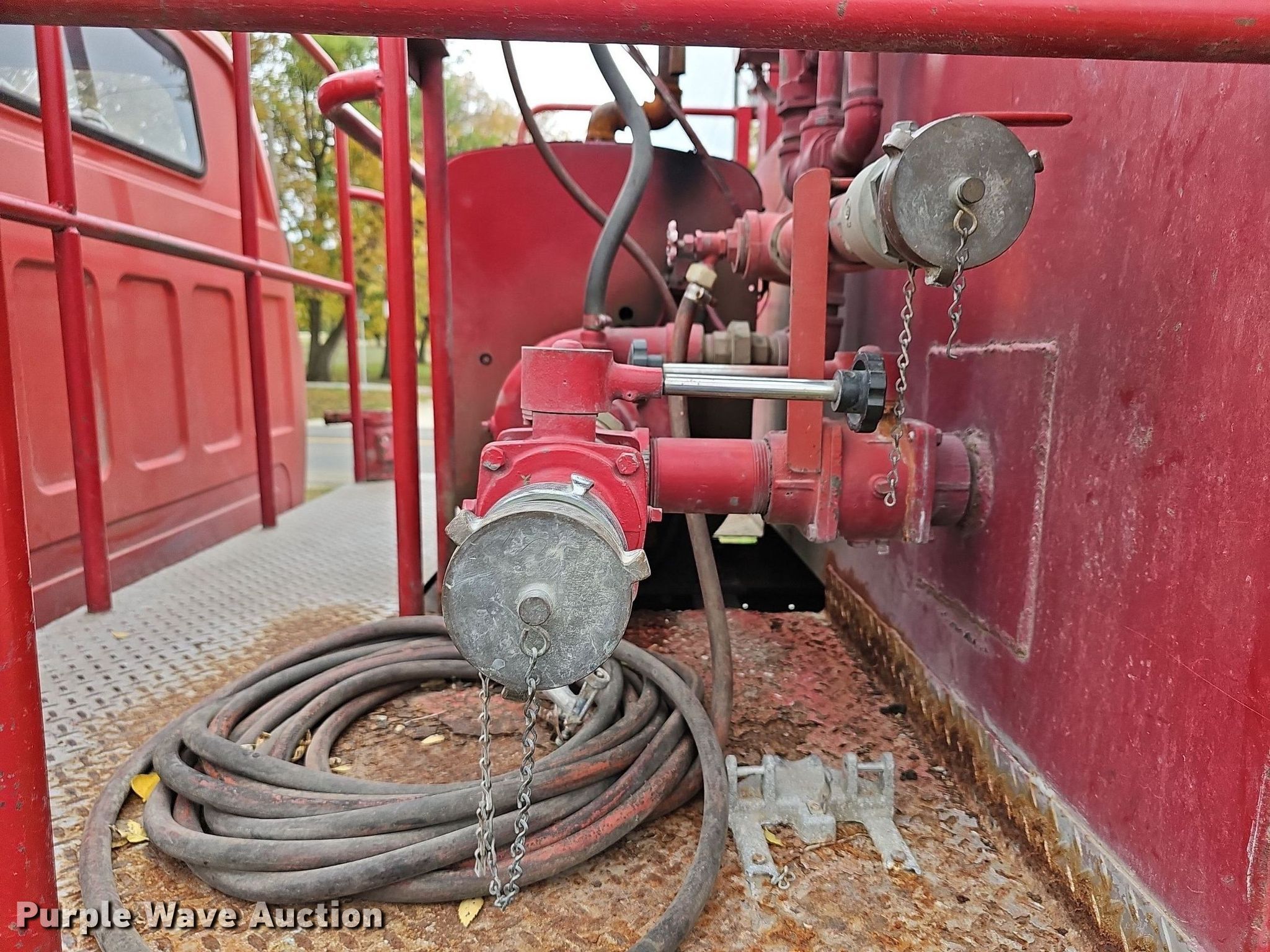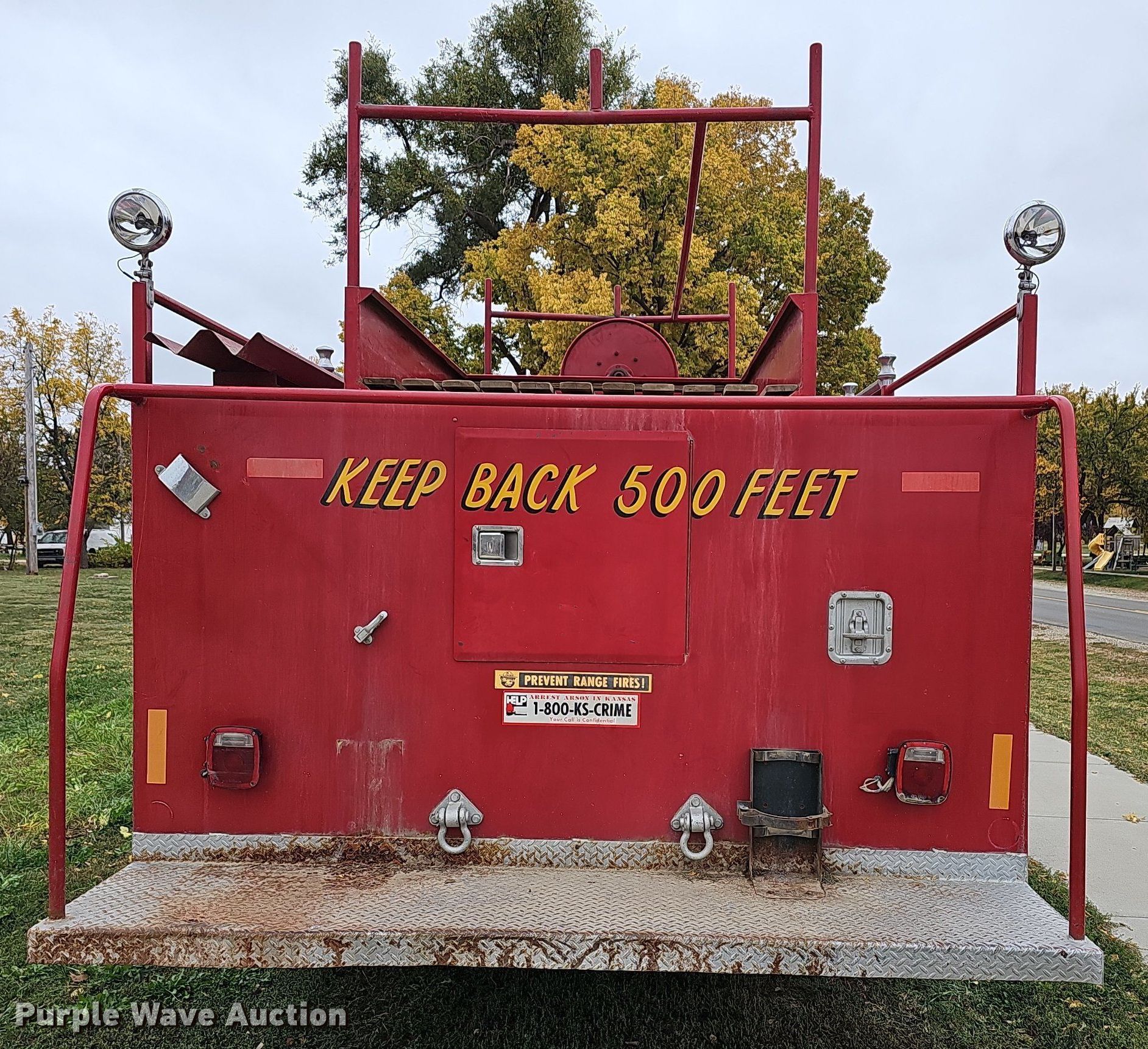 1982 GMC 7000 fire truck. Miles: 80,196 on odometer, VIN: 1GDL7D1B7CV588501, Unit #: 302. Engine GMC, Displacement: 6.0L, Fuel type: Gas. Transmission Manual, Speed: 10. Chassis Axles: Single, Suspension: Spring, Brakes: Hydraulic, GVWR: 27,500 lbs, Wheelbase: 157". Interior Heat. Features Fire truck body Pump, Hose Hose length: 150', Generator Wisconsin VM4D, Fuel type: Gas, Water tank 6'x 8'x 3', Capacity: Approx. 1000 gallons. Tires Rear: 10.00-20, Brand: Goodyear. Notes Brake issues, Possible engine issues. Kansas title. Title distribution may be delayed up to 14 days from verification of funds. Green, KS 67447