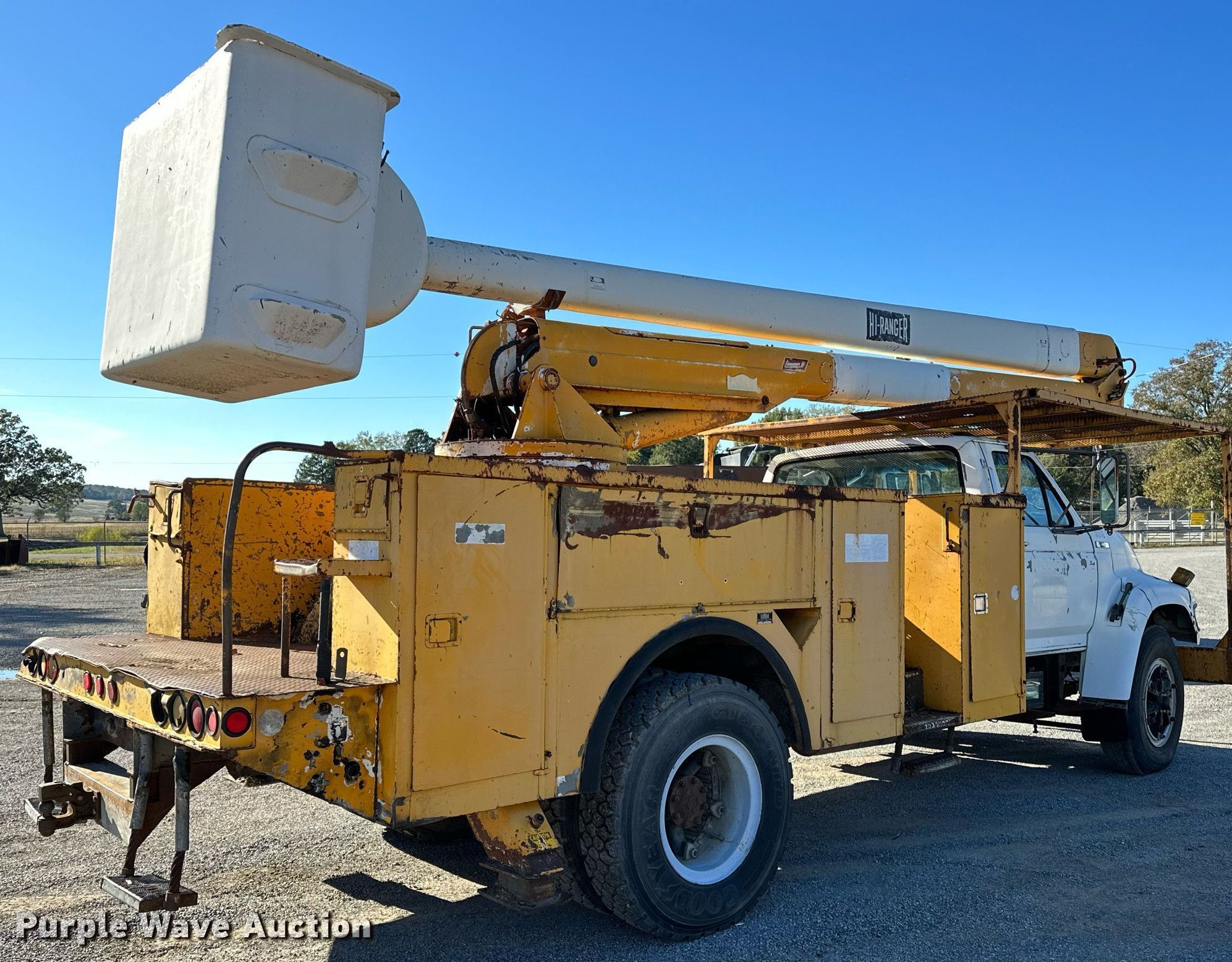 This 1995 Ford F800 bucket truck will sell to the highest bidder regardless of price.