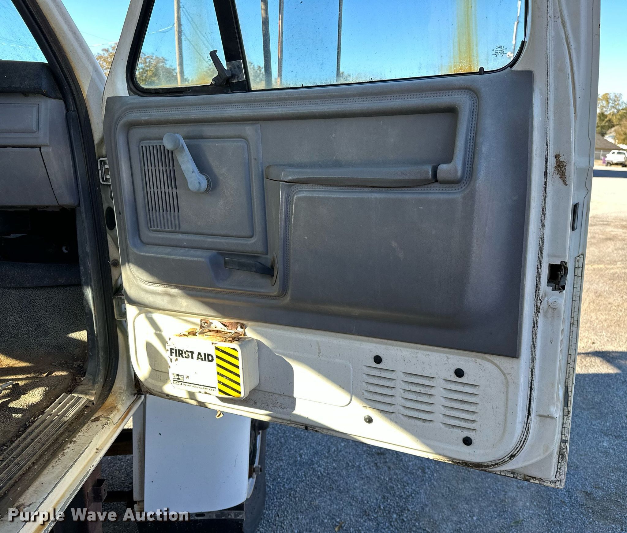 Purple Wave is selling a used Bucket Truck in Oklahoma. This item is a 1995 Ford F800 bucket truck with the following: Miles: 1,059,624 on odometer, Hours: 21,611 on meter, VIN: 1FDPF80C3SVA38894