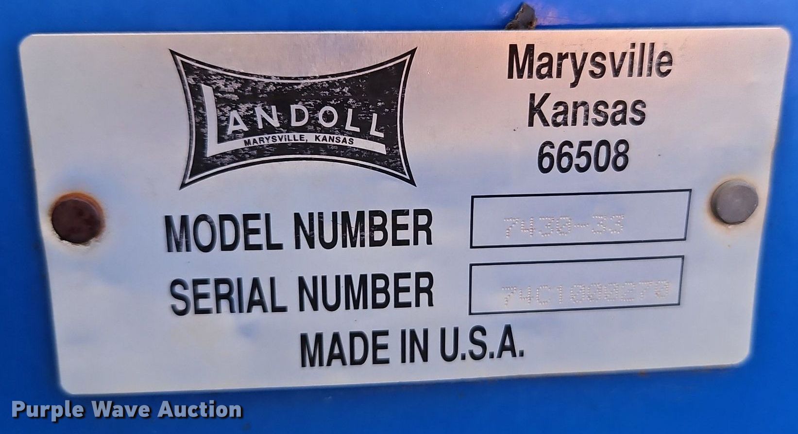Purple Wave is selling a used Disk in Kansas. This item is a Landoll 7430-33 double off-set disk with the following: Overall width: 33', Serial: 74C1000270