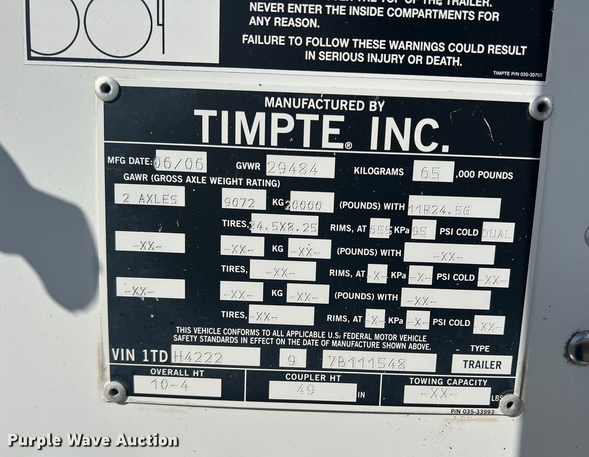 Purple Wave is selling a used Grain or Commodity Trailer in Texas. This item is a 2007 Timpte Super Hopper grain trailer with the following: VIN: 1TDH422297B111548, Unit #: 1001