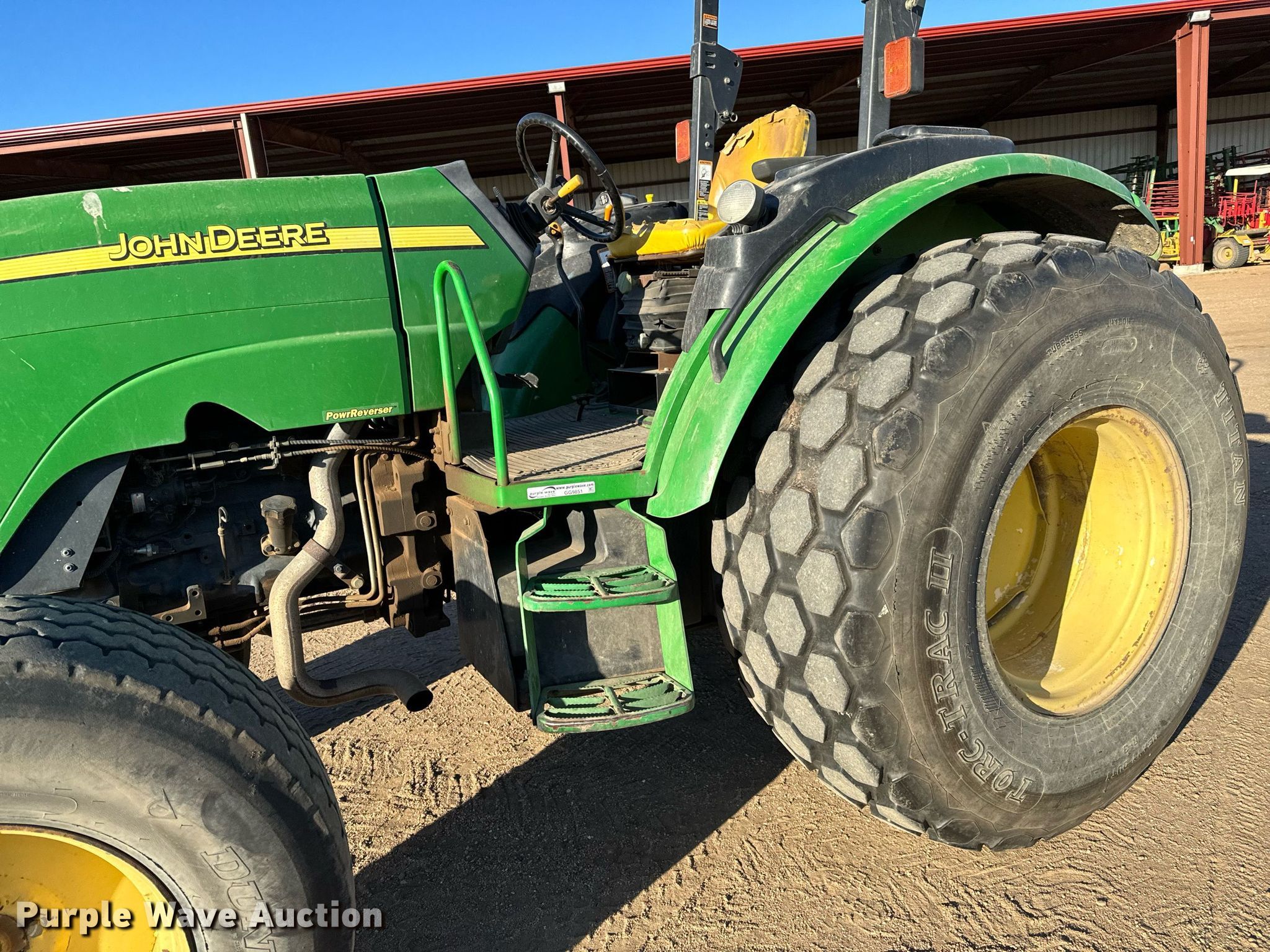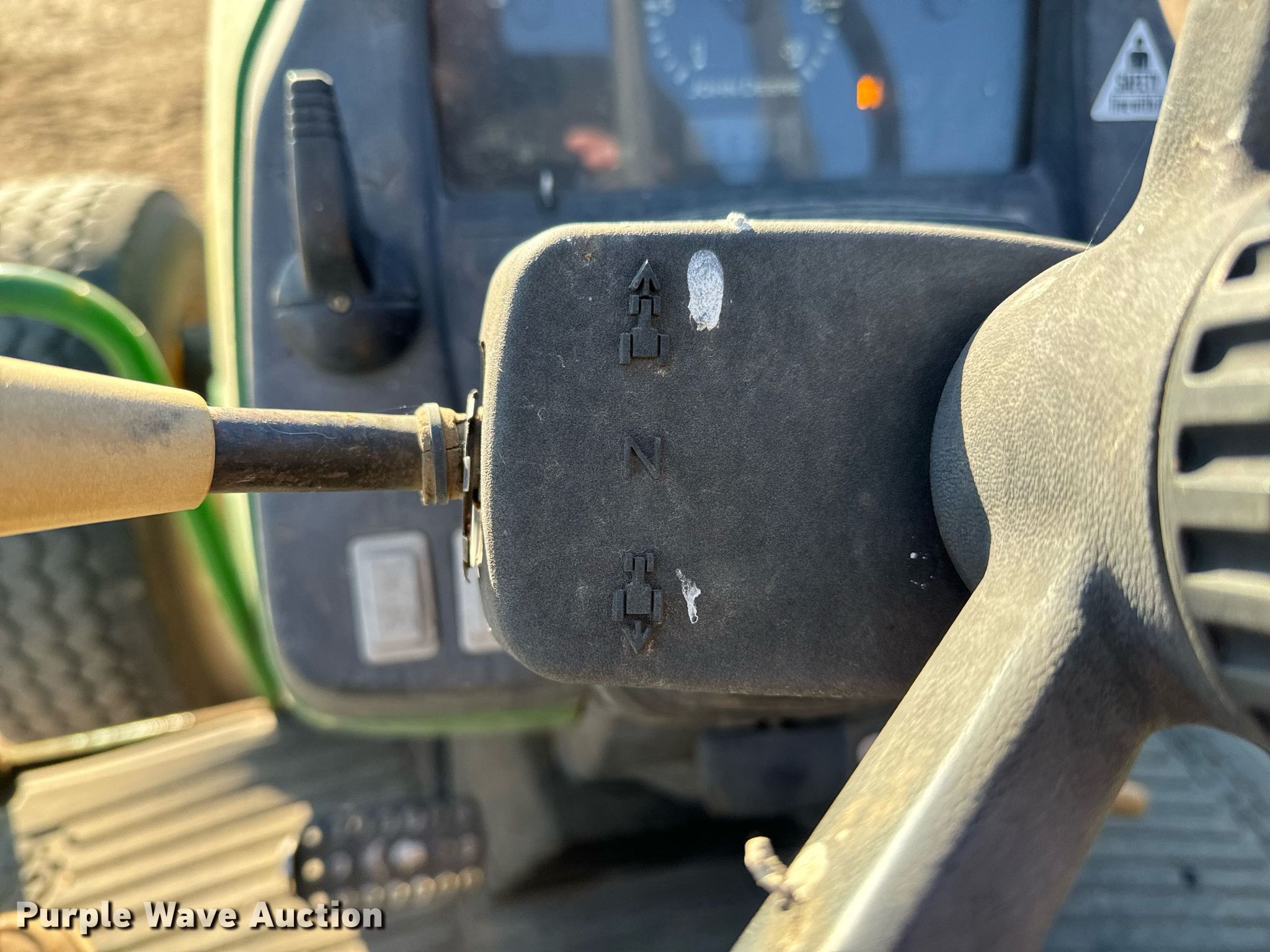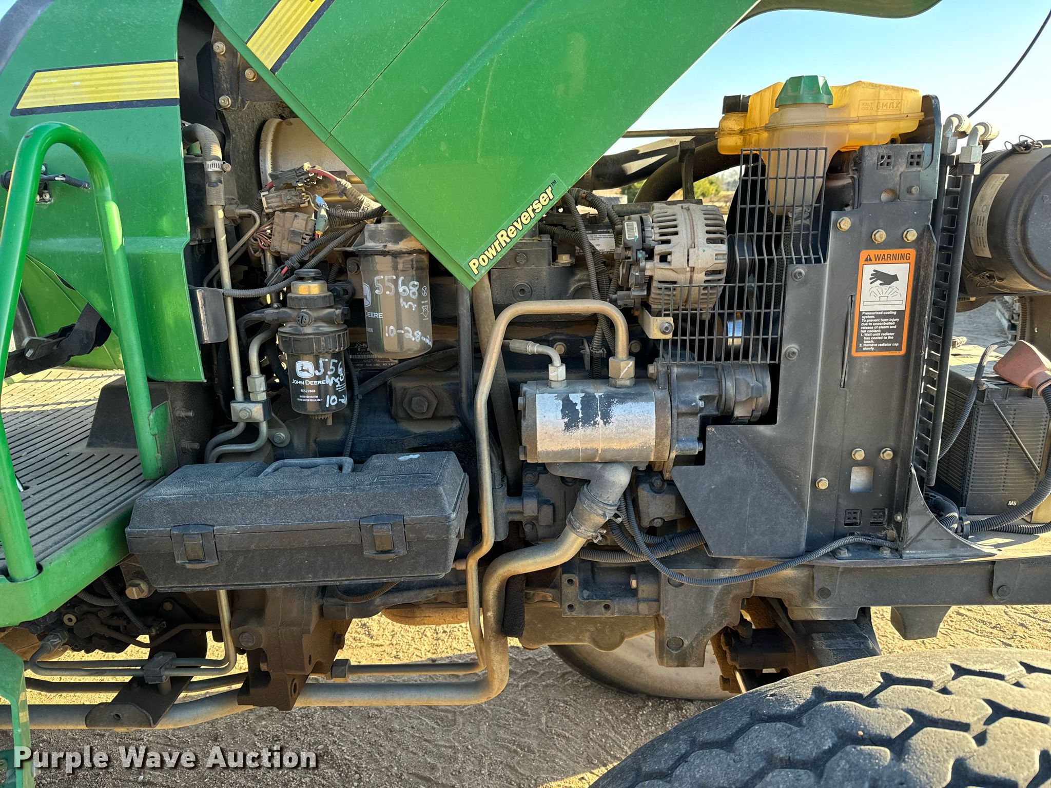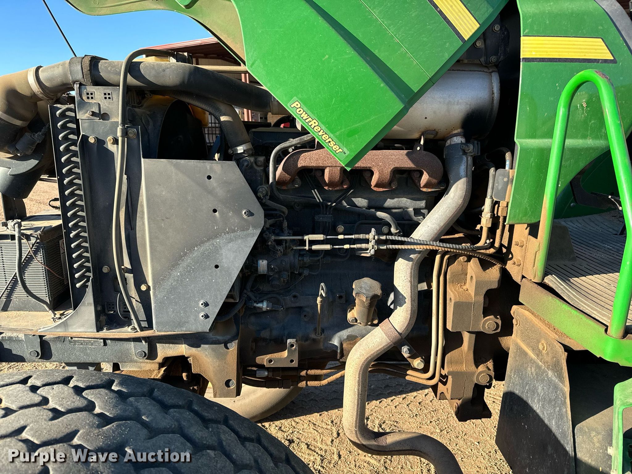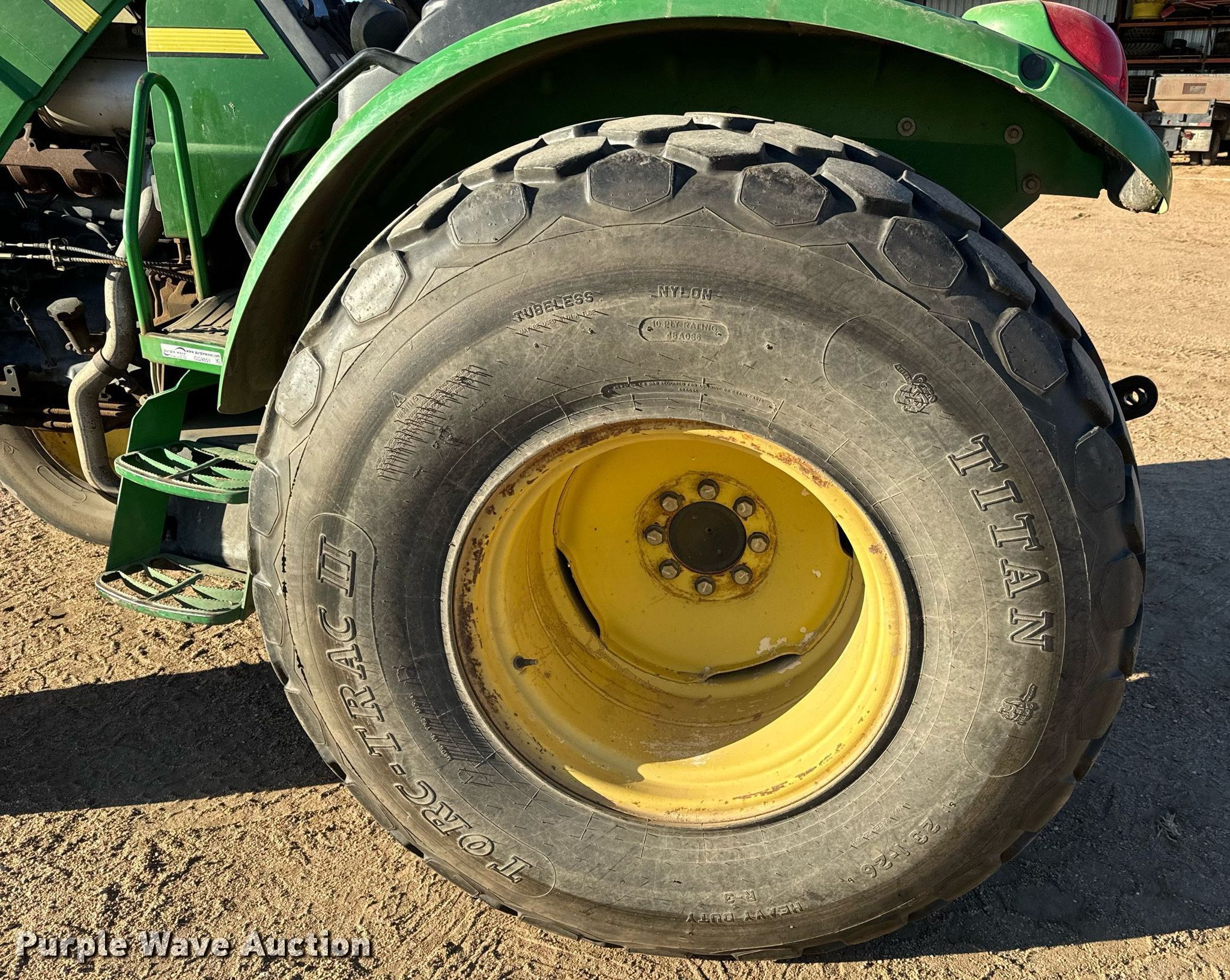 John Deere 5525 tractor. Hours: 5,632 on meter, Serial: LV5525H258394. Engine John Deere 4045TLV54, Displacement: 4.5L, Cylinders: 4, Fuel type: Diesel. Transmission Synchro, 24F - 24R, Left-hand reverser, Differential lock. Features PTO: 540, Three point Top link, Hydraulic remote sets Rear: 2. Tires Front: 425/65R22.5, Rear: 23.1-26. Notes Three point issues, leaks. Sod Shop. Sedgwick, KS 67135