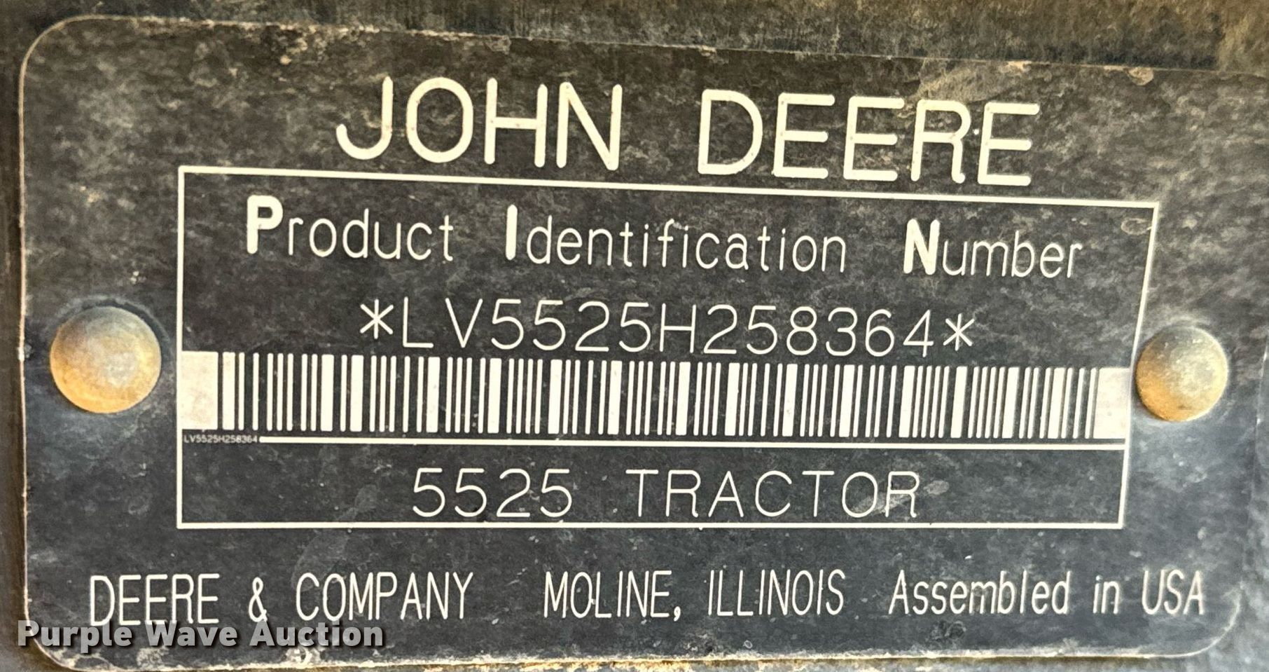 Purple Wave is selling a used Tractor in Kansas. This item is a John Deere 5525 tractor with the following: Hours: 5,632 on meter, Serial: LV5525H258394