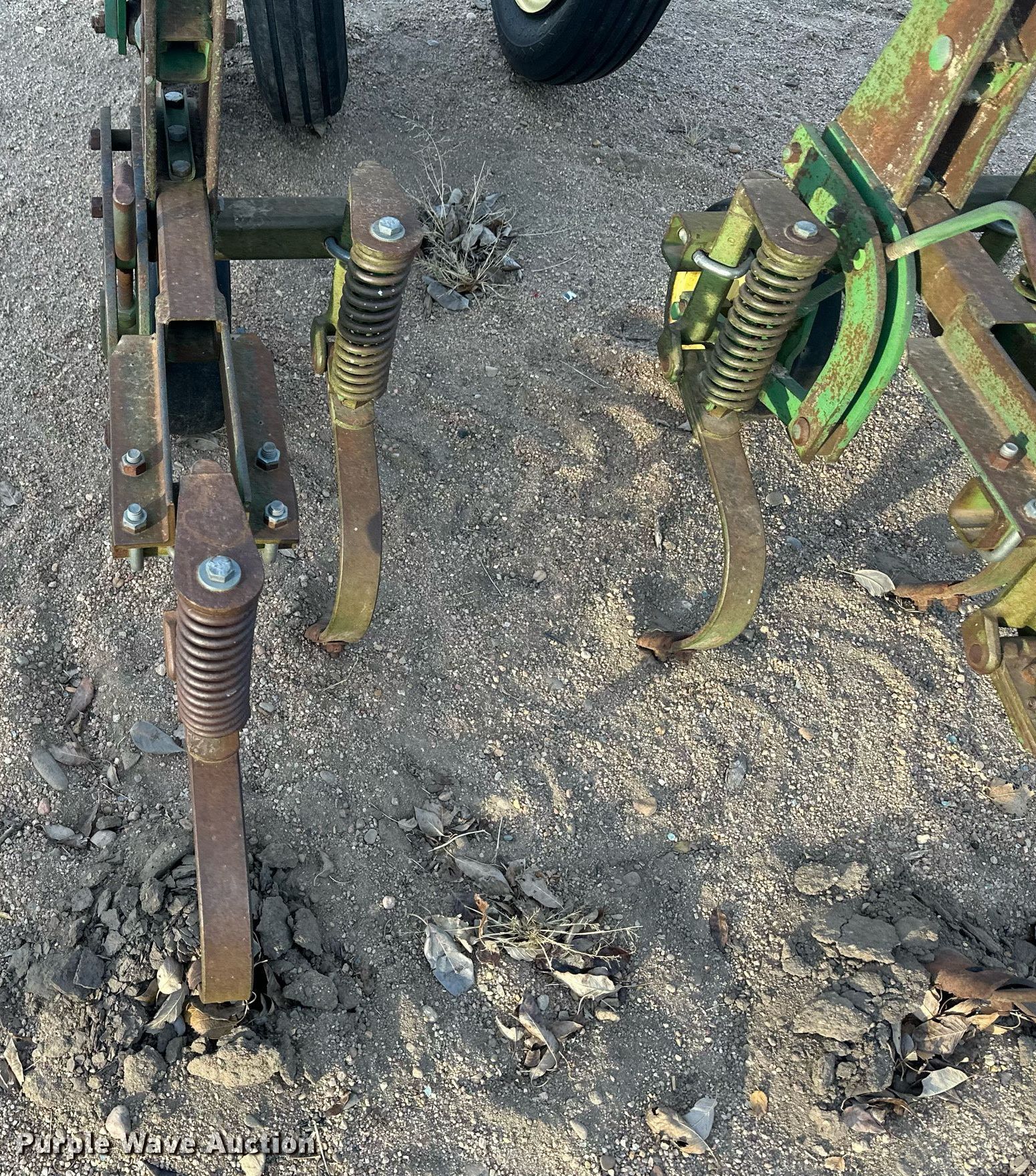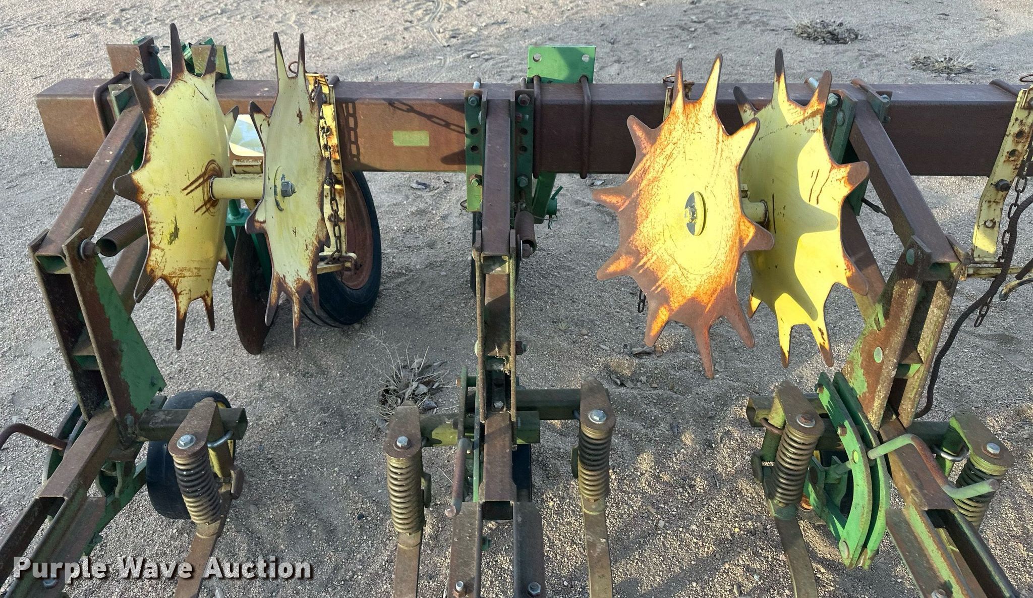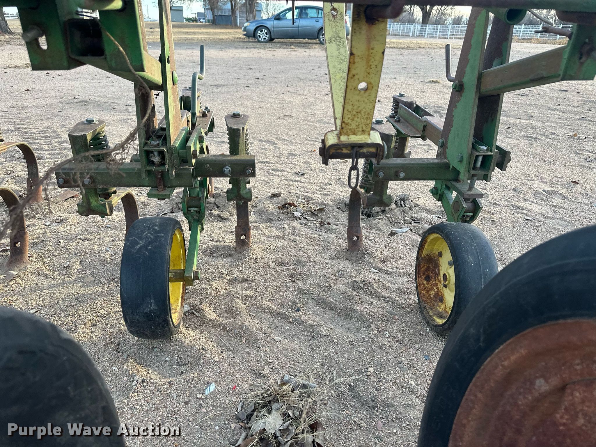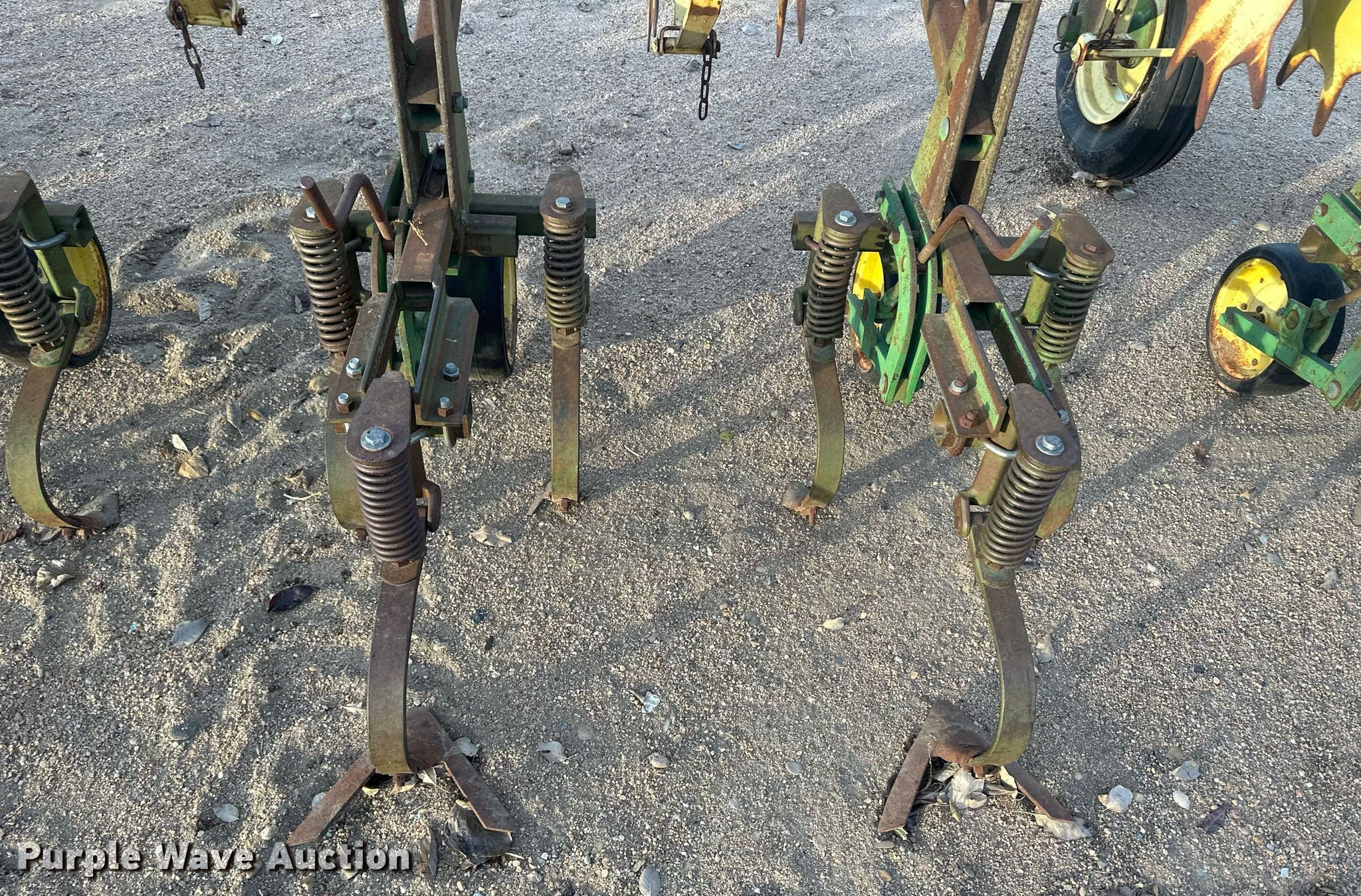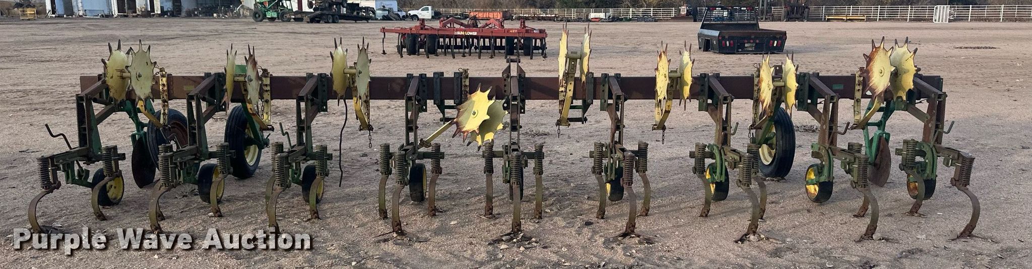 John Deere 825 row crop cultivator. Overall width: 20', Serial: N00825X007500. Features Number of rows: 8, Row spacing: 30", Shanks, Gauge wheels, Hitch: Three point. Tires Gauge wheels Size: 5.90-15. 1137 90th Ave. Kinsley, KS 67547