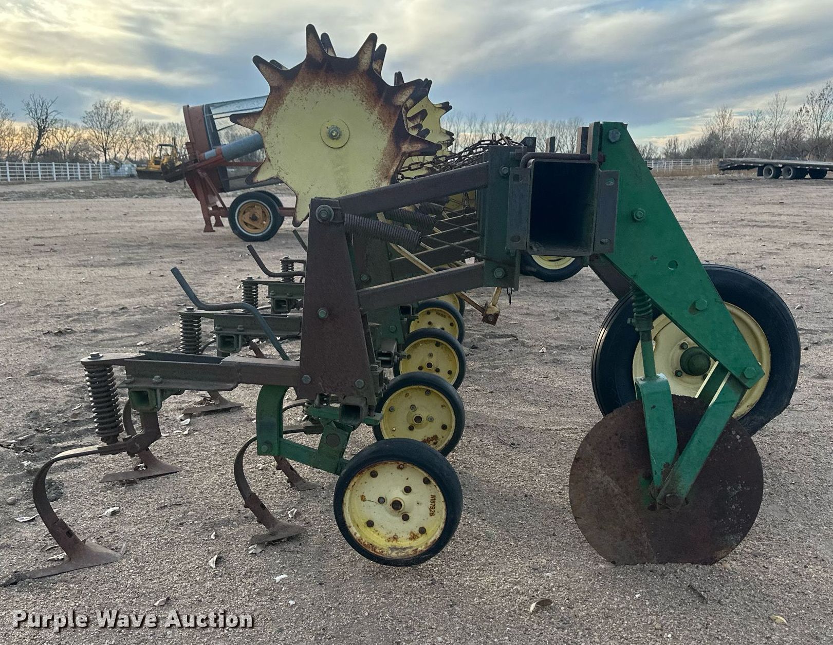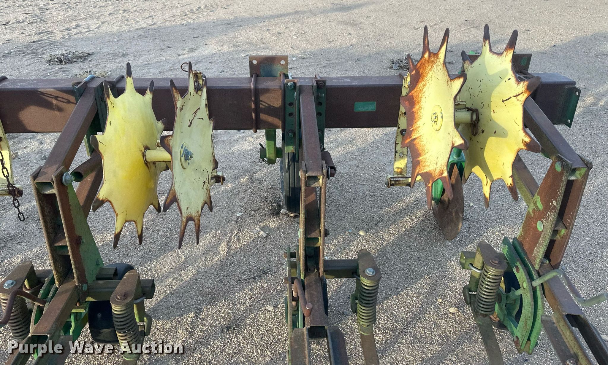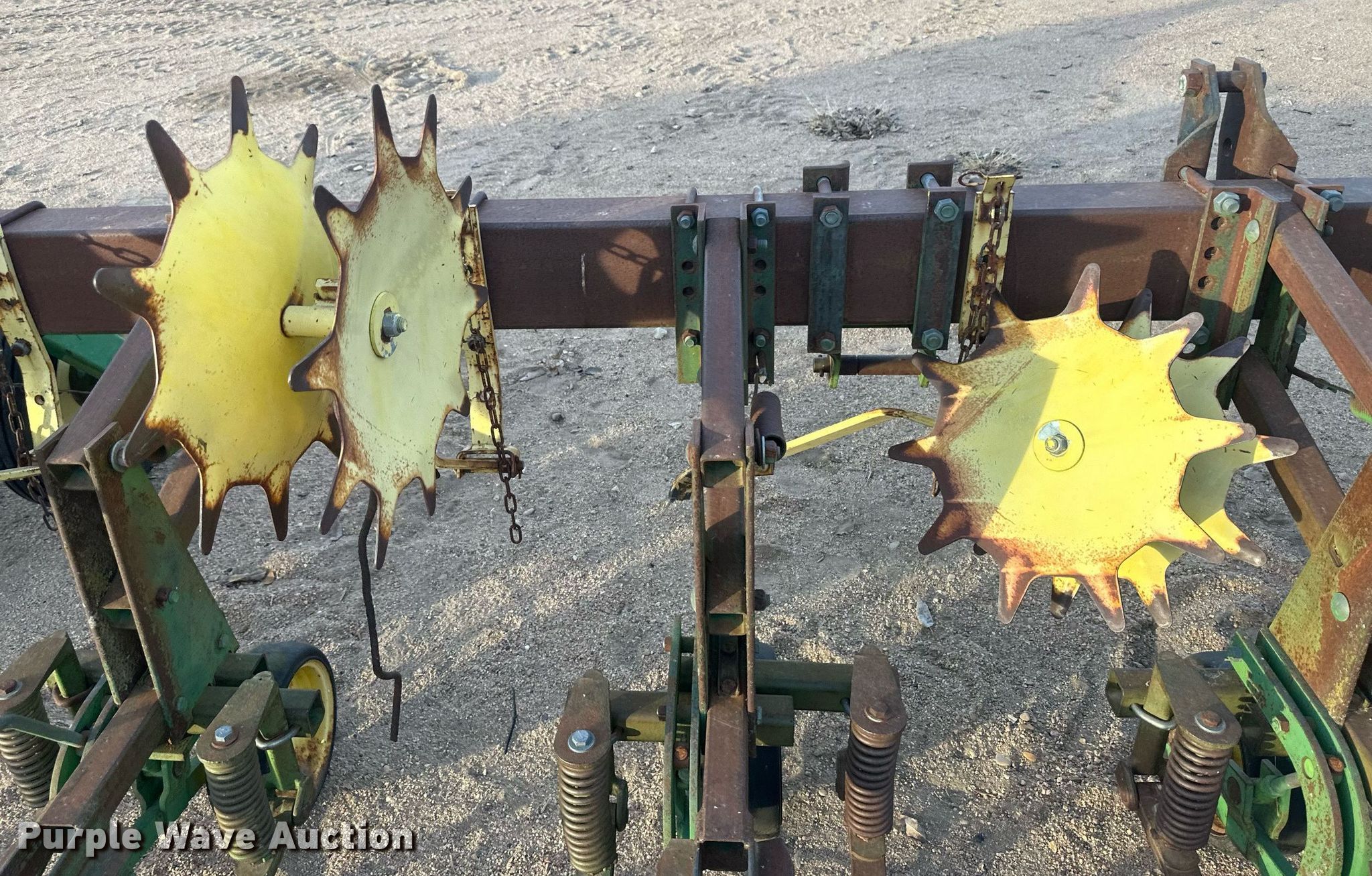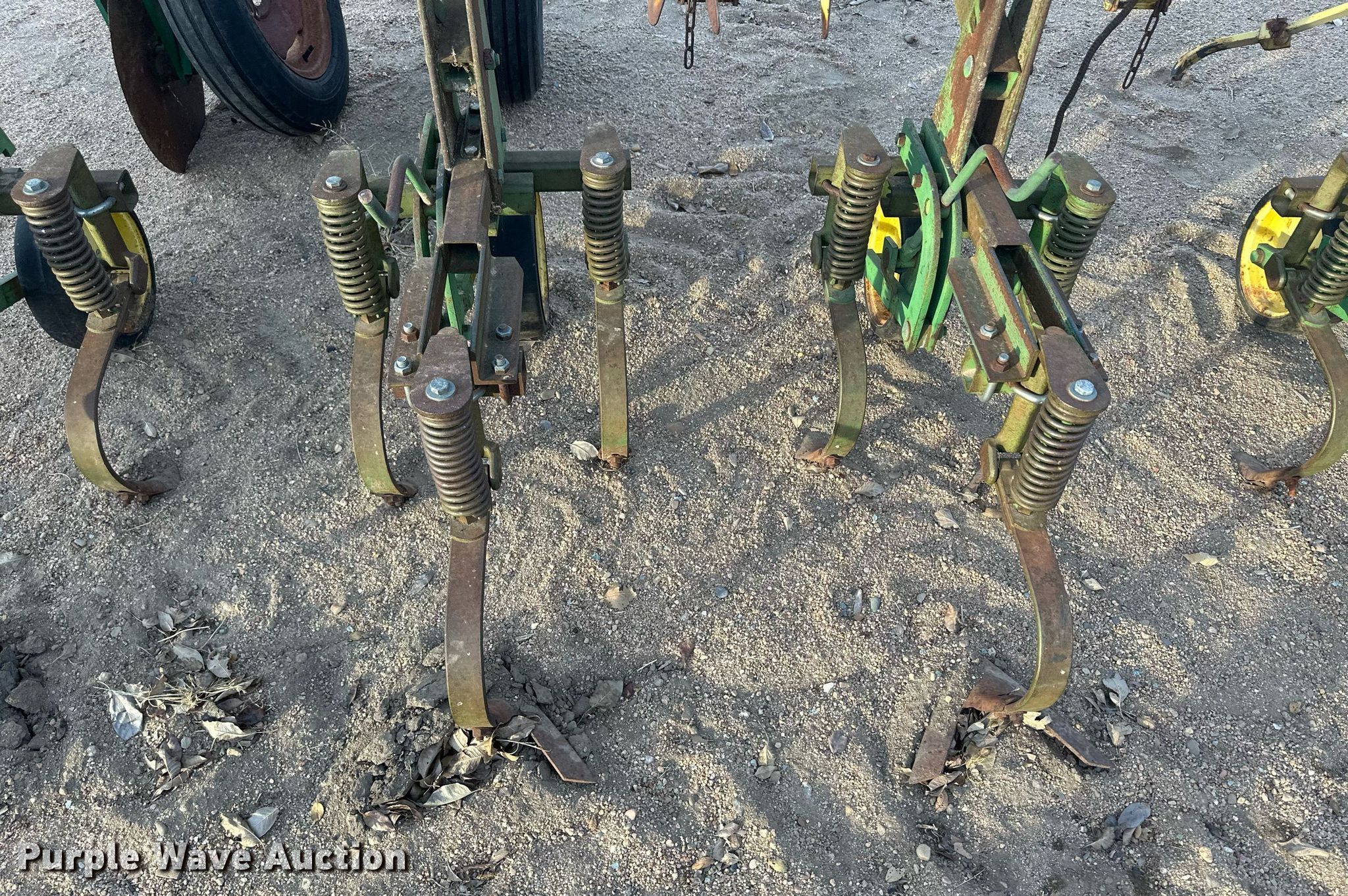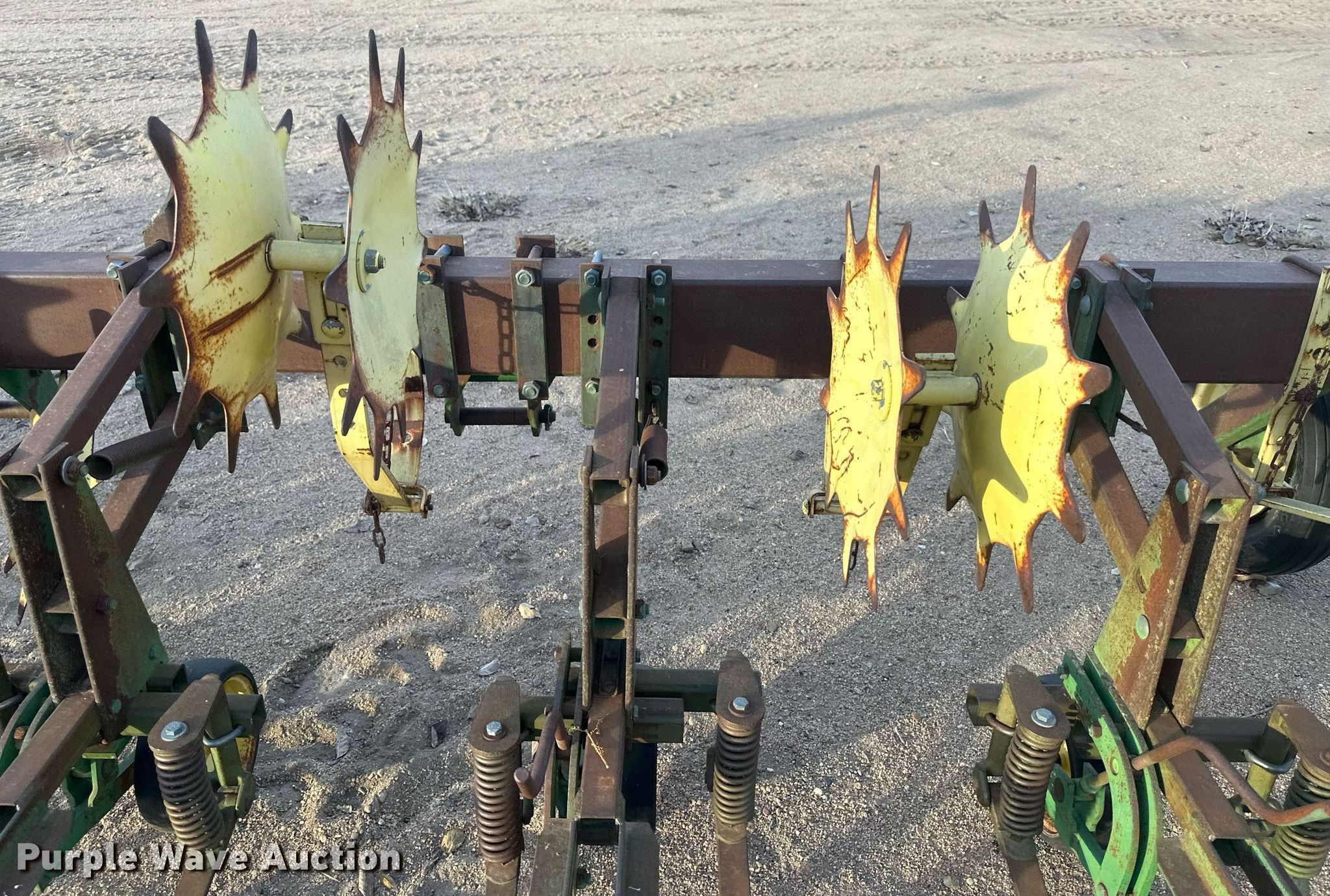 John Deere 825 row crop cultivator. Overall width: 20', Serial: N00825X007500. Features Number of rows: 8, Row spacing: 30", Shanks, Gauge wheels, Hitch: Three point. Tires Gauge wheels Size: 5.90-15. 1137 90th Ave. Kinsley, KS 67547
