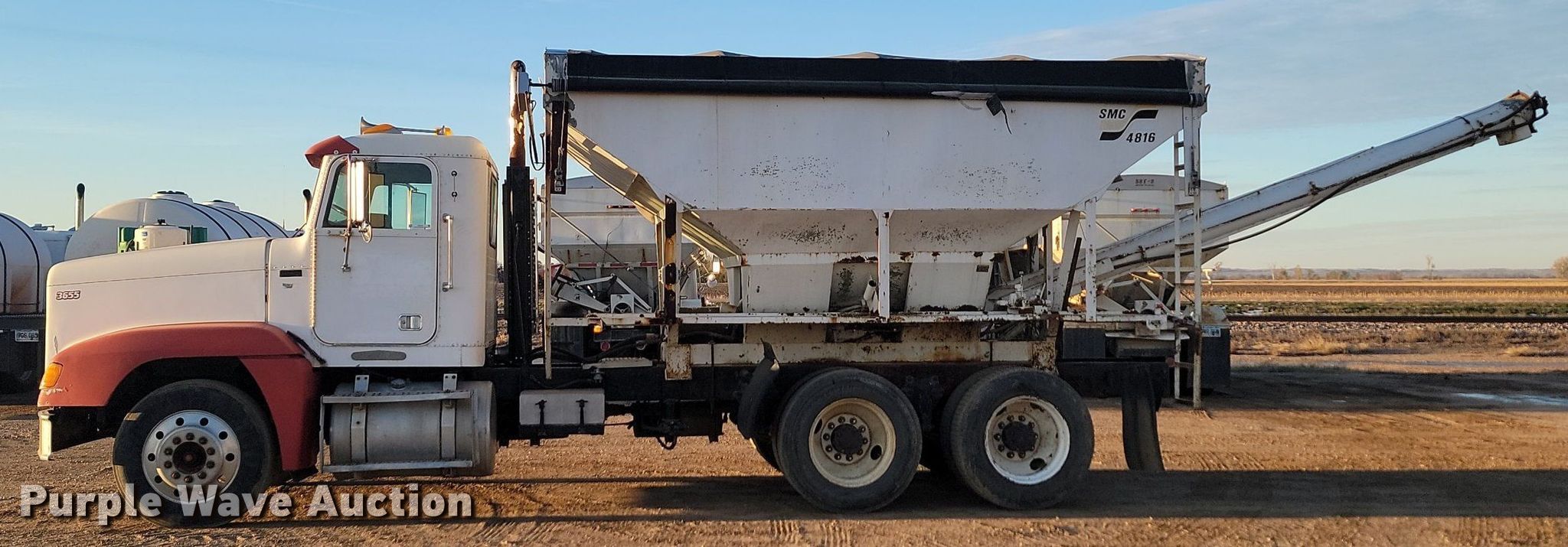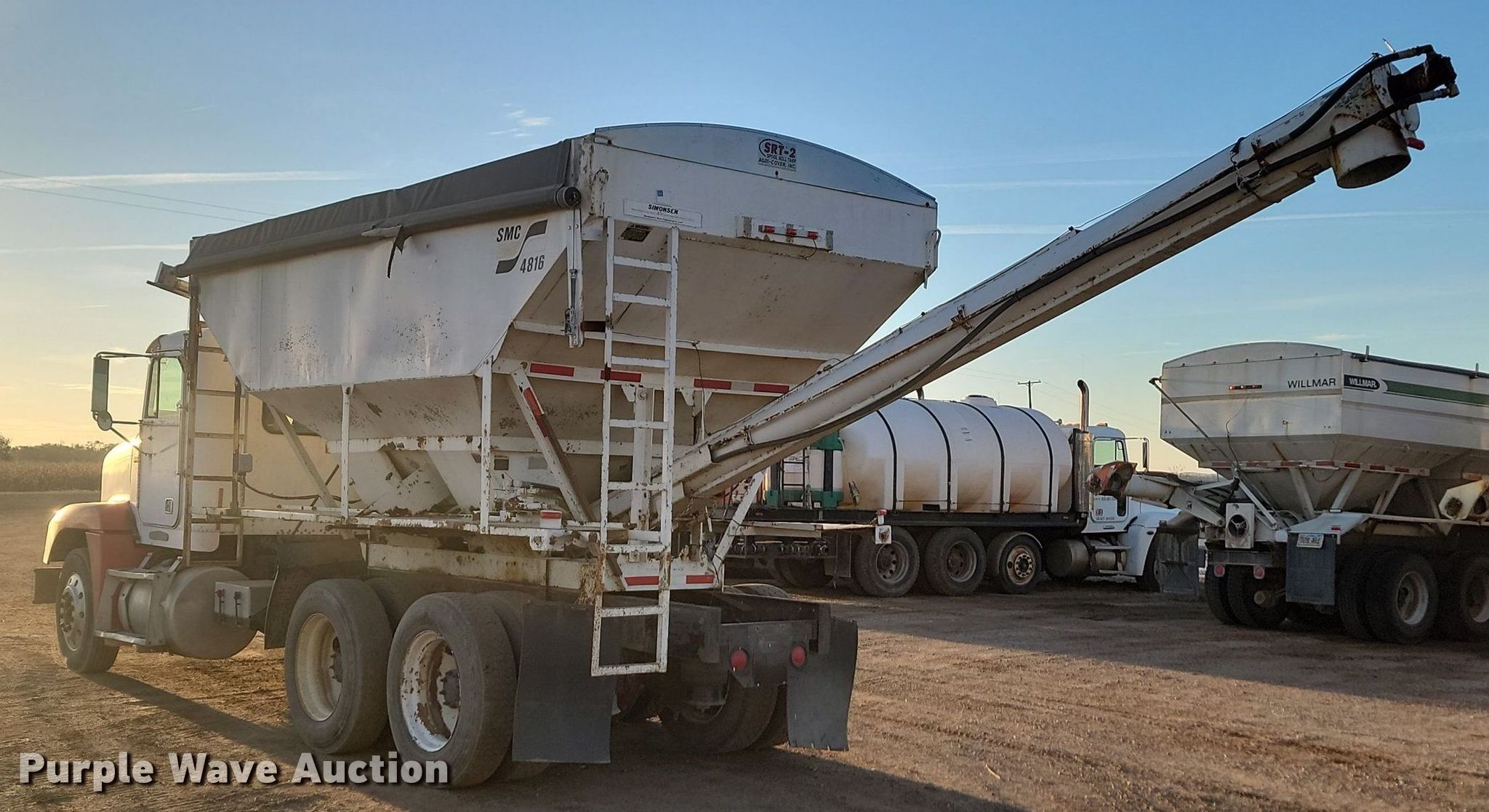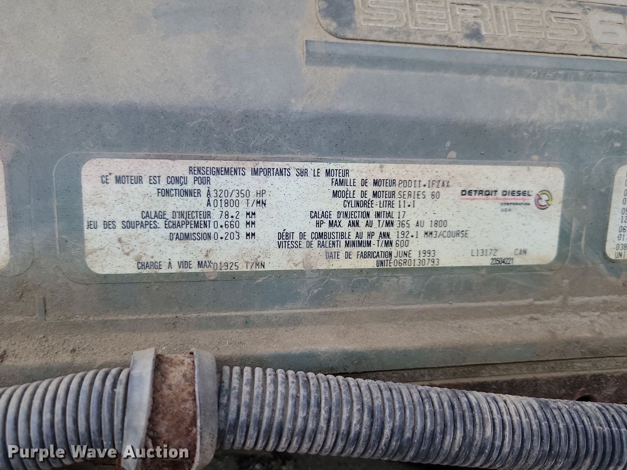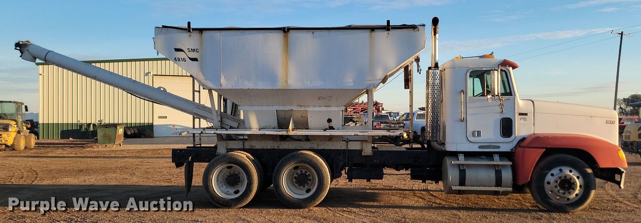 1994 Freightliner fertilizer delivery truck. Miles: 374,568 on odometer, VIN: 1FUYDCXB2RP433655. Engine Detroit Diesel Series 60, Displacement: 11.1L, Cylinders: 6, Fuel type: Diesel. Transmission Rockwell, Manual. Chassis Axles: Tandem, Suspension: Air, Brakes: Air, PTO. Interior AC, Heat, Heated mirrors, Cruise control. Features Delivery bed SMC 4816, 18' L, Capacity: 16 tons, Compartments: 2, Discharge auger Diameter: 10", Rear, Tarp, Ground controls. Tires Size: 285/75R24.5. Notes Dash warning indicator: Check engine, Water level, Throttle pedal issues, sticks. South Dakota title. Title distribution may be delayed up to 14 days from verification of funds. Valley Ag Supply. 509 Washington St. Gayville, SD 57031
