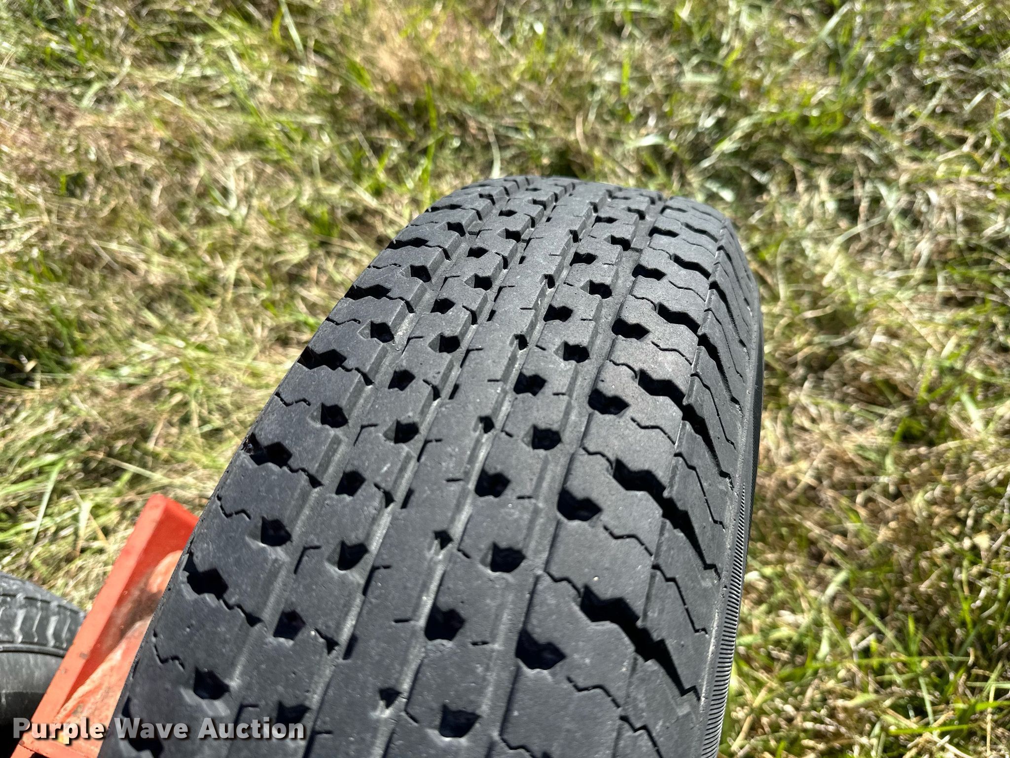 H&S BF14HC hay rake. Features. Width: 50', Wheels: 14 Diameter: 55", Hydraulic lift, Hydraulic fold, Ground driven. Tires Size: ST205/75R15. Parsons, KS 67335