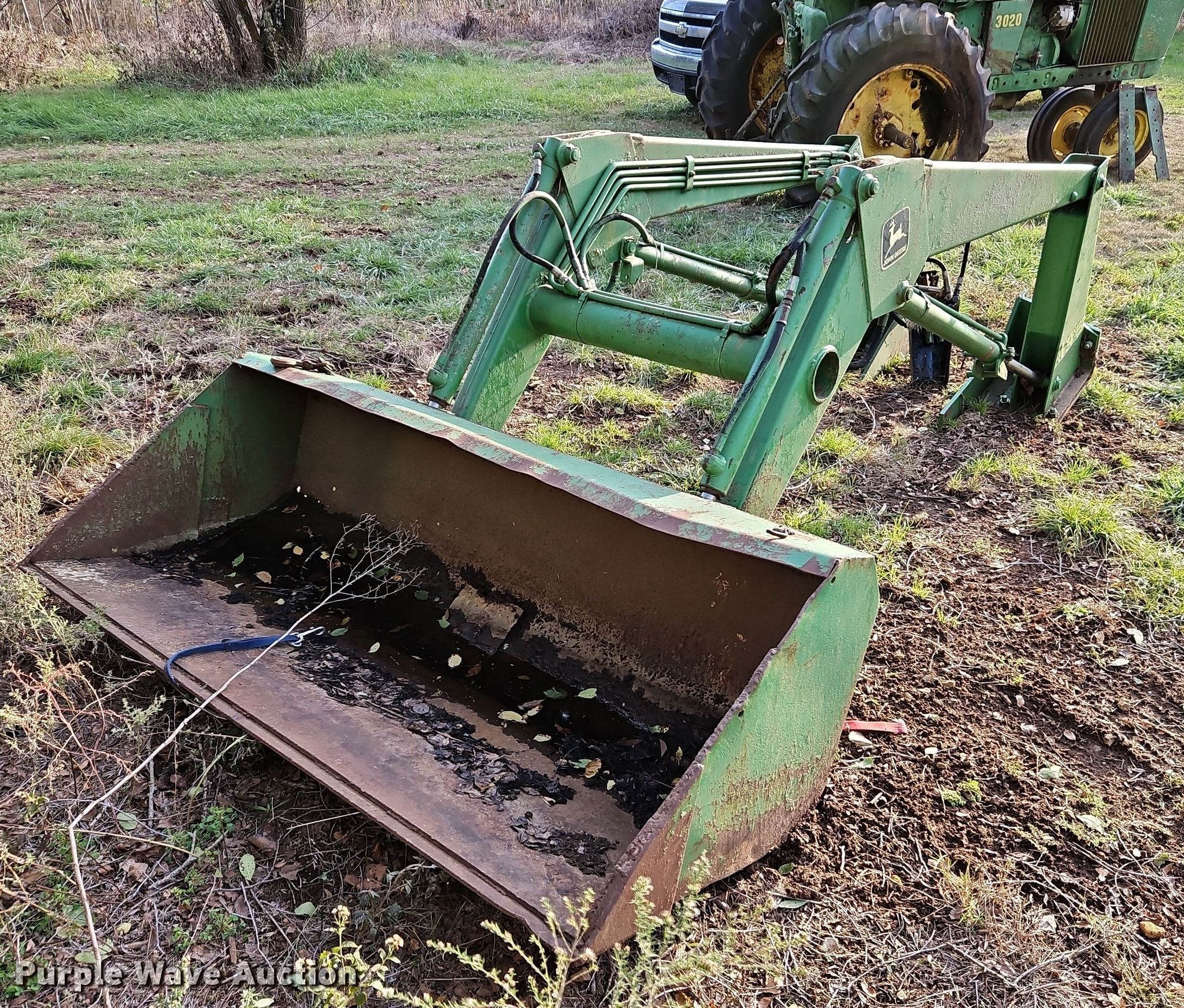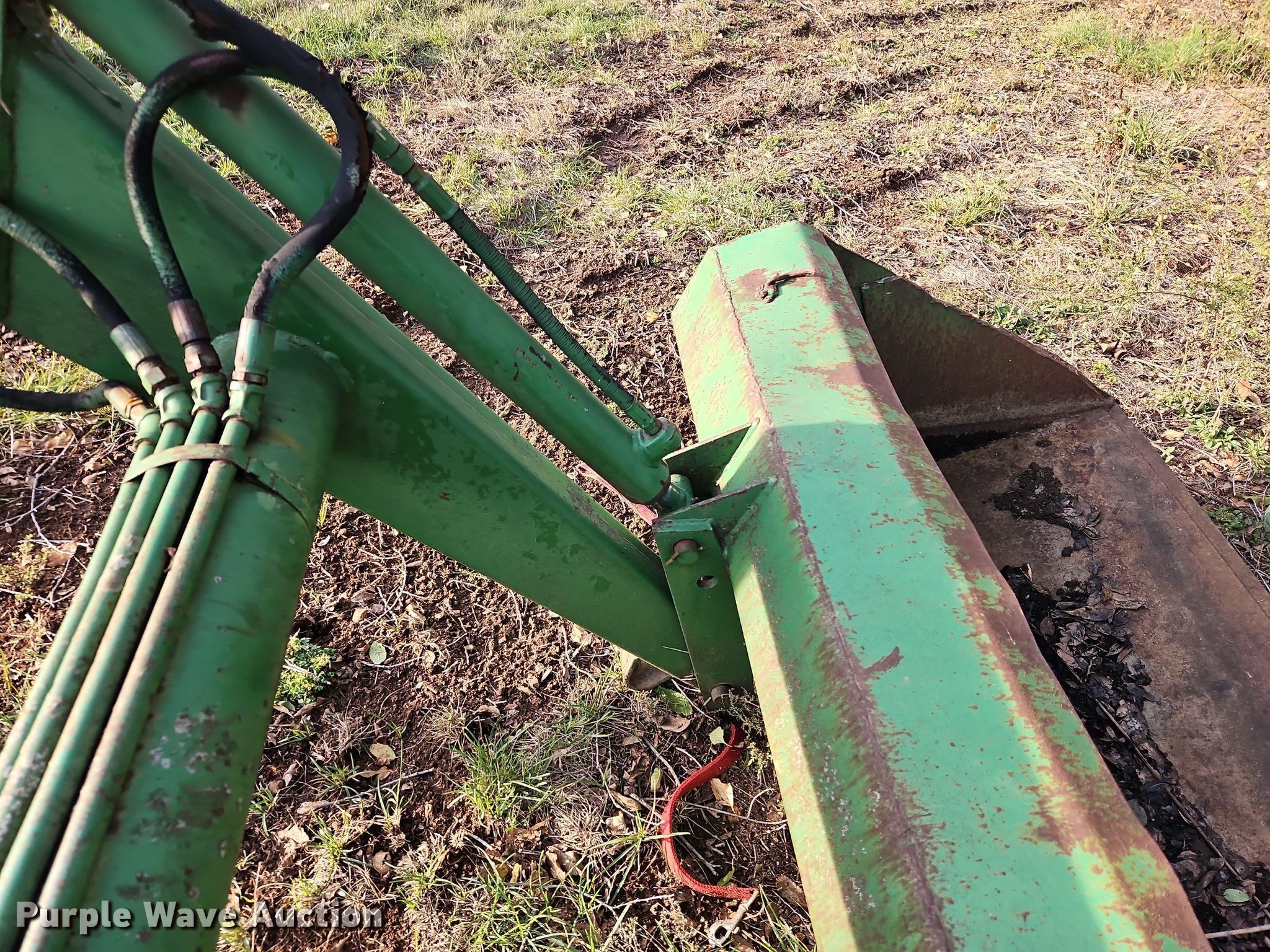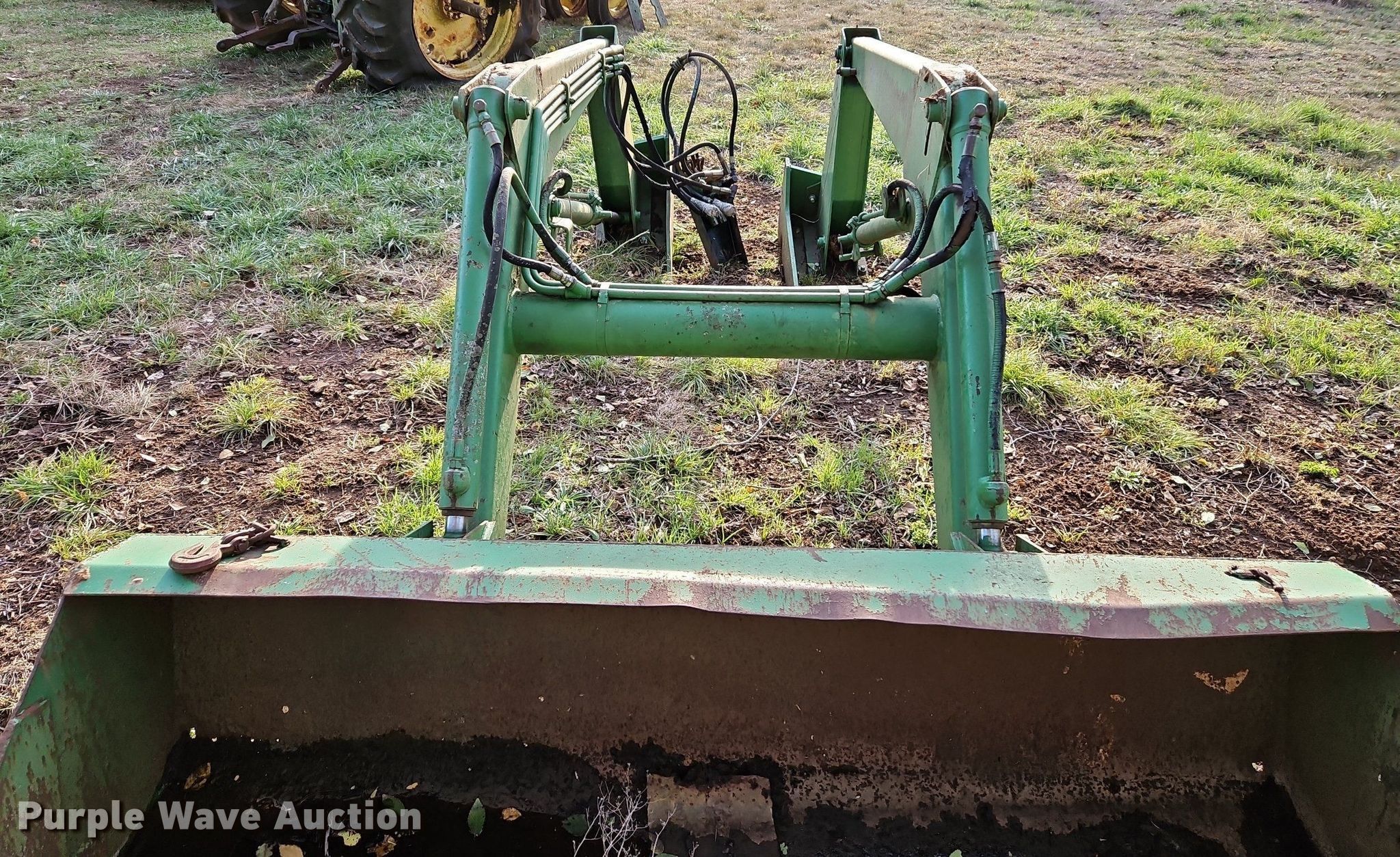Purple Wave is selling a used Ag Tractor Loader or Attach. in Kansas. This item is a John Deere 146 loader arms with the following: Controls: Two lever, Bucket, Width: 60"