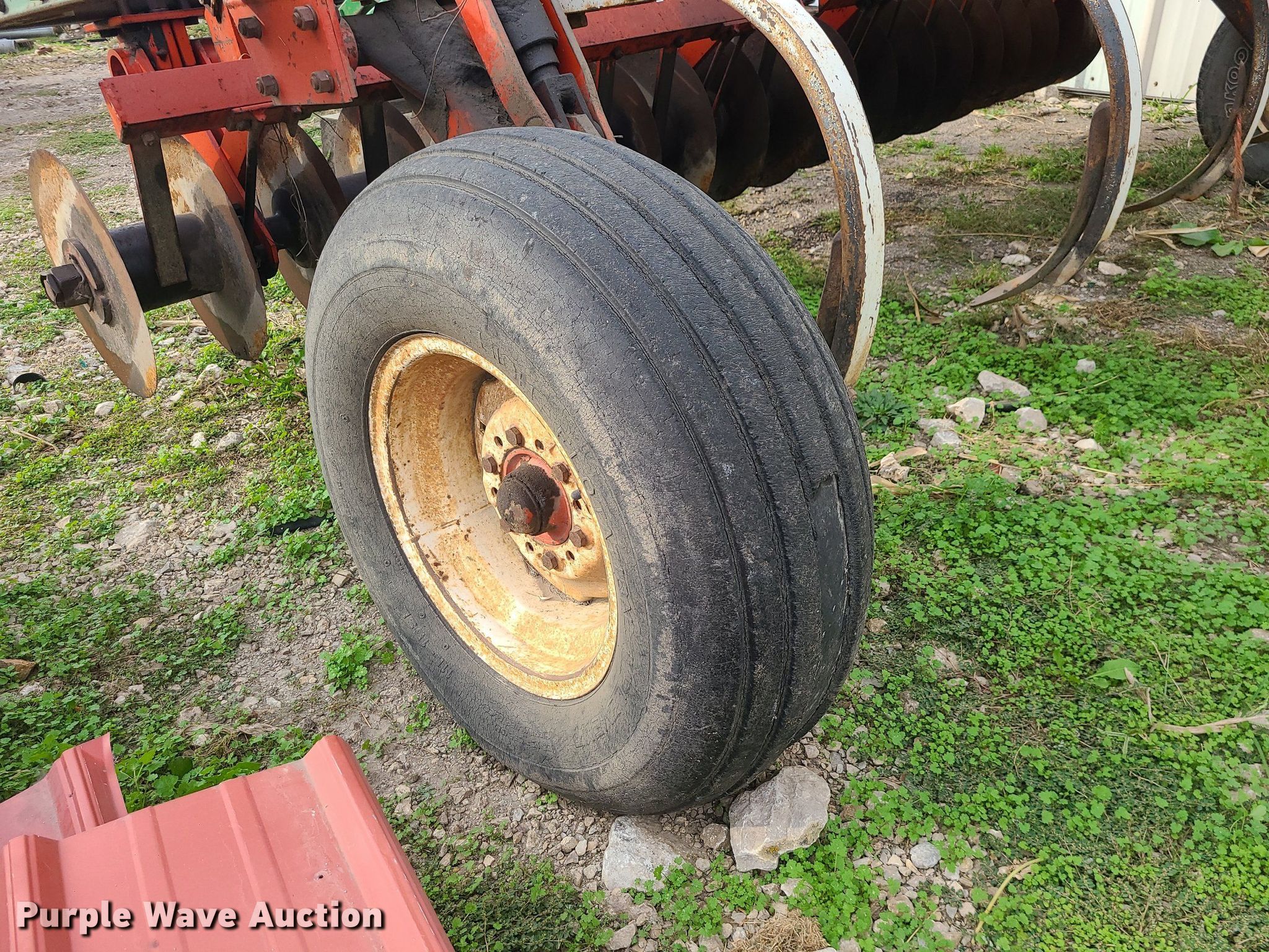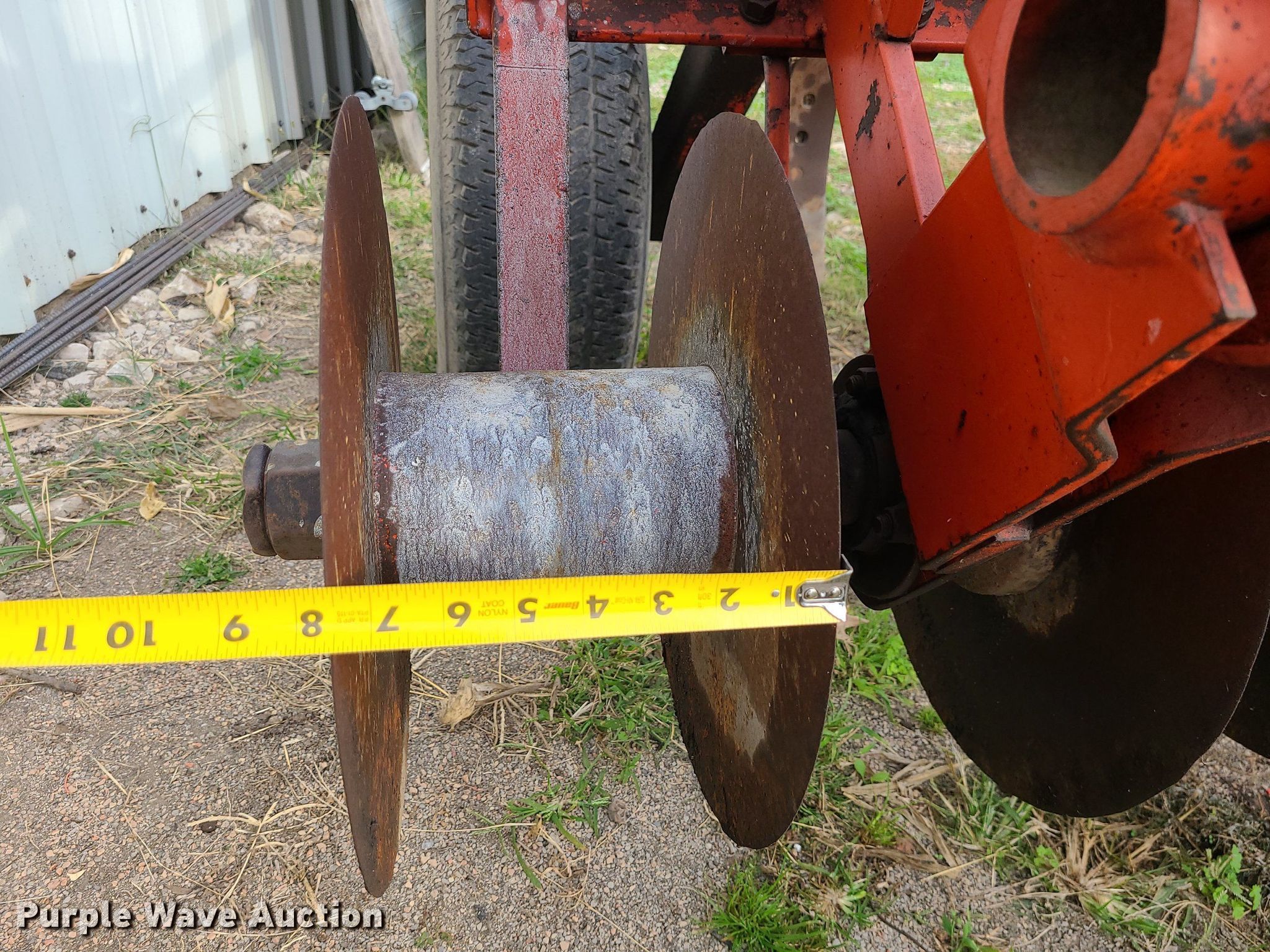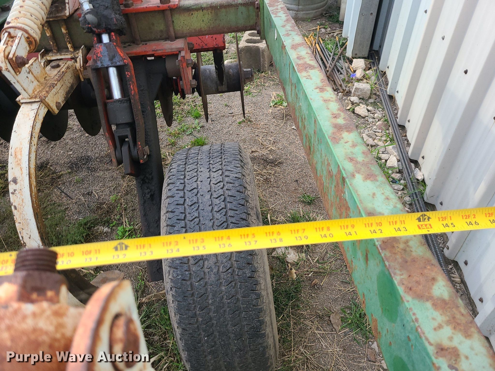 Glencore disk ripper. Overall width: 12'. Features Blade diameter Front: 16", Spacing: 16", Operation Hydraulic lift. Tires Tire size: 265/70R15. Bruce Adams. 23306 East Adams Road. Independence, MO 64058
