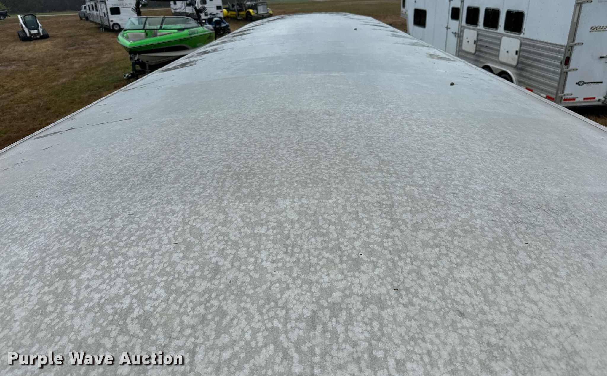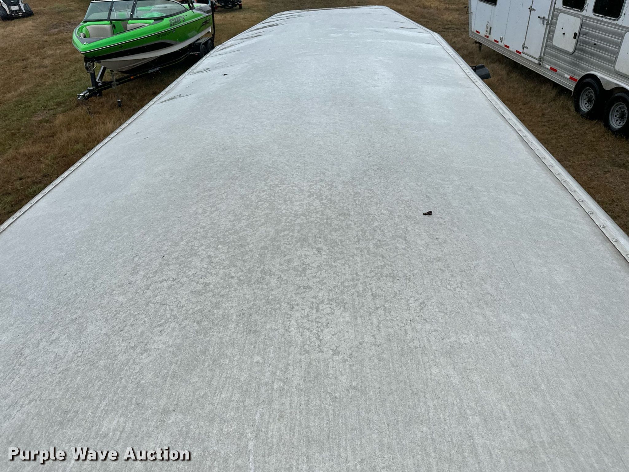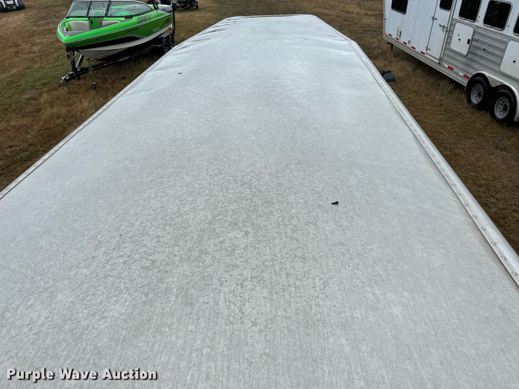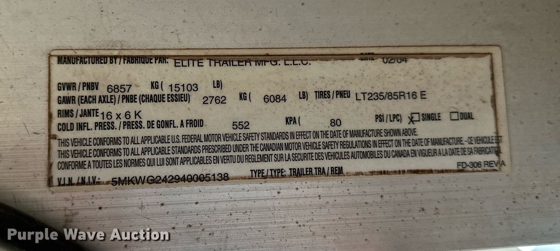 2004 Elite livestock trailer. VIN: 5MKWG242940005138, Claim #: 3-816702. Dimensions Overall: 31' 6" L x 102" W, Body: 24' L x 84" W, Side height: 6' 6". Features Center gates: 1, Ground load. Chassis Hitch: Gooseneck, Landing gear: Single, Suspension: Spring, Brakes: Electric, Axles: Tandem, GVWR: 15,103 lbs, GAWR: 6,084 lbs. Tires Steel wheels, Size: 235/85R16. Notes Collision Damage, Hail Damage , Hitch cut off. Insurance salvage unit. Oklahoma title. Oklahoma Farm Bureau Insurance. Seminole, OK 74868