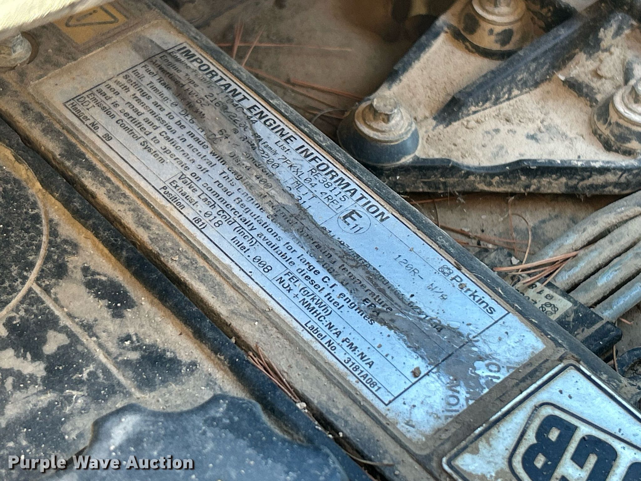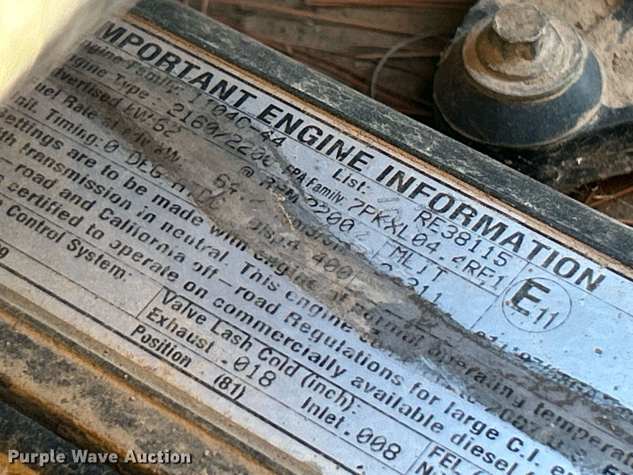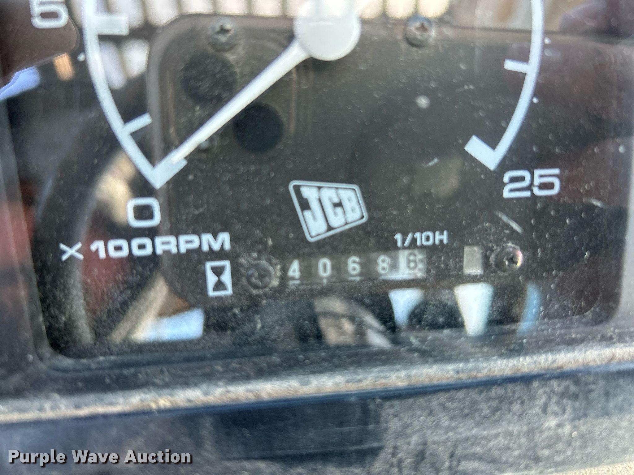 2007 JCB 520 telehandler. Hours: 4069 on meter, Hours: 5891 on second meter, Serial: 1411219. Engine Perkins 1104C-44, Serial: 358177R, Displacement: 4.4L, Cylinders: 4, Fuel type: Diesel, kW: 62. Transmission Shuttle shift, Four wheel drive. Operators station Enclosed cab, Heat, Steering: Four wheel. Features Maximum lift capacity: 4,400 lbs, Boom stages: 2, Fork length: 41", Auxiliary hydraulics. Tires Size: 10.5-18. Notes Engine issues, cranks but won't start, Unknown operating condition. Schroeder Sod Farms. 4720 Aubuchon Rd. Hazelwood, MO 63042