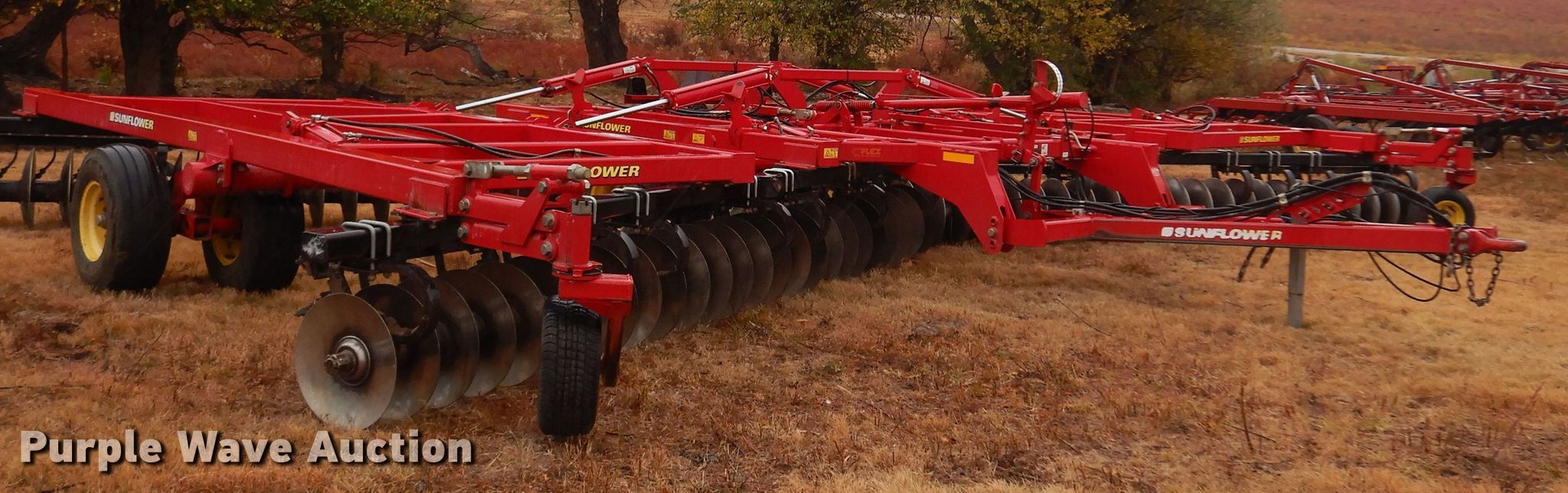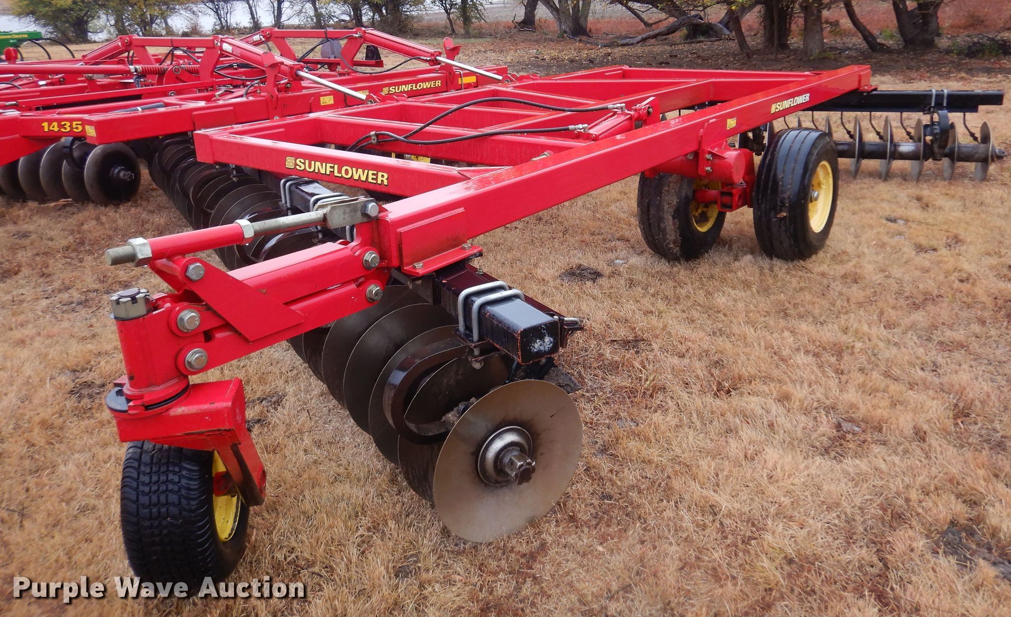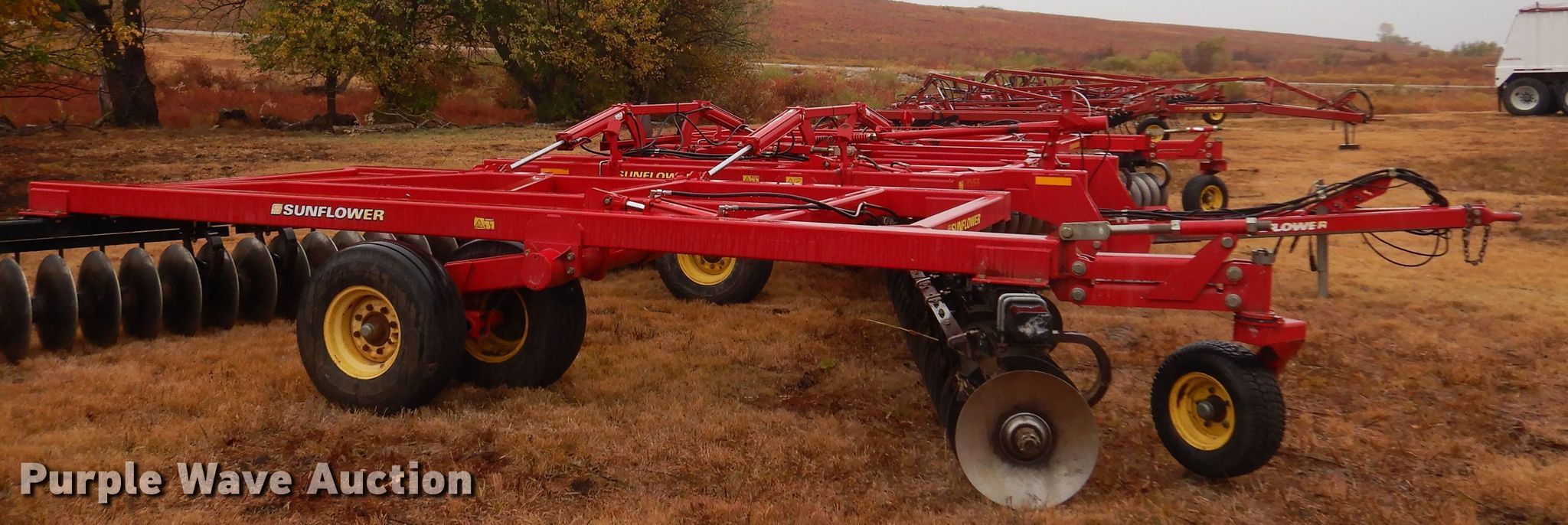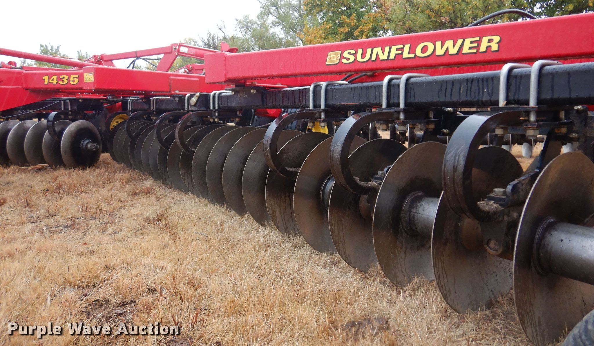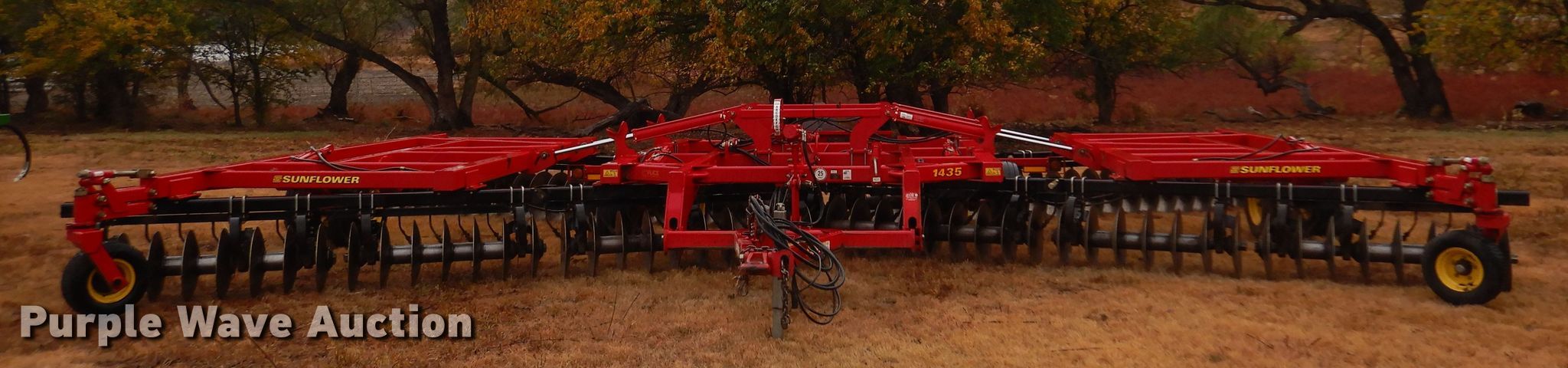 Purple Wave is selling a used Disk in Kansas. This item is a Sunflower 1435 double off-set disk with the following: Overall width: 35', Serial: 1435E09344
